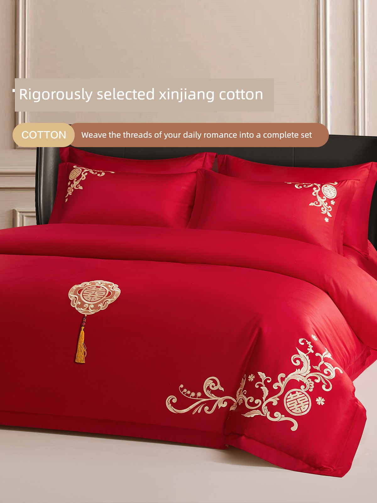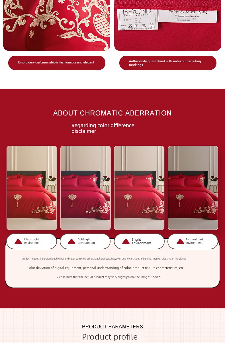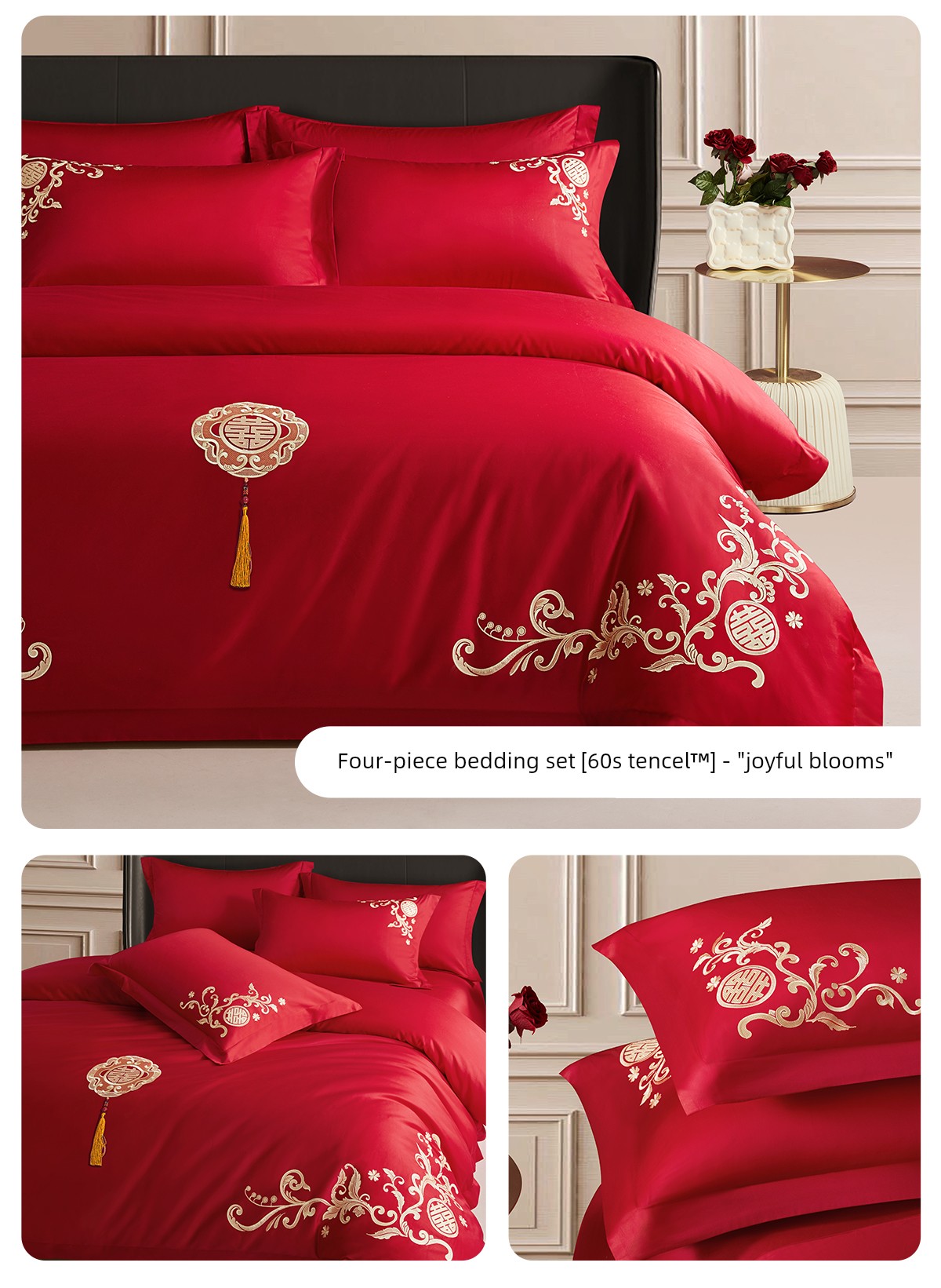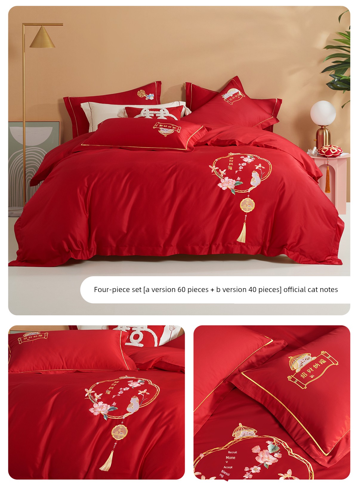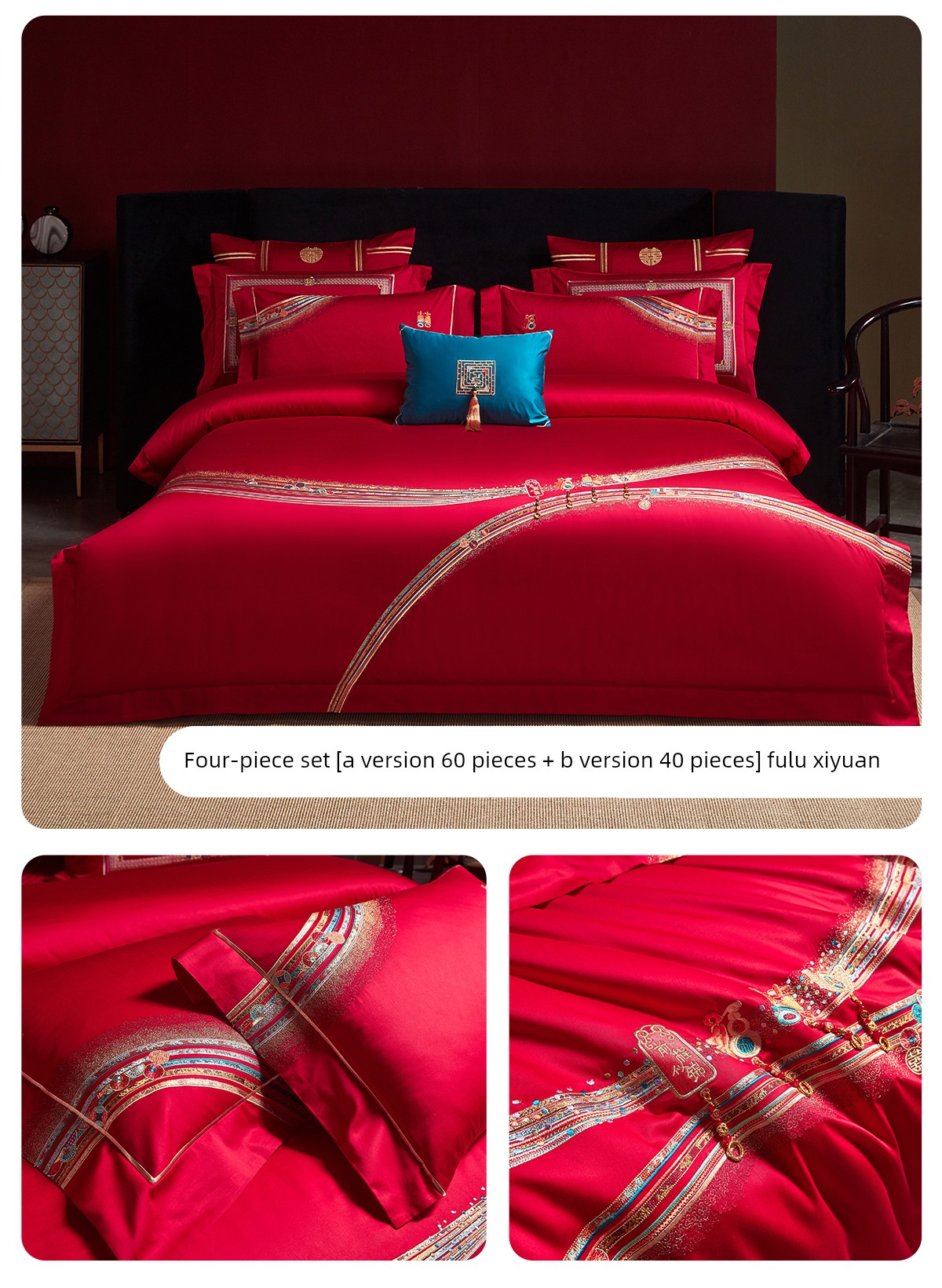 Boyang 60-Count Red Wedding Four-Piece Set, All-Cotton Bedding, Pure Cotton Wedding Quilt Cover, Festive