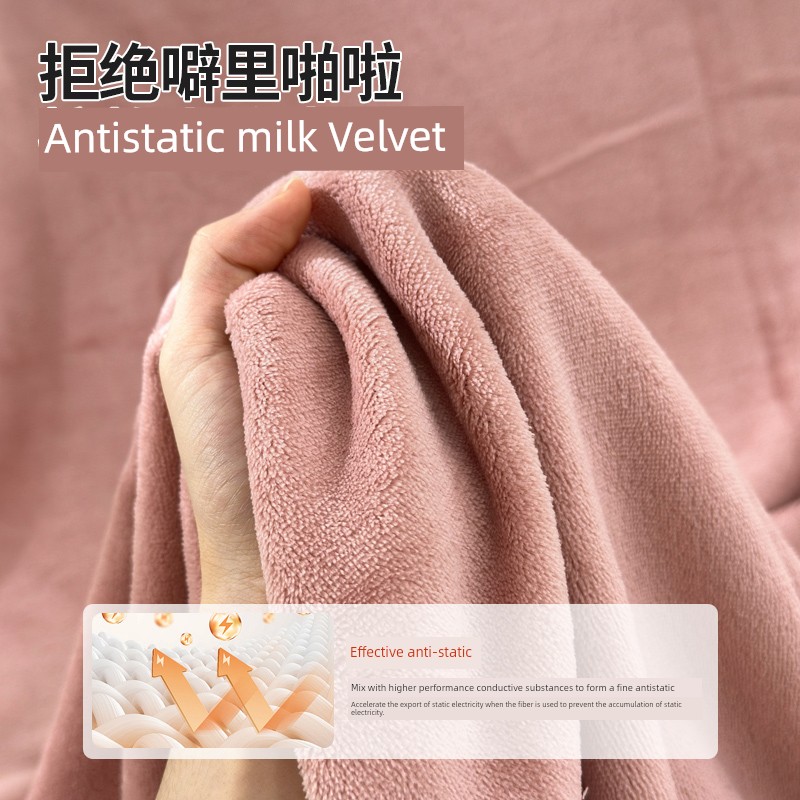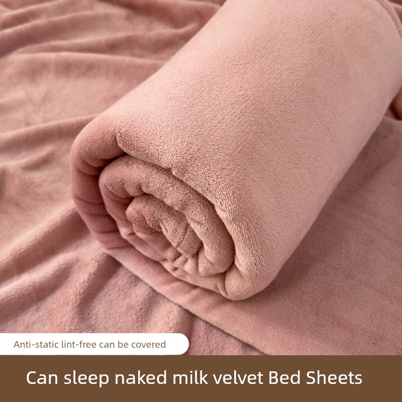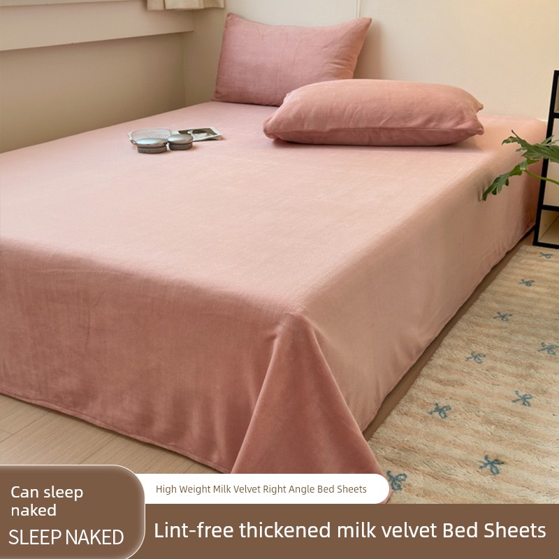 2025 New Arrival Class a Thickened Milk Fiber Bed Sheet One-Piece Autumn and Winter Fleece-lined Pure Color Quilt Single Coral Velvet Three-Piece Set