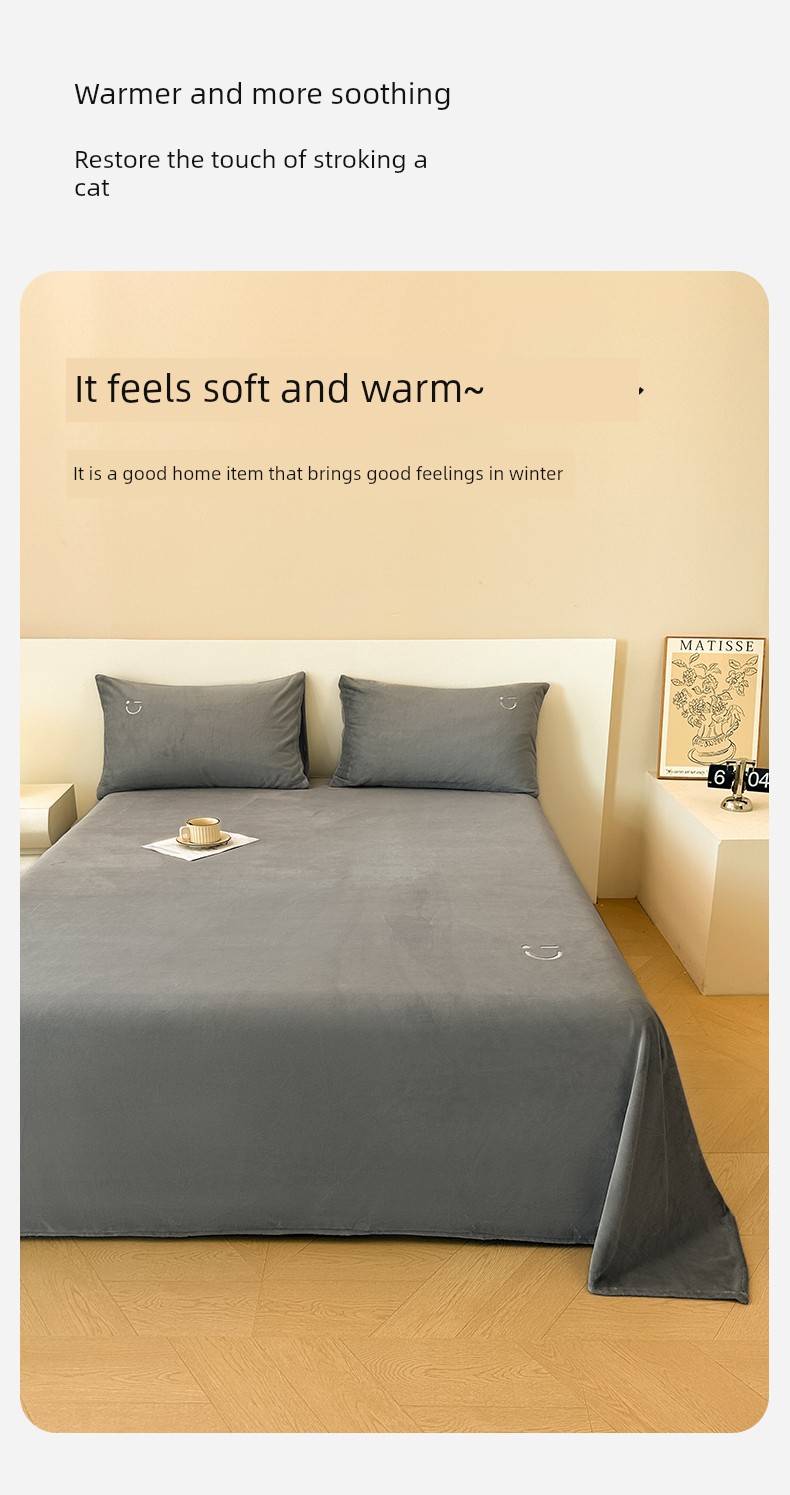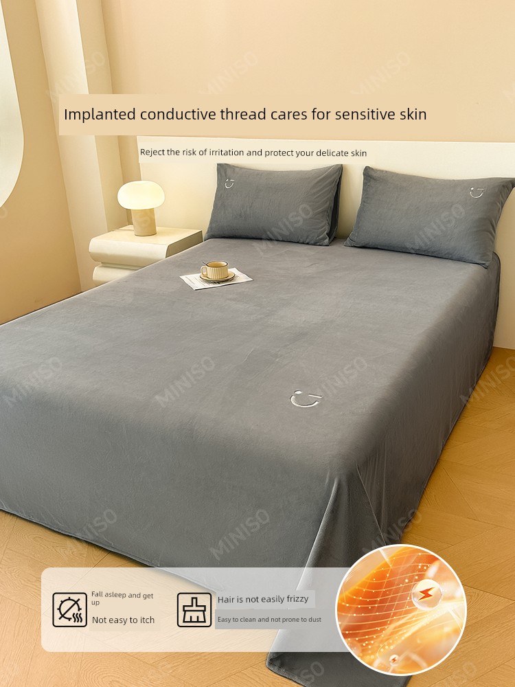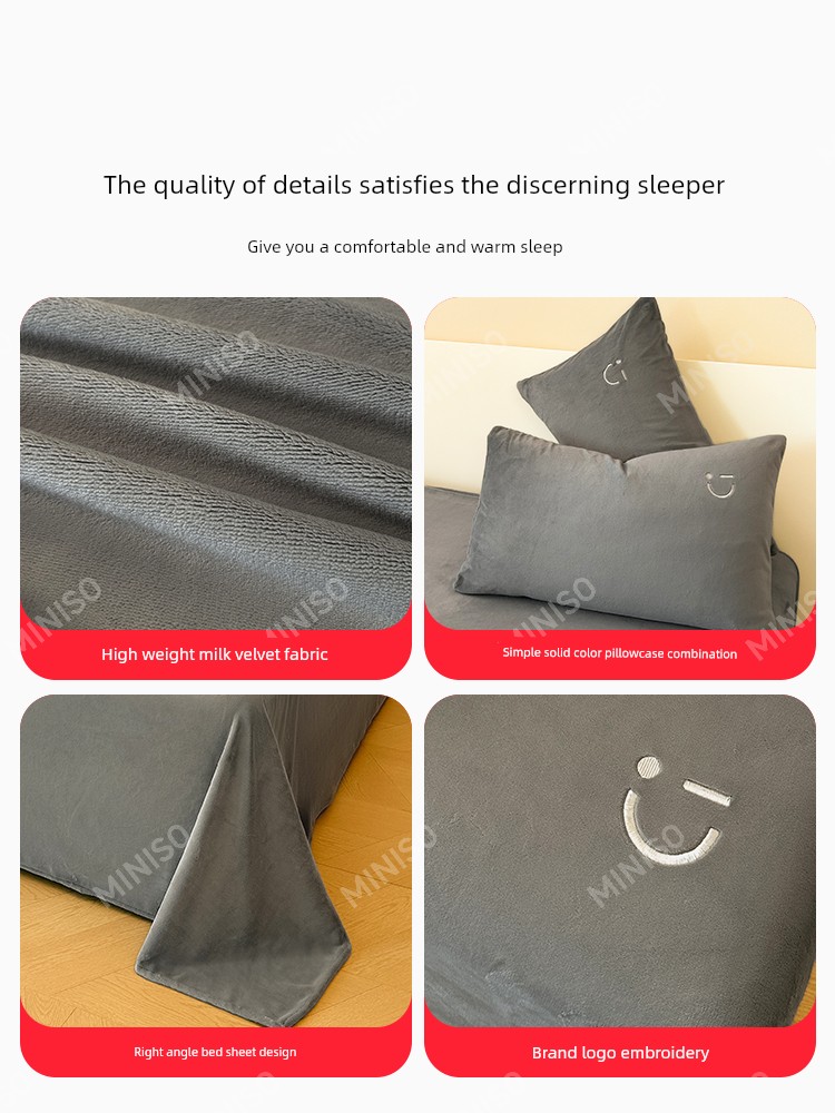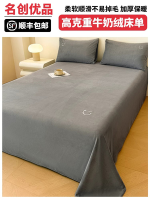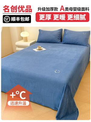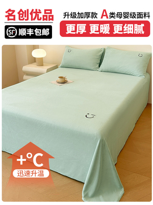 MINISO Milk Fiber Bed Sheet One-Piece Winter Thick Coral Fleece Student Dormitory plus Flannel Bed Sheet 2025 New Arrival