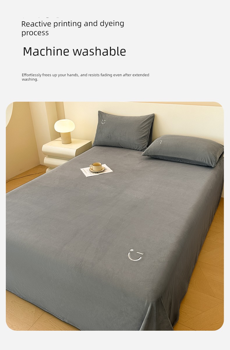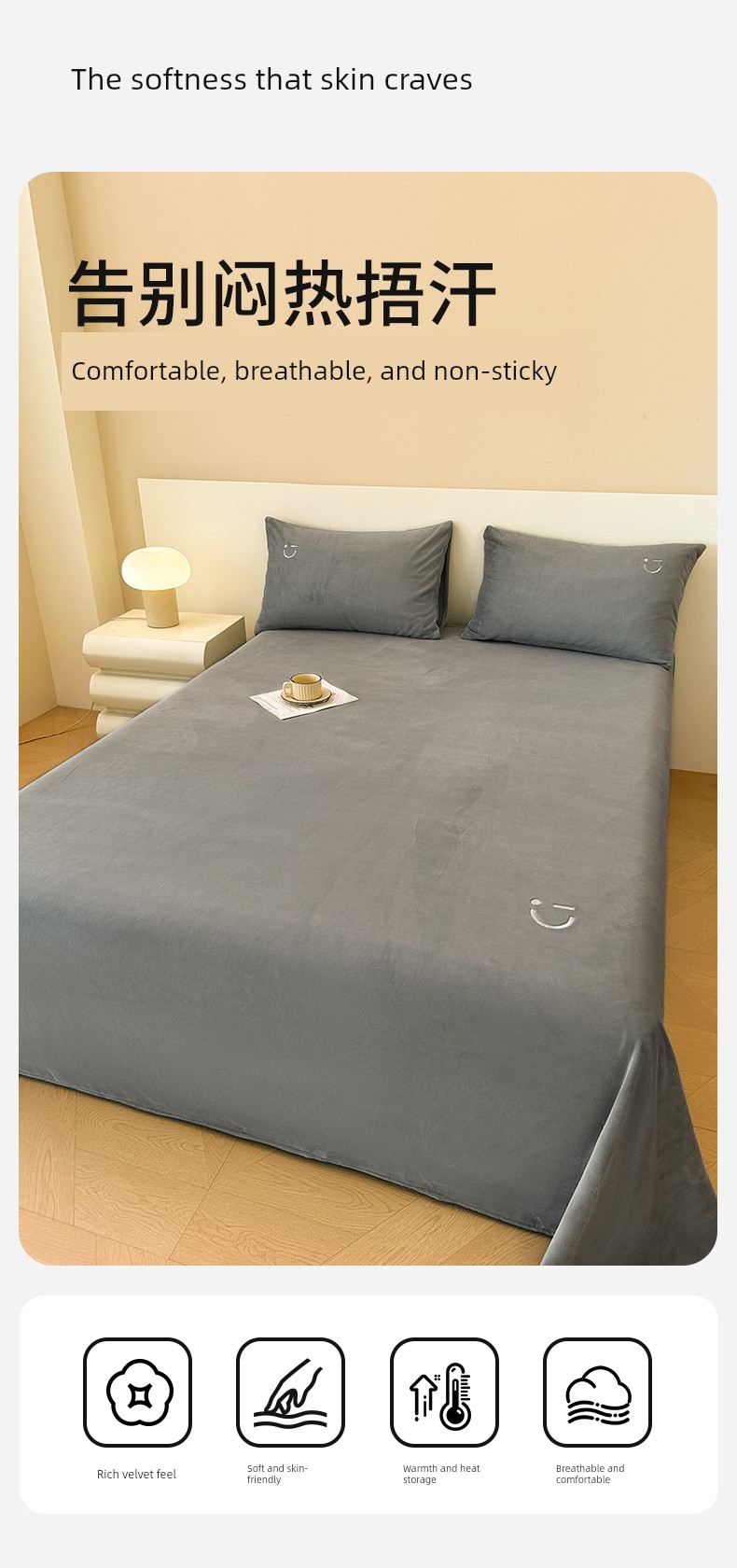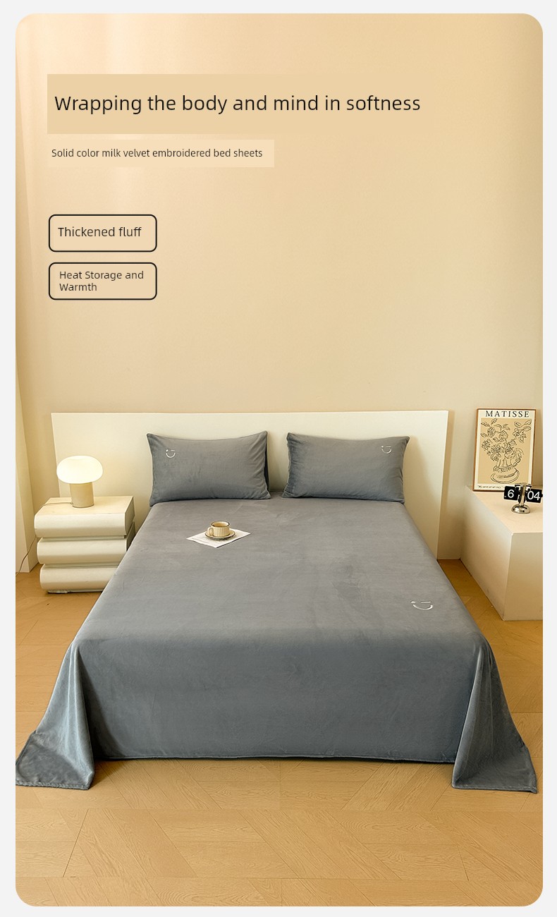 MINISO Milk Fiber Bed Sheet One-Piece Winter Thick Coral Fleece Student Dormitory plus Flannel Bed Sheet 2025 New Arrival