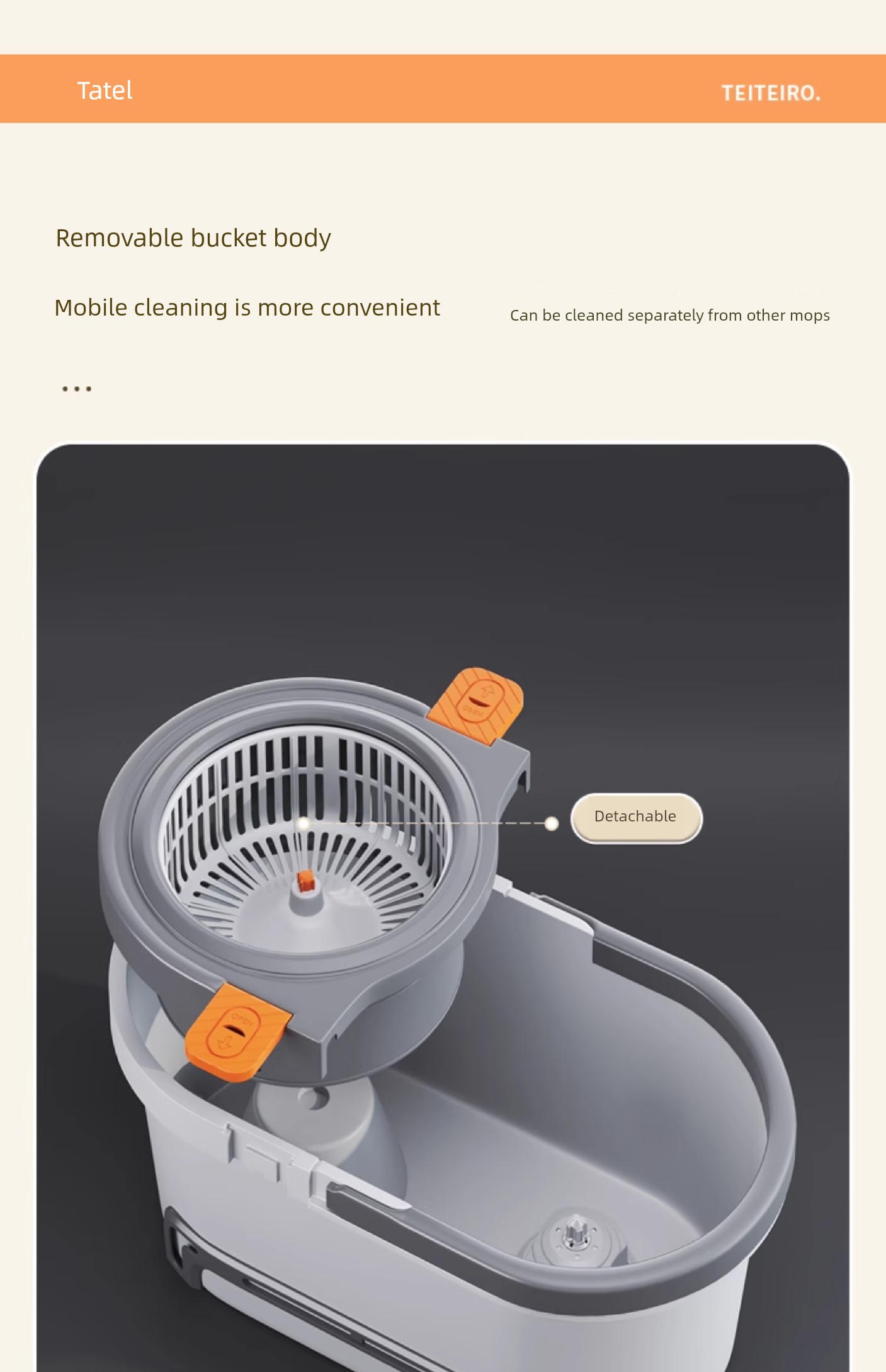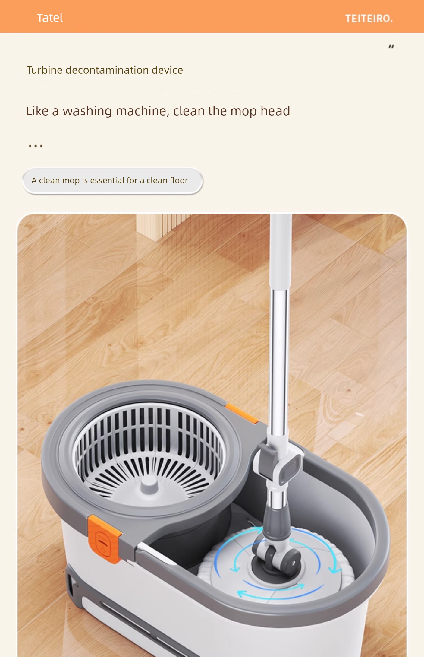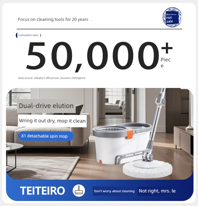 Taitai Le Spin Mop Hands-Free 2025 New Model Household One-Sweep Water Cleaning Integrated Mop Bucket with Spin-Dry Feature