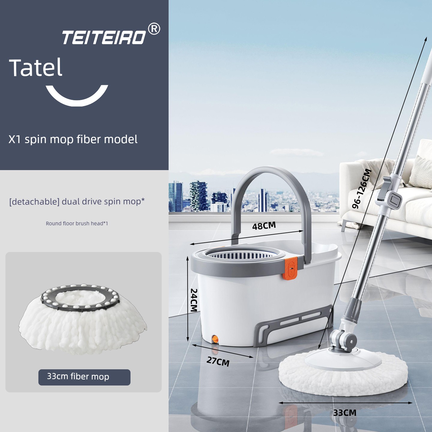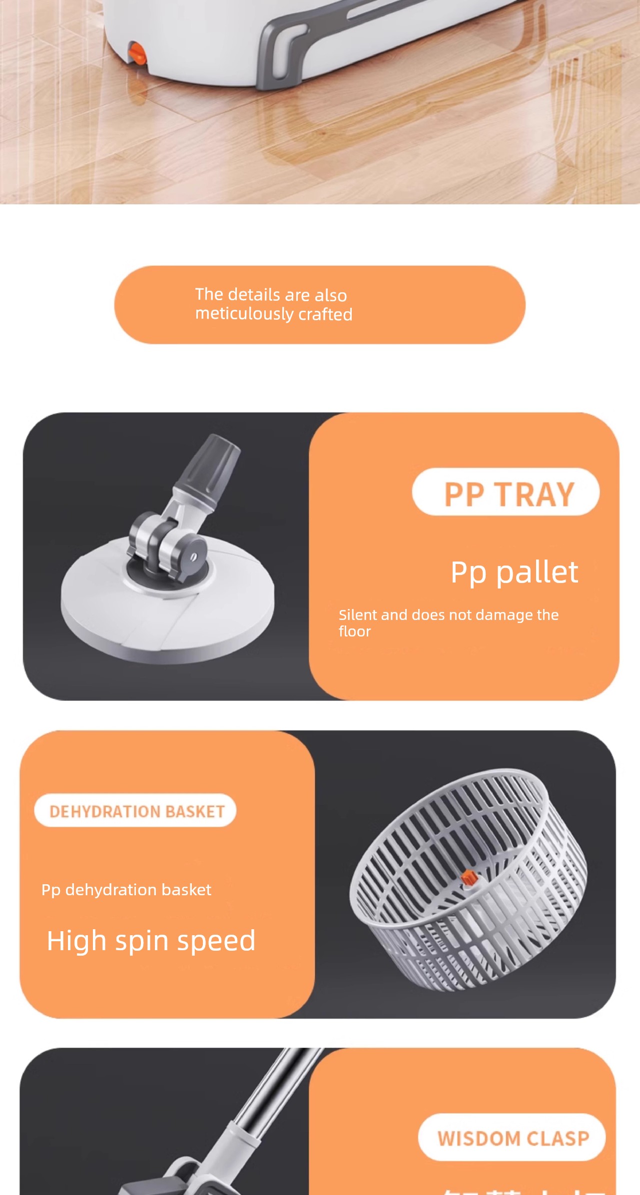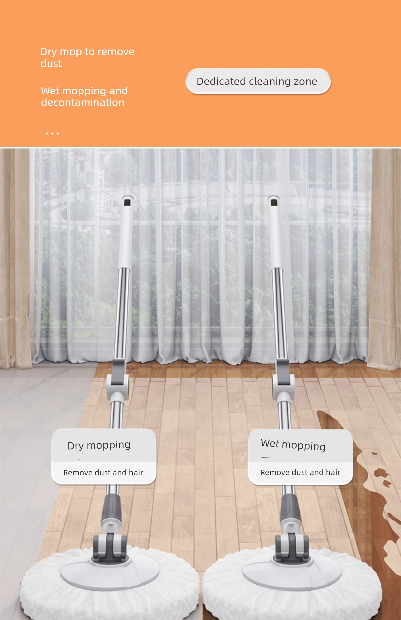 Taitai Le Spin Mop Hands-Free 2025 New Model Household One-Sweep Water Cleaning Integrated Mop Bucket with Spin-Dry Feature