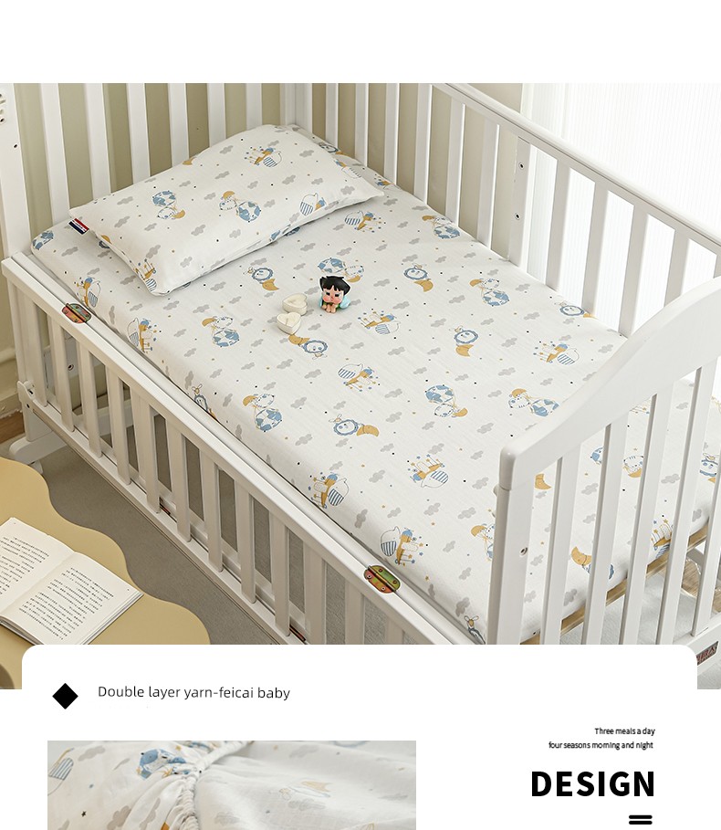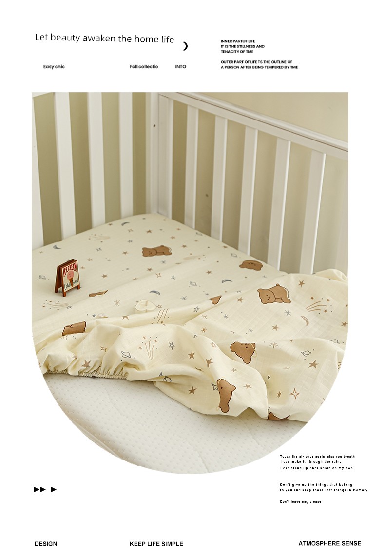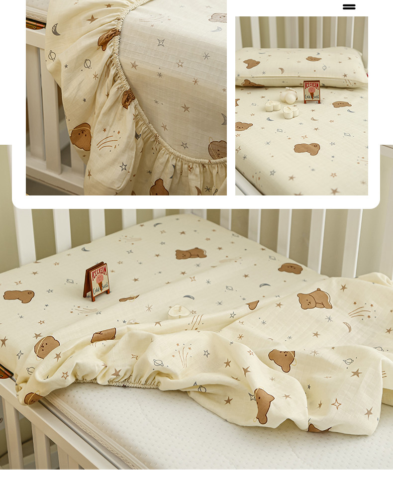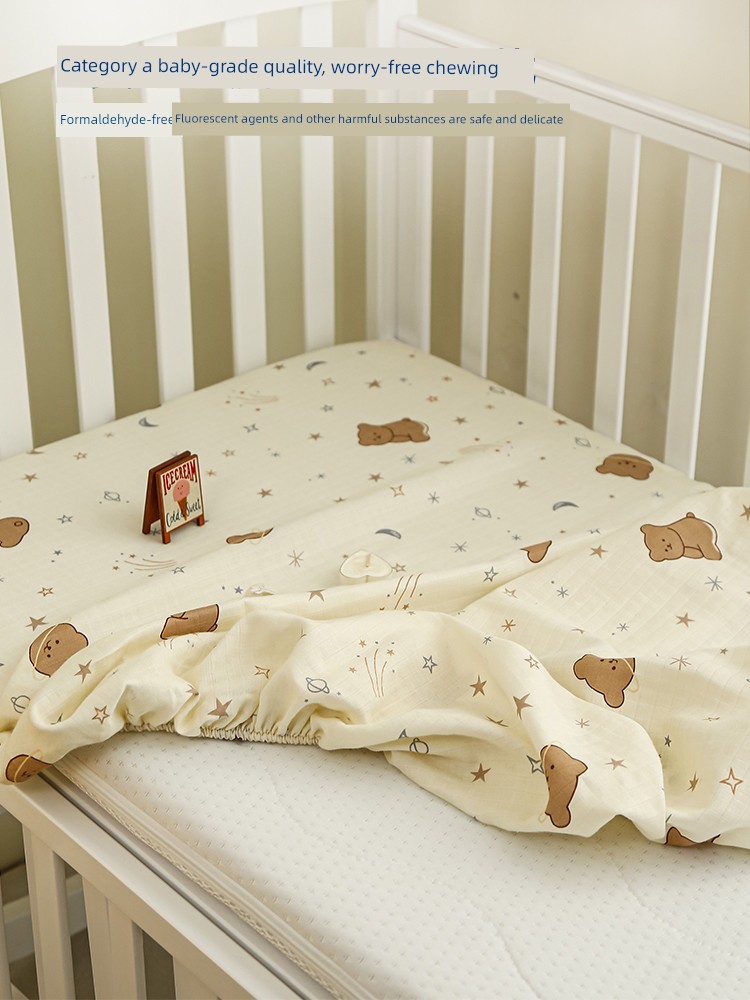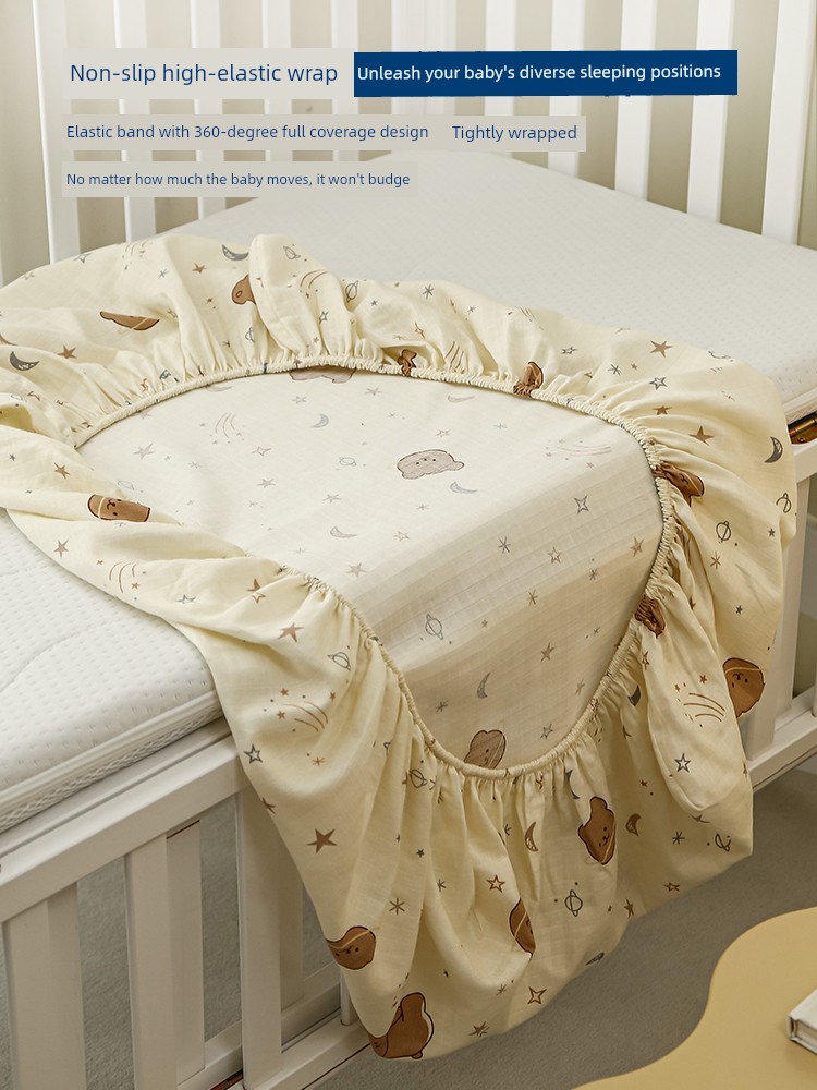 Class a Breathable Naked Sleeping Crib Fitted Sheet for Winter, Pure Cotton Double-Layer Gauze Newborn Baby Splicing Bed Fitted Sheet Cover