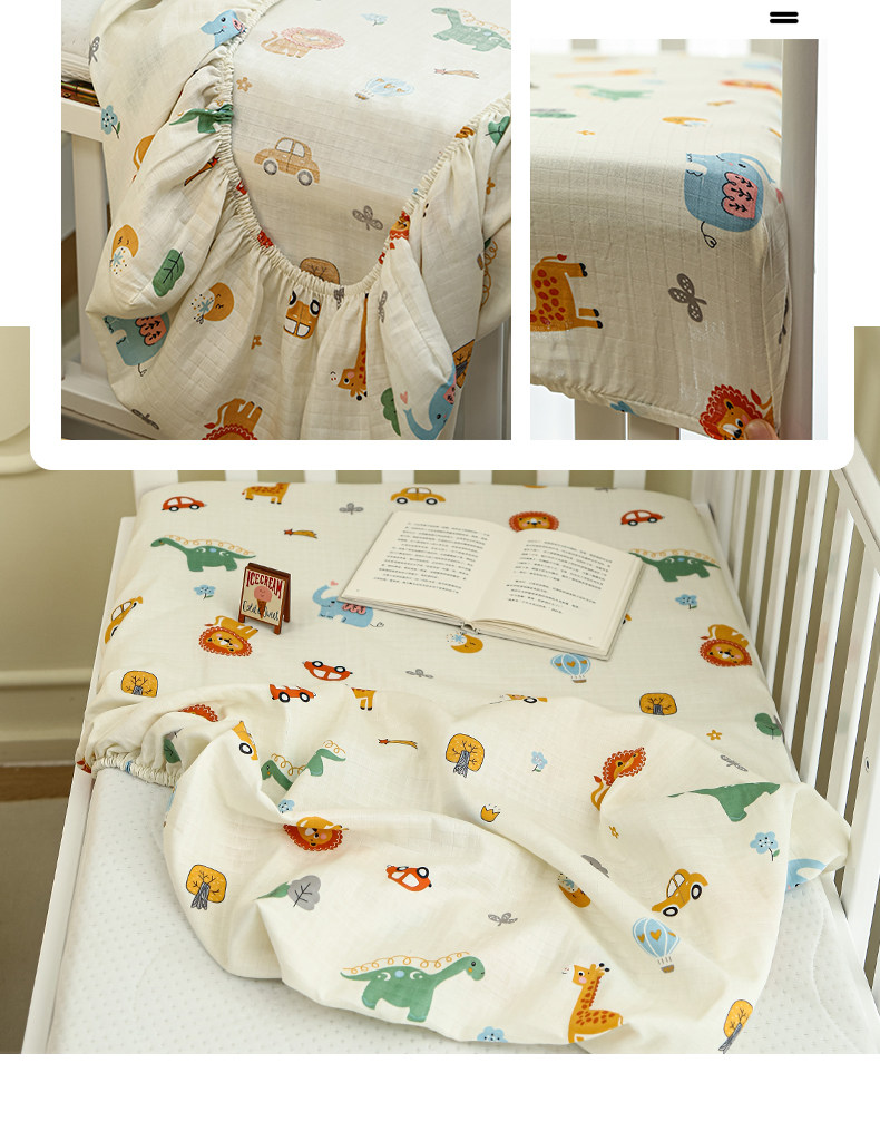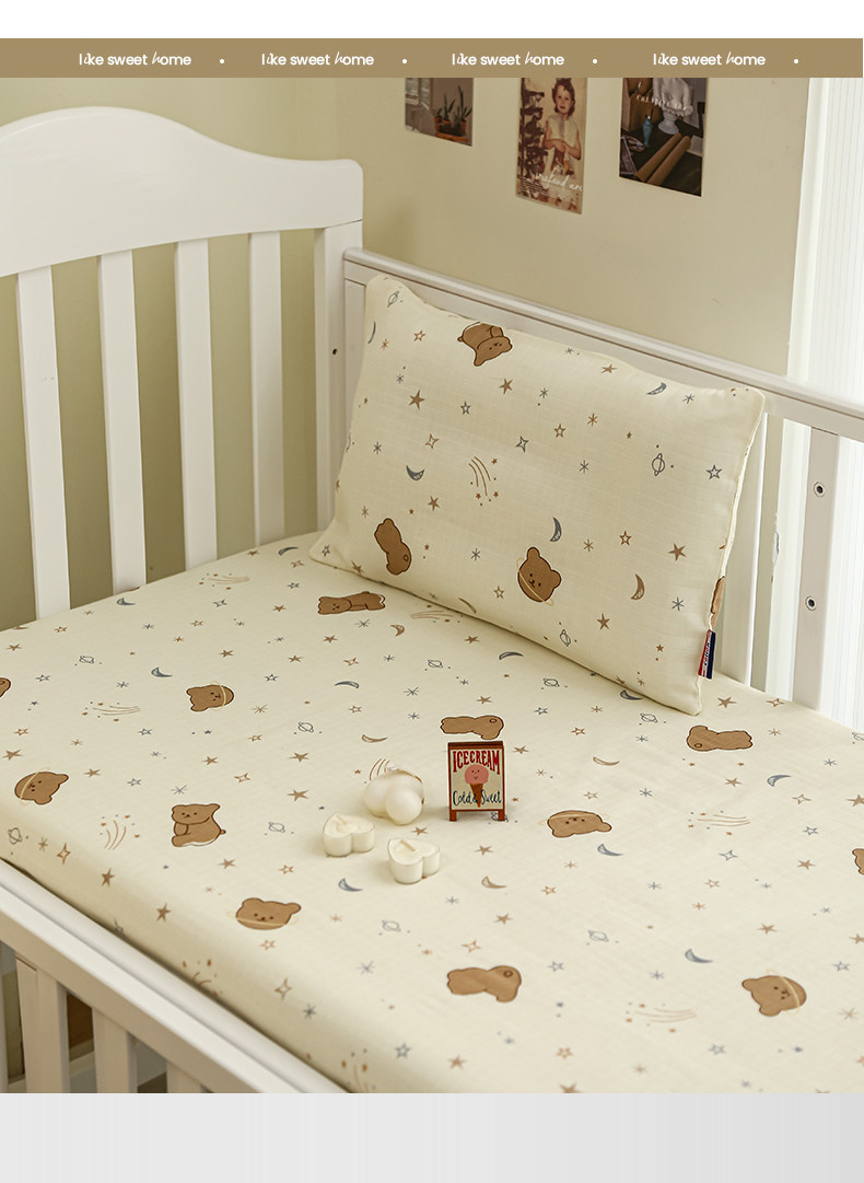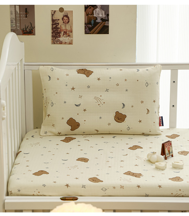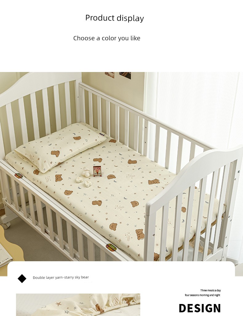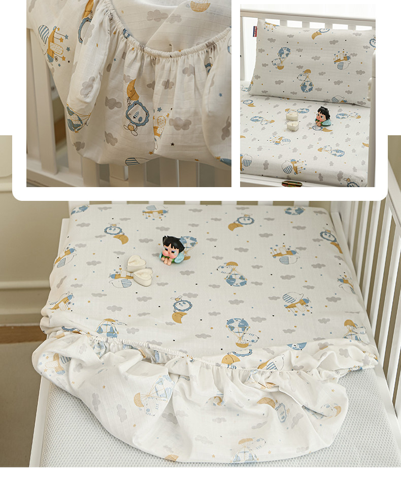 Class a Breathable Naked Sleeping Crib Fitted Sheet for Winter, Pure Cotton Double-Layer Gauze Newborn Baby Splicing Bed Fitted Sheet Cover