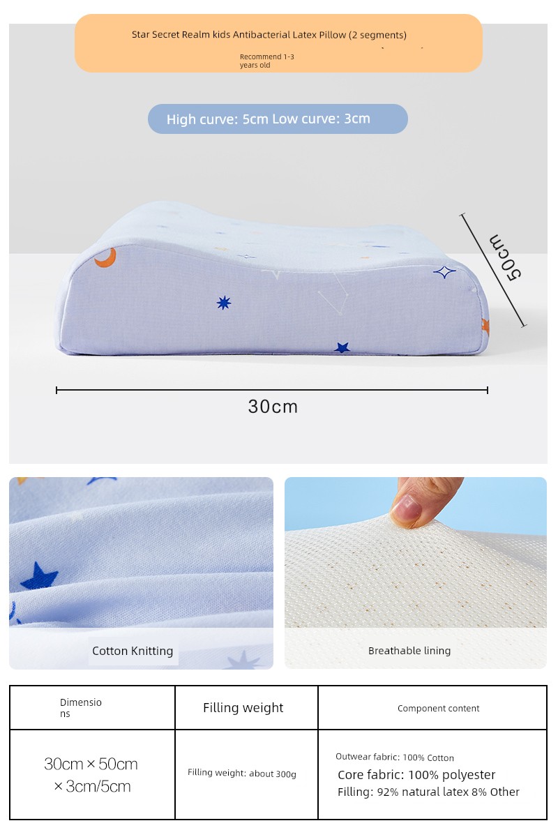 (Suitable for 1~3 Years Old) (2 Sections) Latex Pillow [Mother and Baby Category a + Cotton Antibacterial Pillowcase] Star Secret Realm