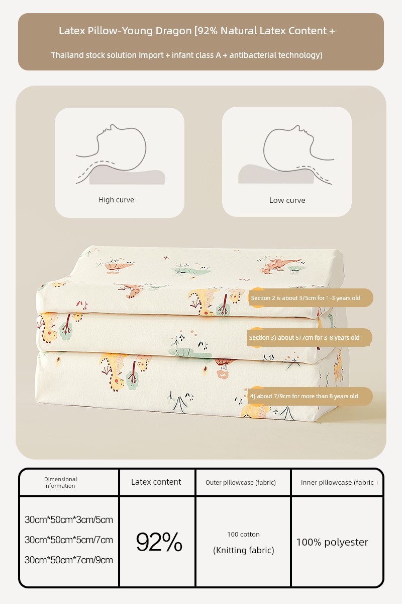 Chocolate color((for Ages 8 and up) (4 Sections) Latex Pillow [Mother & Baby Class a + All-Cotton Antibacterial Pillowcase] - Little Dragon)