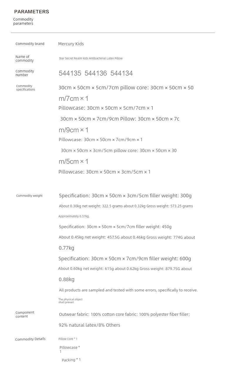 Mercury Home Textile Children's Latex Pillow Maternal and Child Class a Antibacterial Import Latex Pillow Pillow Single Pack 25 Years New Product