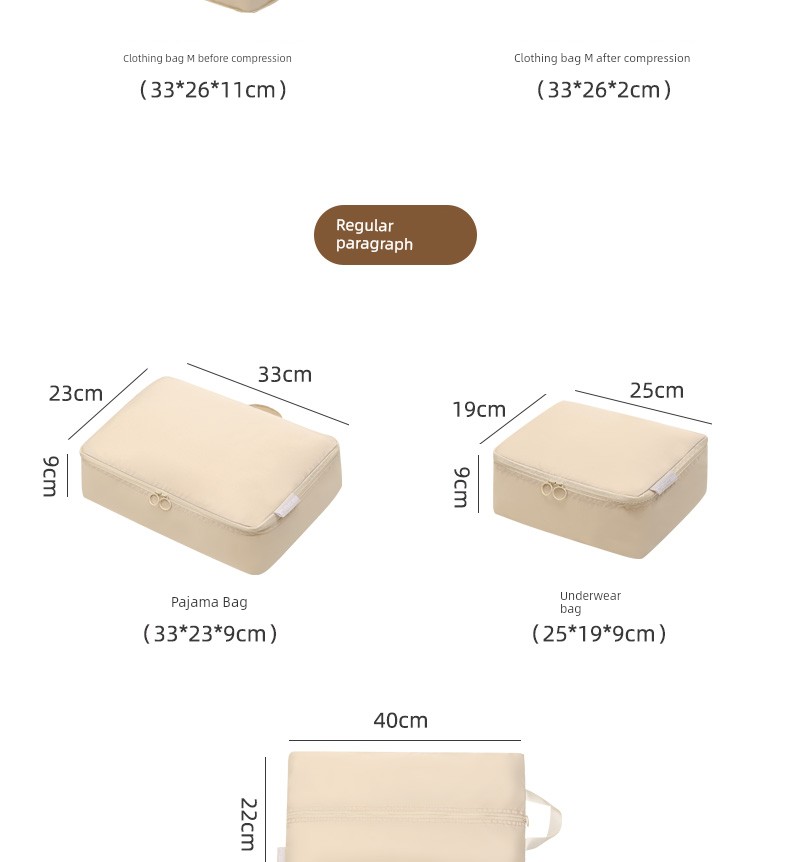 Beige Seven-Piece Suit⭐Large*2+Medium*2+Pajama Bag+Underwear Bag+Shoe Bag