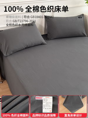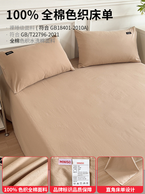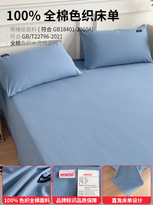Miniso Pure Cotton Bed Sheet Single Piece 2025 New Winter Thickened All-Cotton Quilt Cover Three-Piece Set Student Dormitory Sheet
