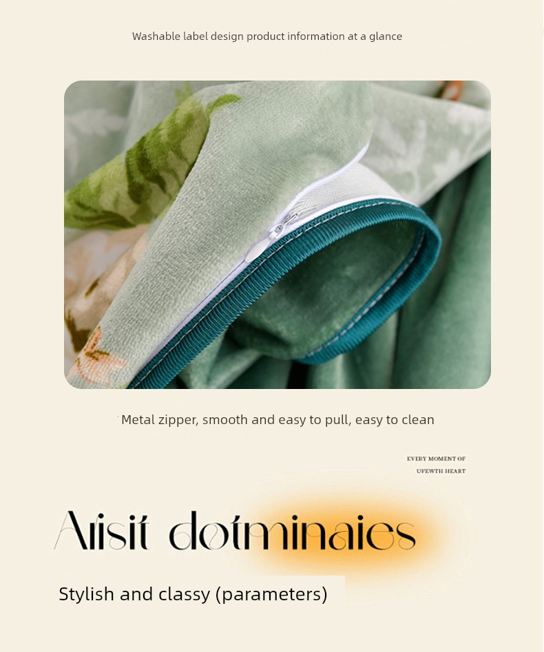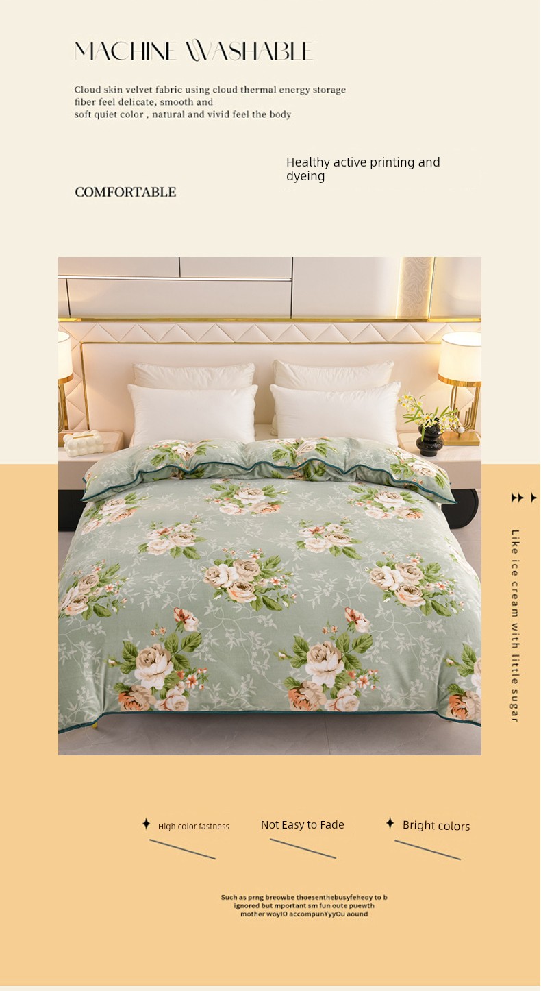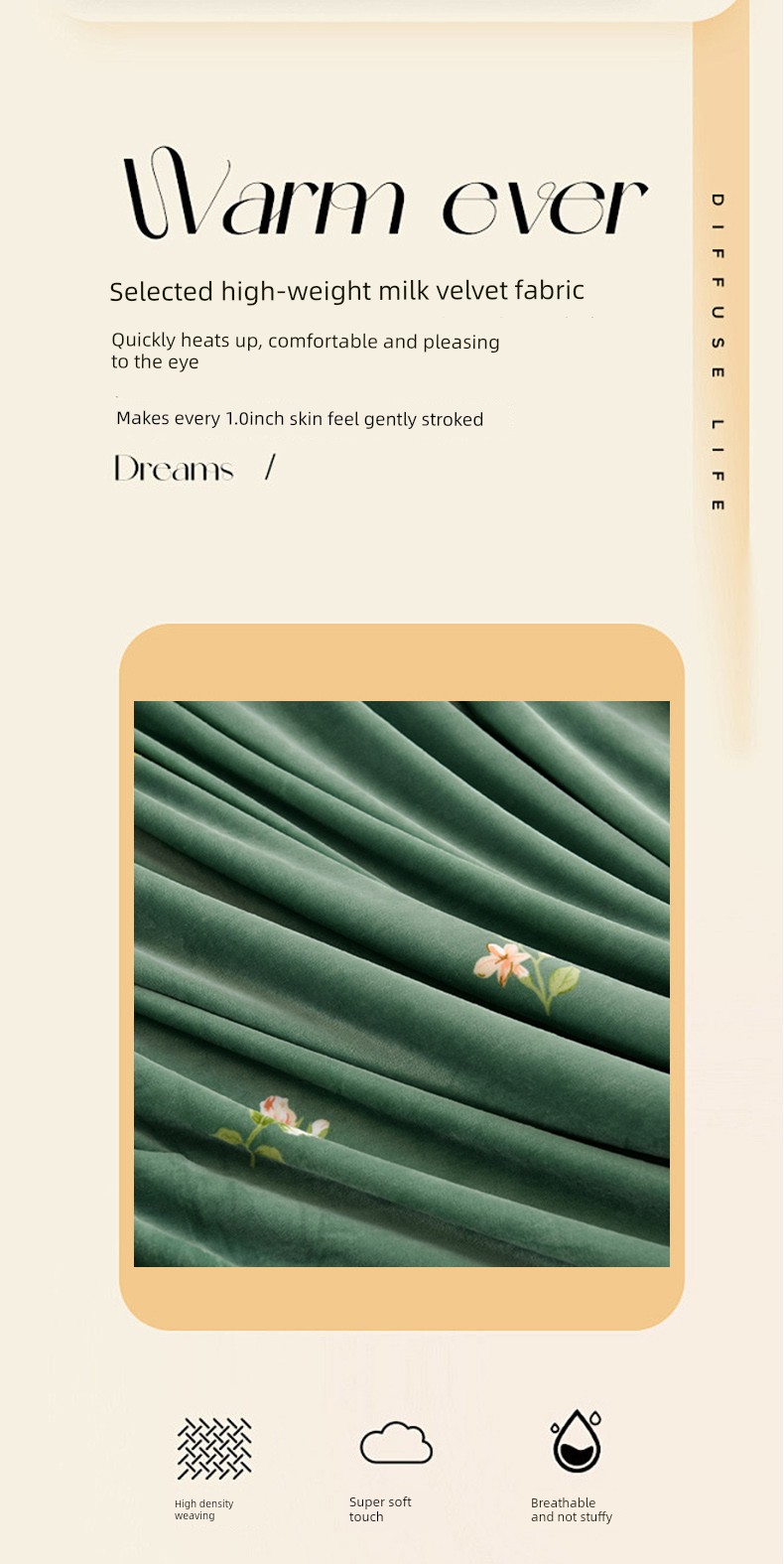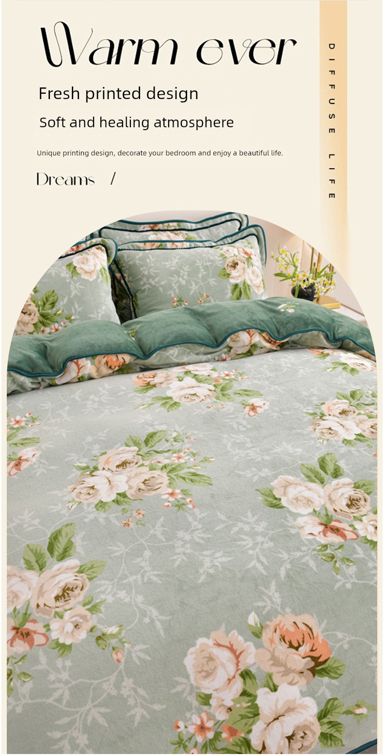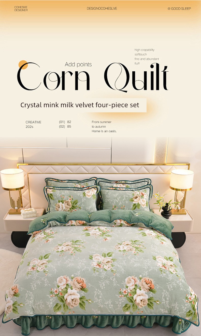 Fleece-Lined Milk Velvet Four-Piece Set, Double-Sided Thickened Coral Fleece Duvet Cover, Flannel Bed Sheet, Bed Skirt, Winter Bedding