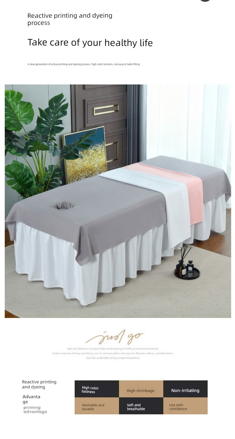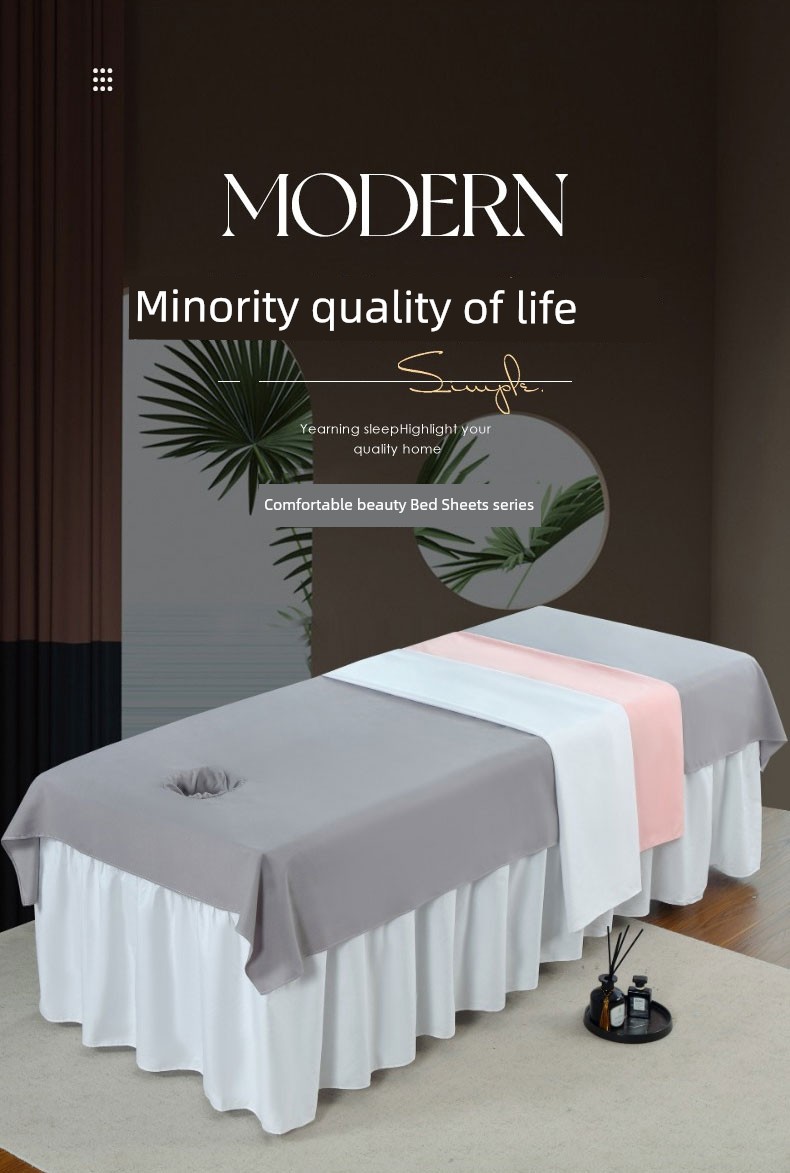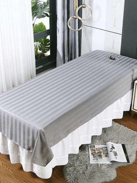 Pure Color High-Grade Beauty Sheets Single Piece White with Holes Stripes Anti-Wrinkle Easy to Wash and Dry Massage Massage Bed Special