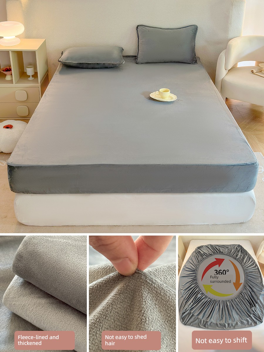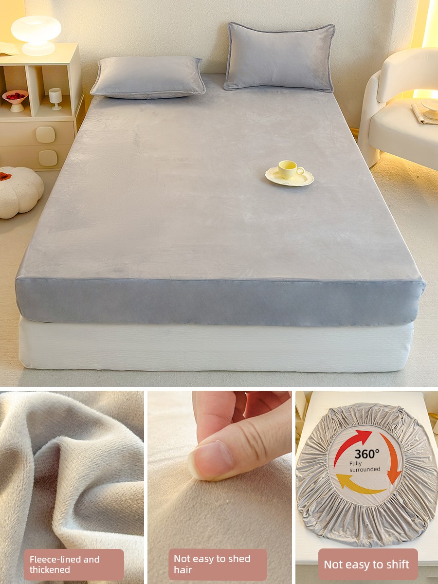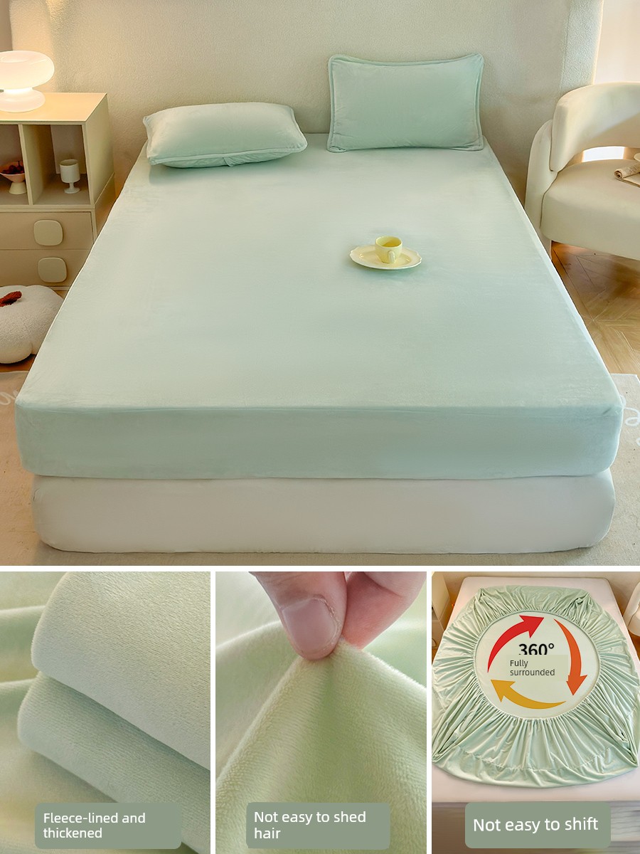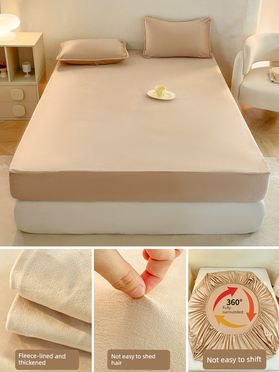 Milk Velvet Fitted Sheet, Winter Fleece-Lined Coral Fleece Bed Cover, Mattress Protector, Autumn and Winter Thickened Flannel Plush Bed Sheet
