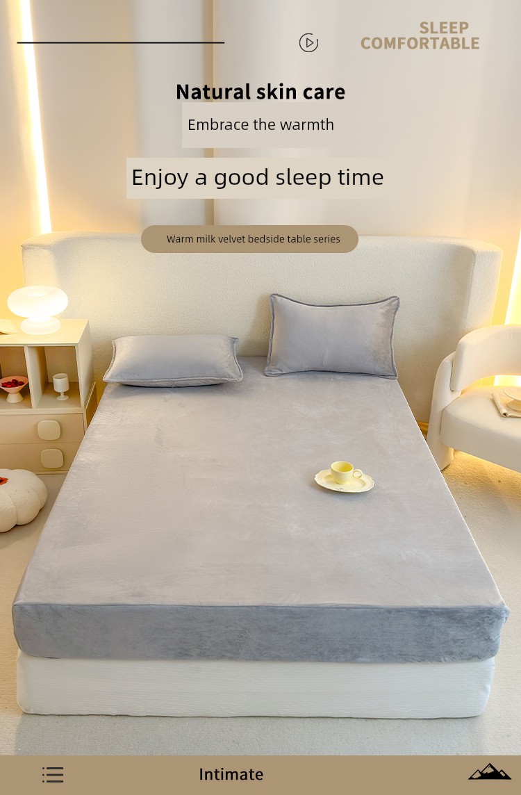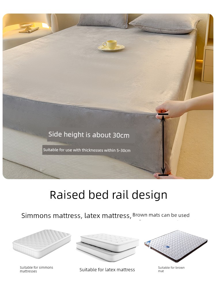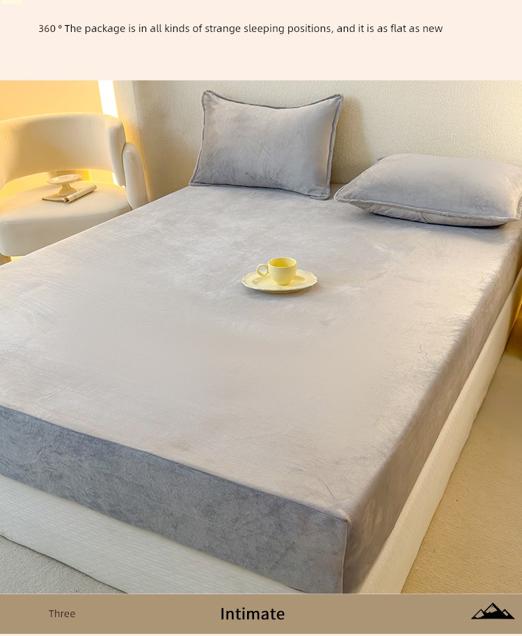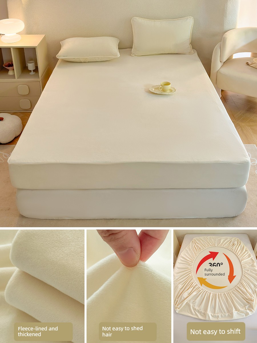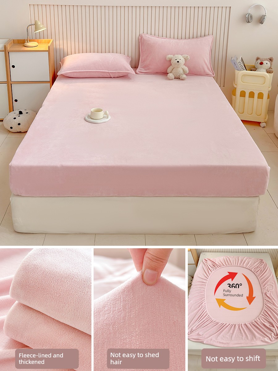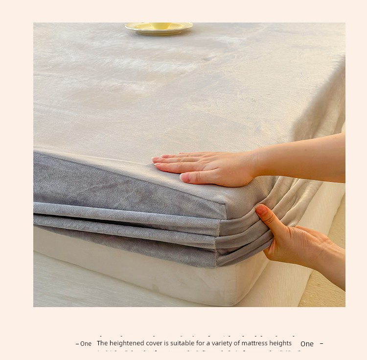 Milk Velvet Fitted Sheet, Winter Fleece-Lined Coral Fleece Bed Cover, Mattress Protector, Autumn and Winter Thickened Flannel Plush Bed Sheet