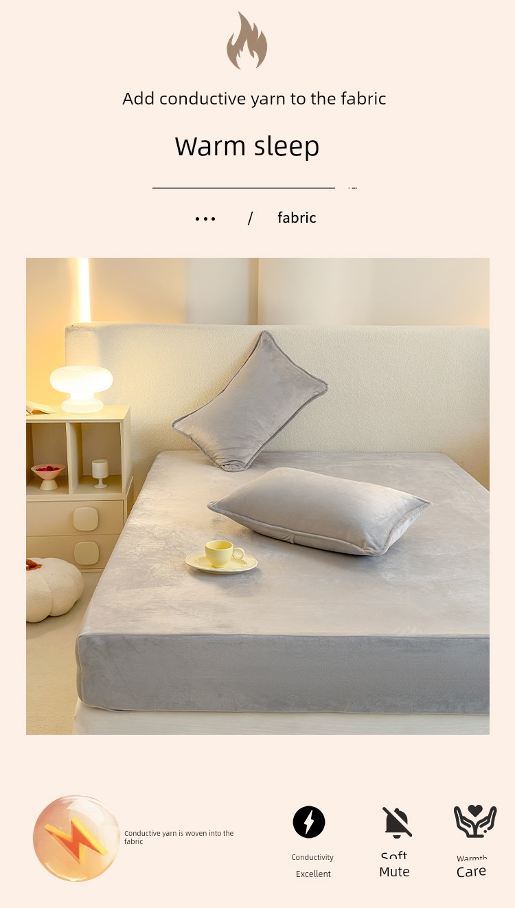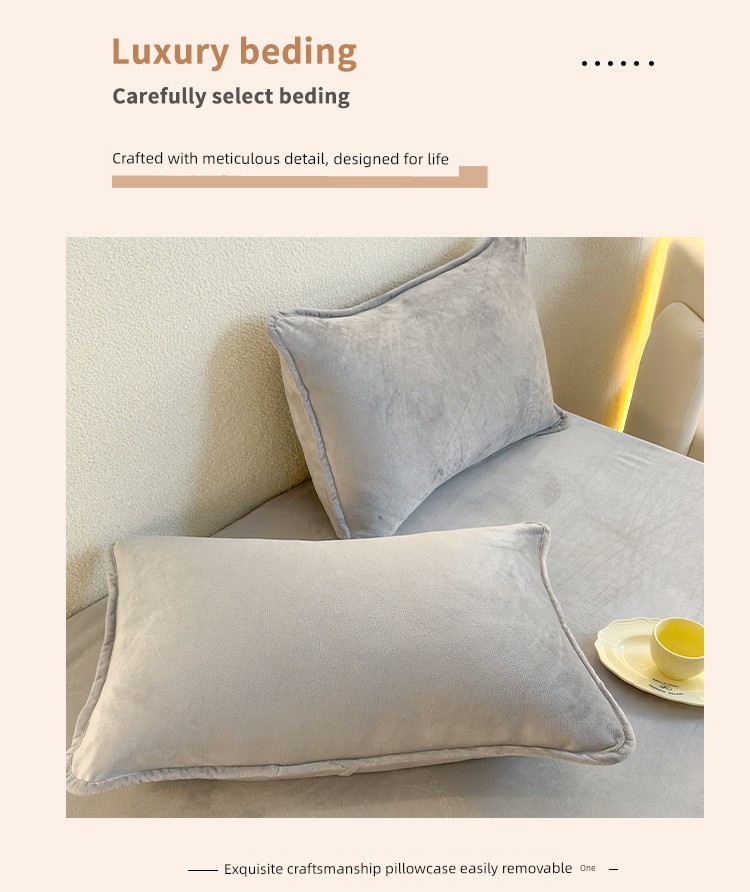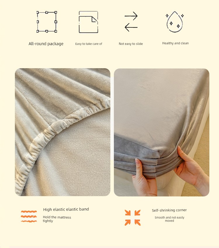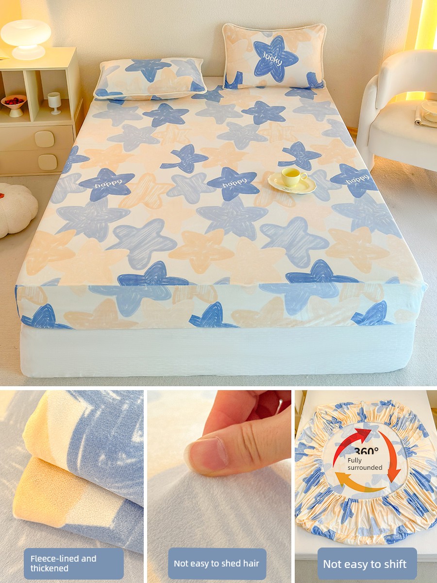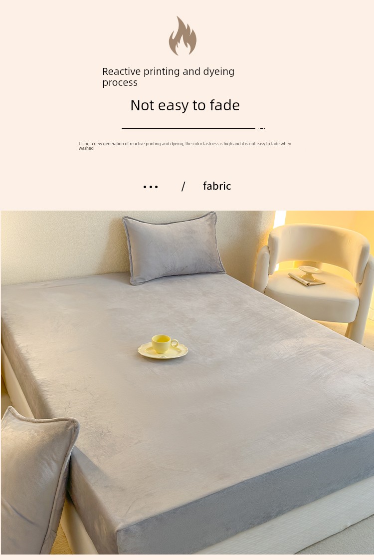 Milk Velvet Fitted Sheet, Winter Fleece-Lined Coral Fleece Bed Cover, Mattress Protector, Autumn and Winter Thickened Flannel Plush Bed Sheet