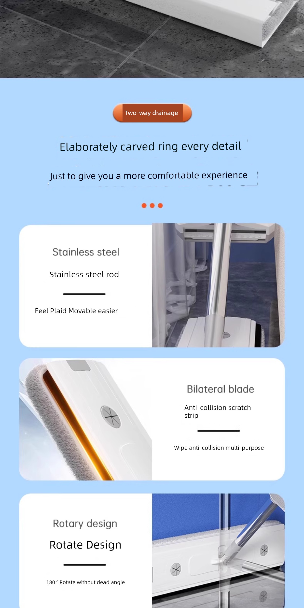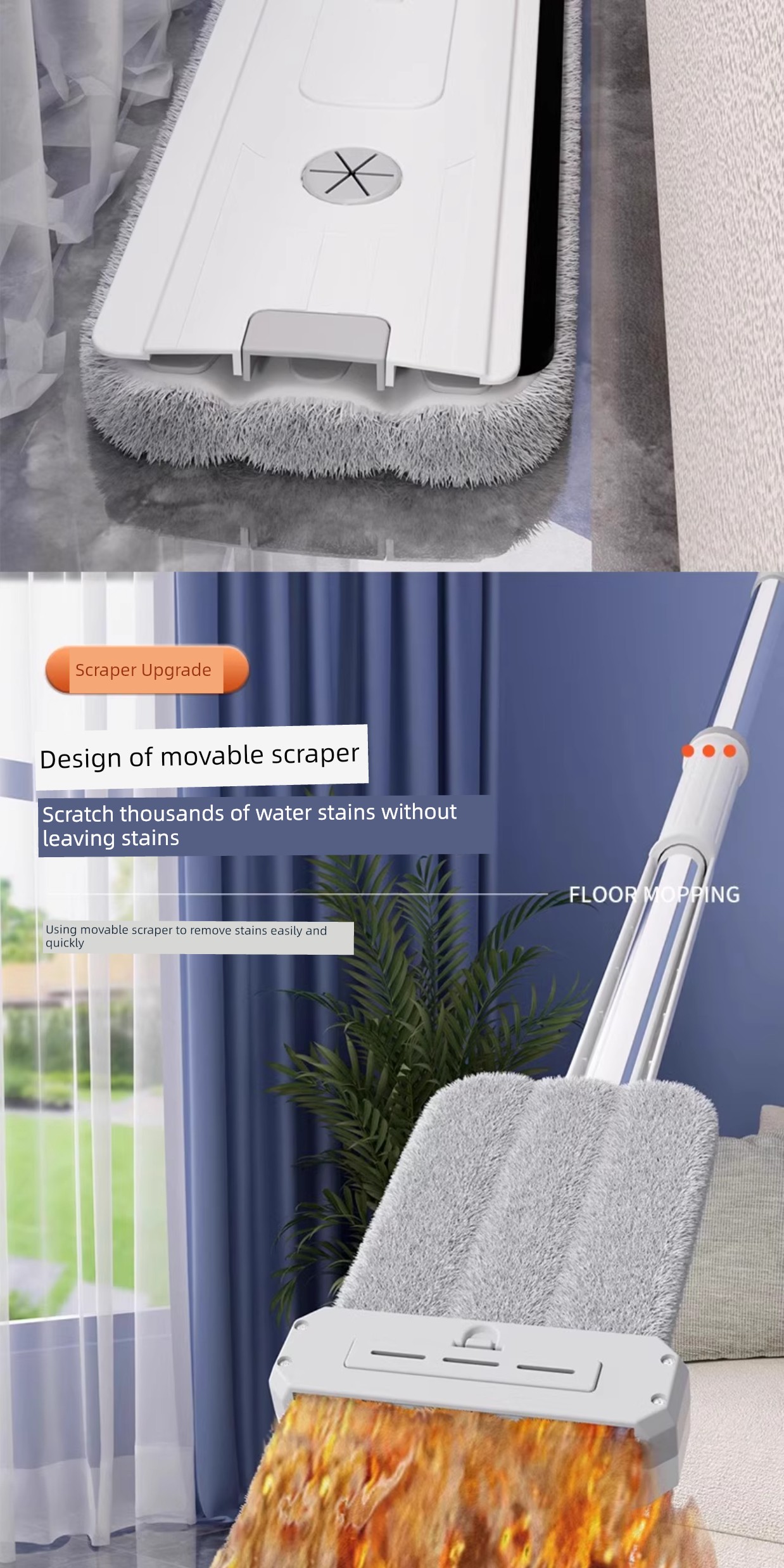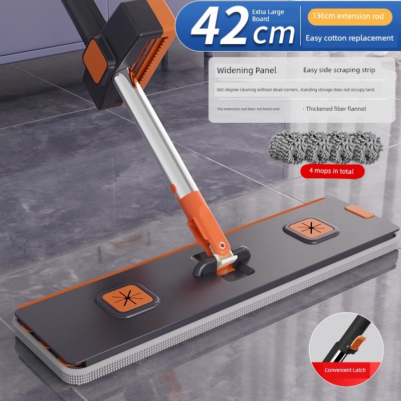 42cm Double-Layer Panel + 4 Chenille Mops [Portable Lock + Stainless Steel Wiper]