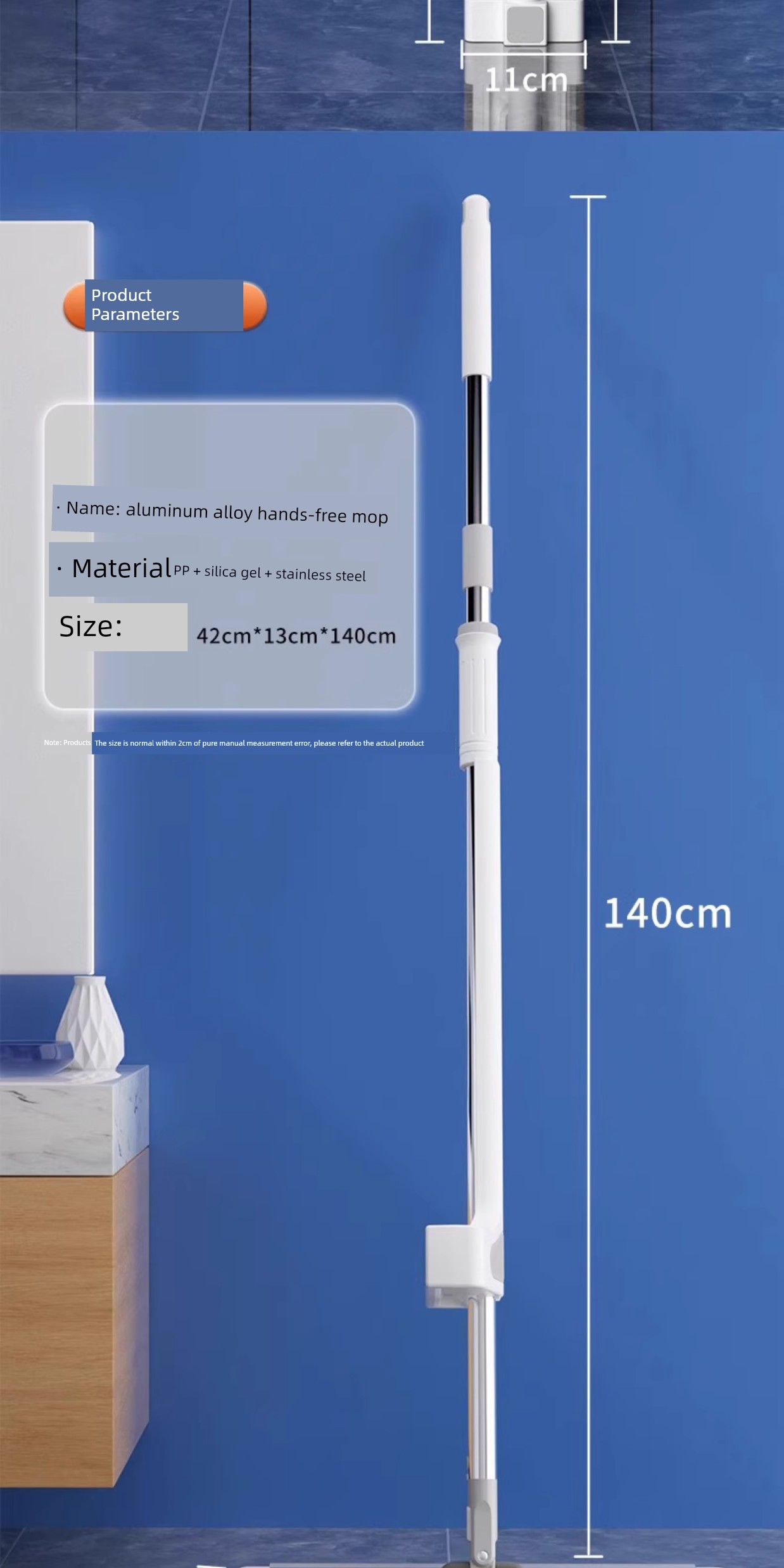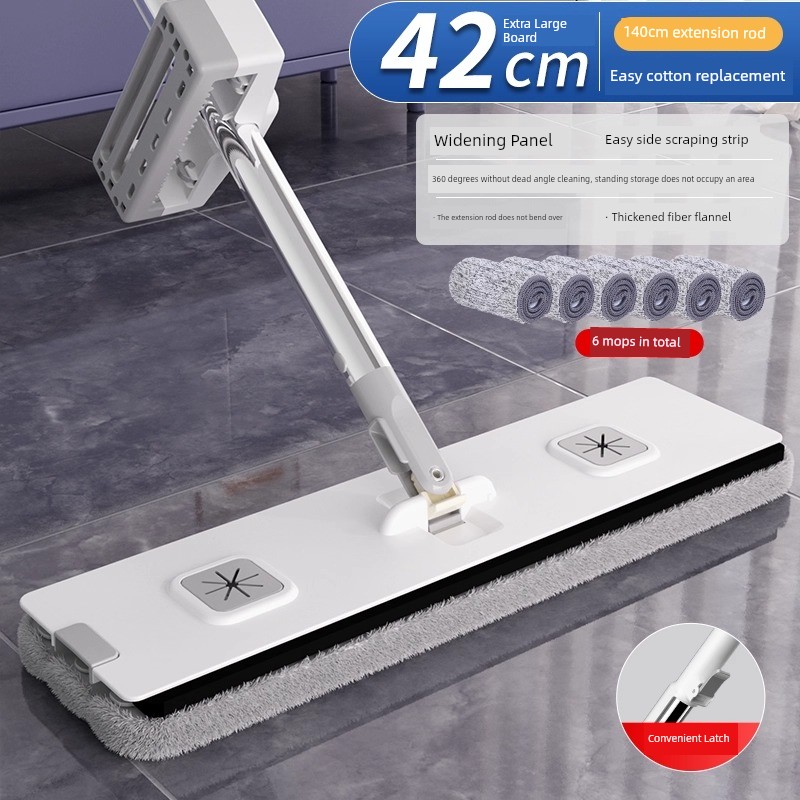 42cm Double-Layer Panel + 6 Chenille Mops [Portable Lock + Stainless Steel Wiper]
