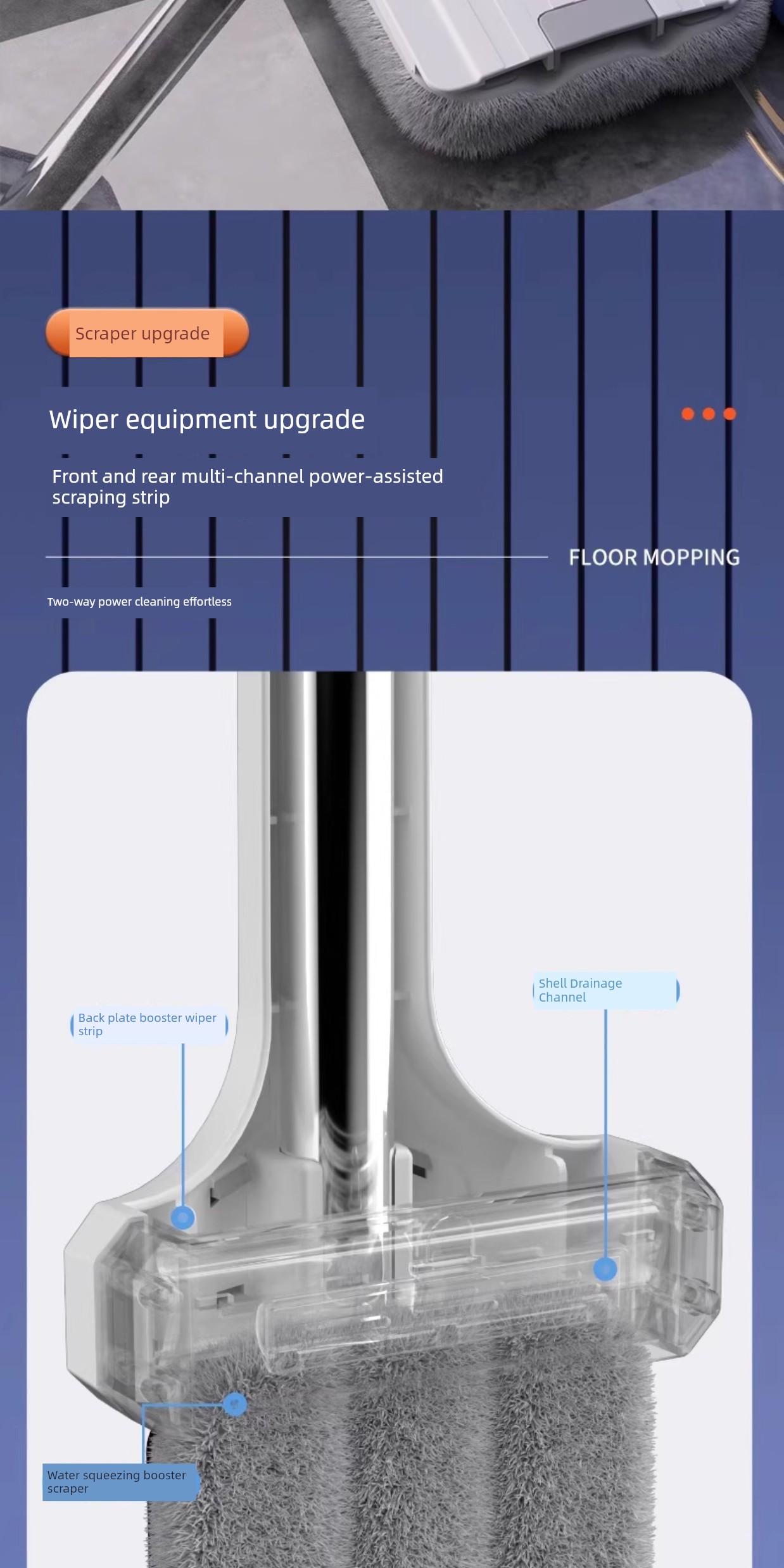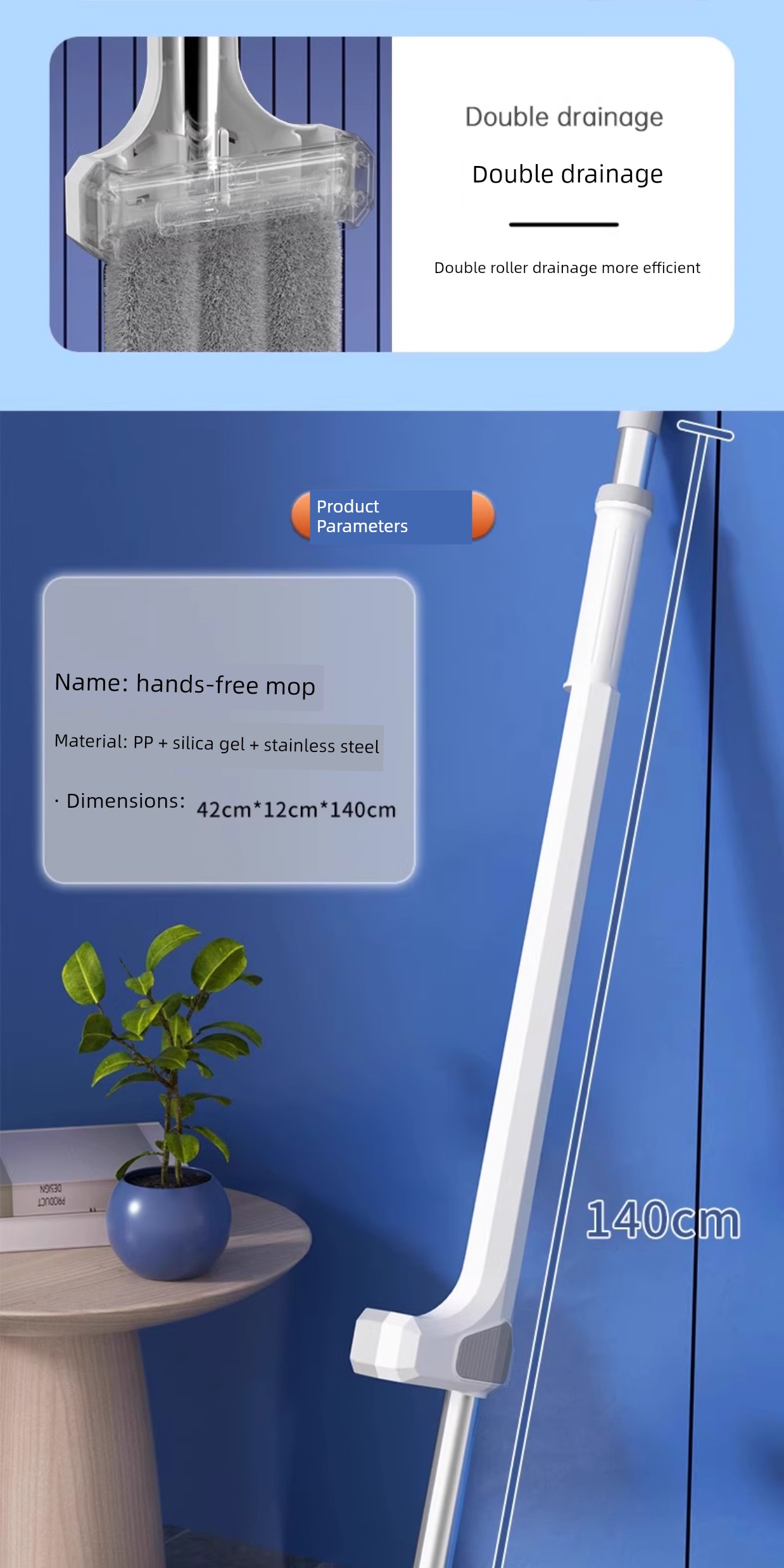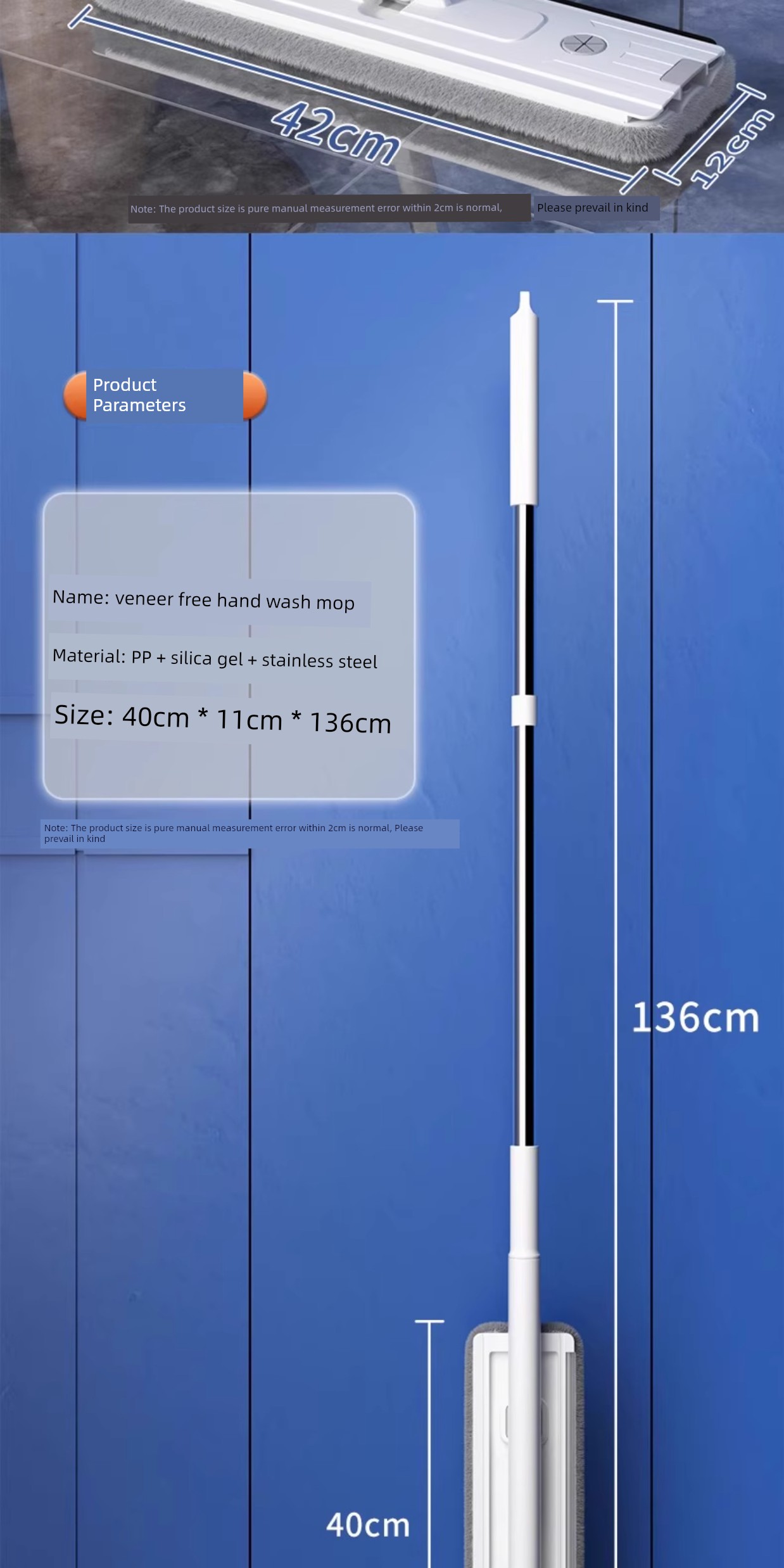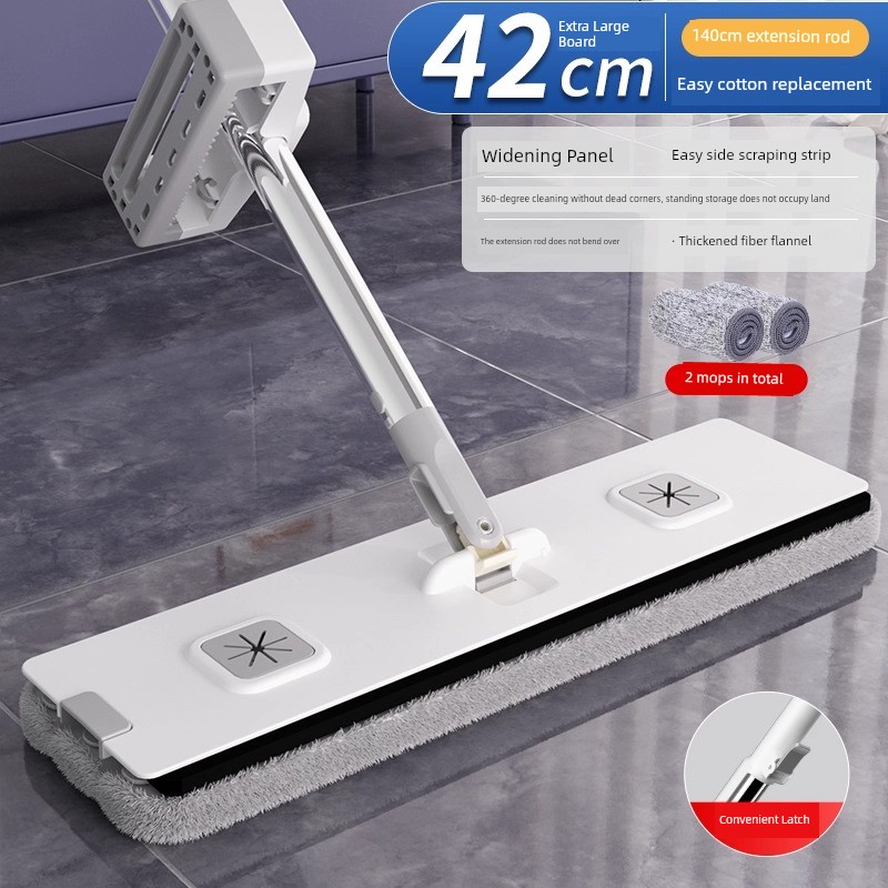 42cm Double-Layer Panel + 2 Chenille Mops [Portable Lock + Stainless Steel Wiper]