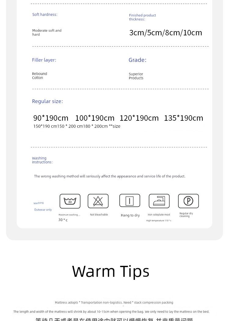 Medium-Hard 10cm Thick [Bamboo Shadow White High-Quality Knitted Fabric Cover](Moderately Soft and Hard Recommended Model)