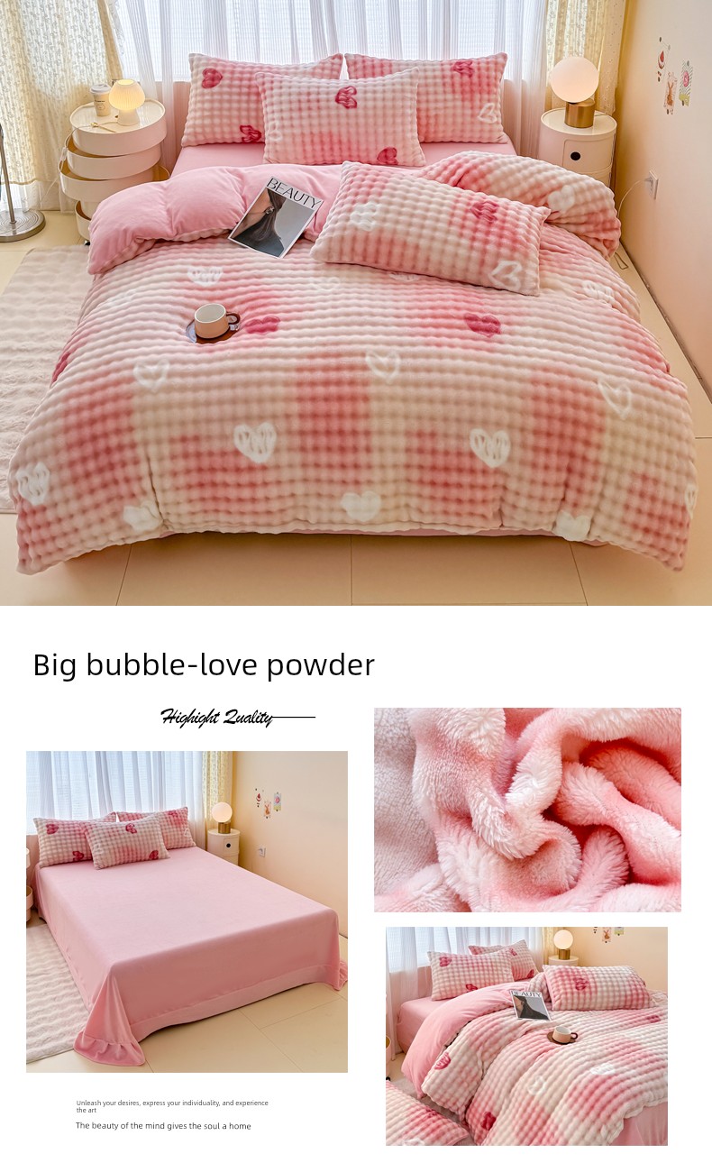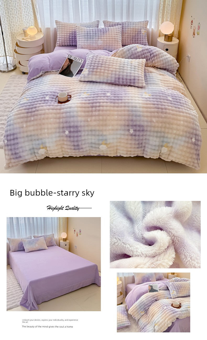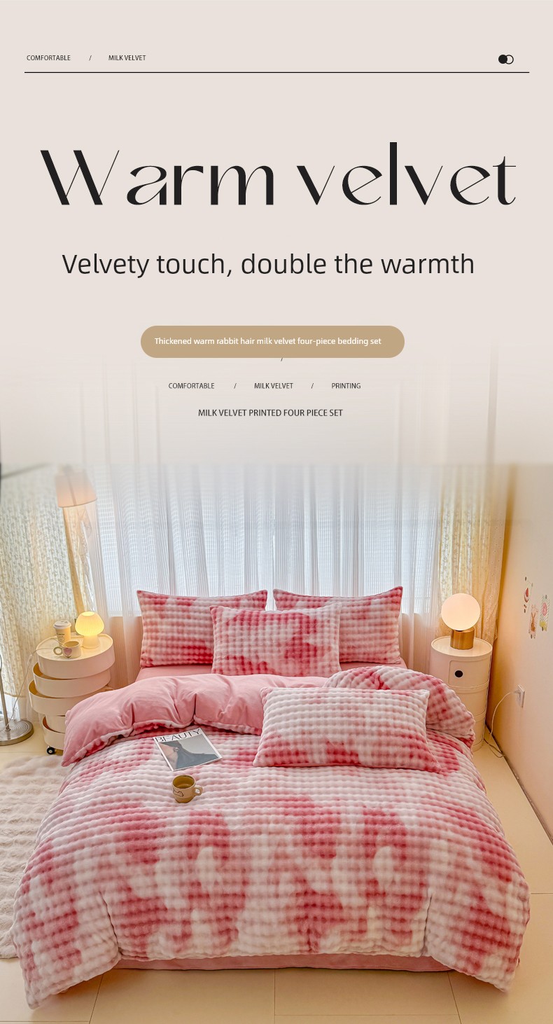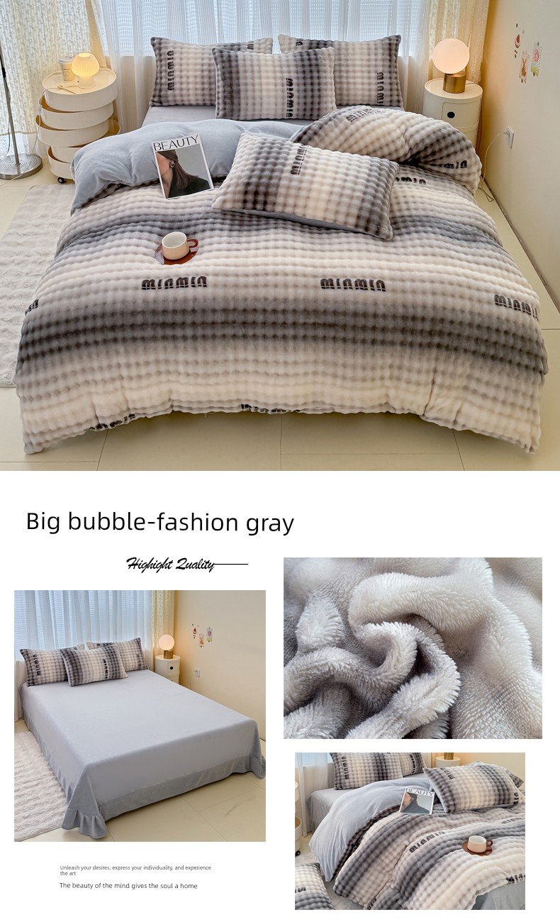 Yufuni Class a Imitation Rabbit Fur Four-Piece Set, Milk Velvet Anti-Static Three-Piece Set, Thickened Bed Sheet and Fitted Sheet Set