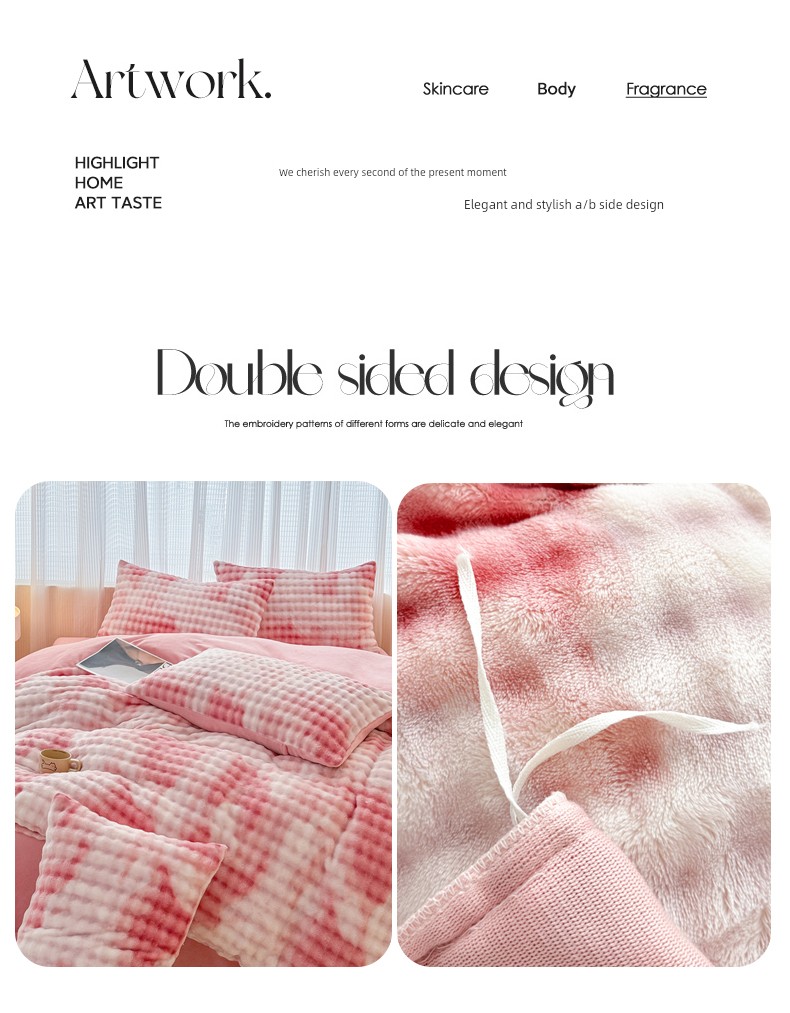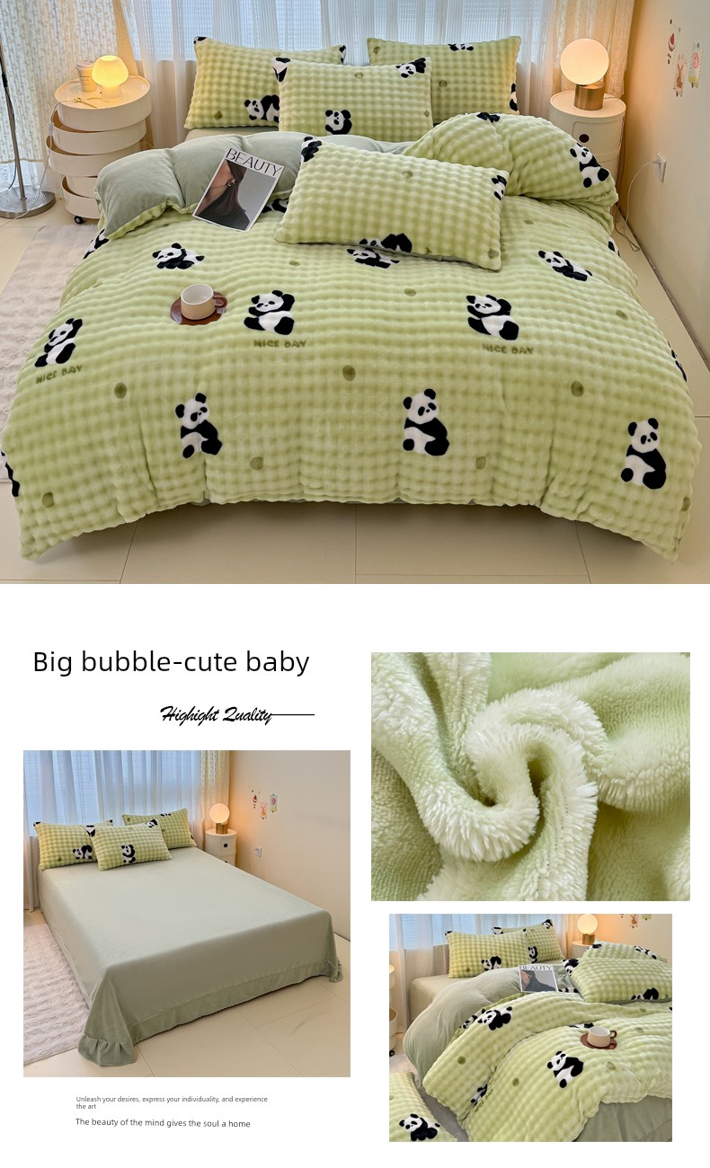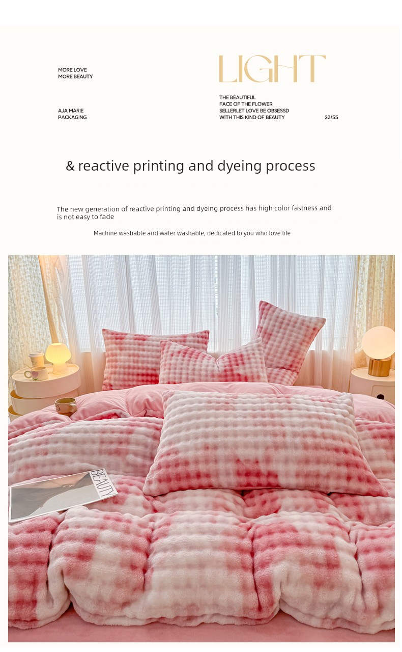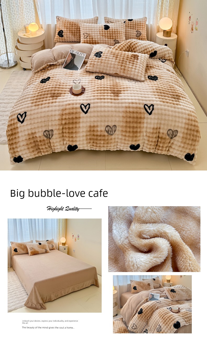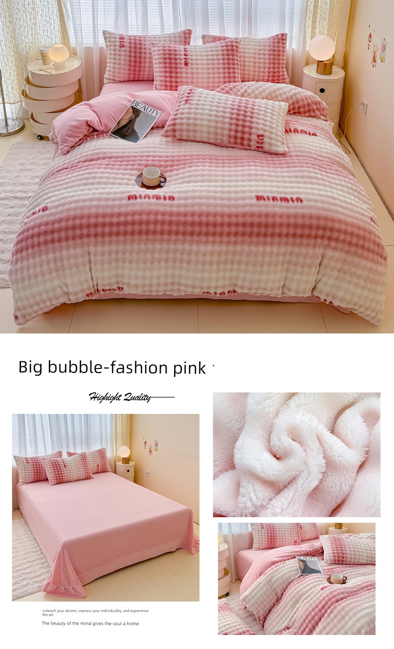 Yufuni Class a Imitation Rabbit Fur Four-Piece Set, Milk Velvet Anti-Static Three-Piece Set, Thickened Bed Sheet and Fitted Sheet Set