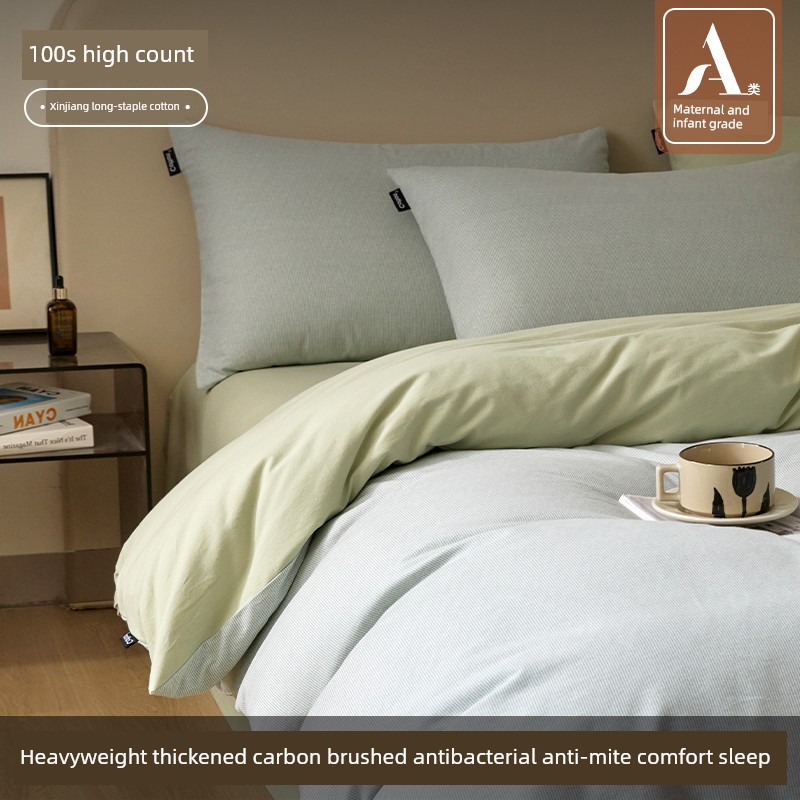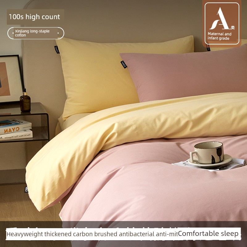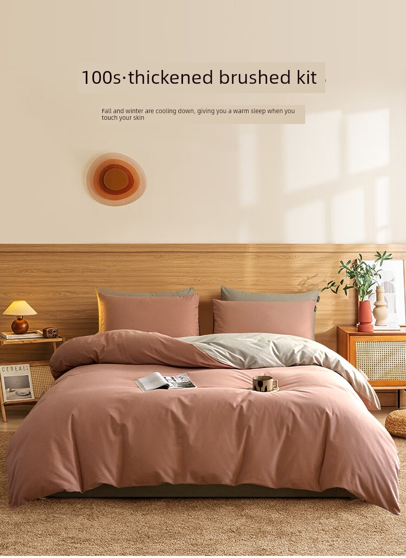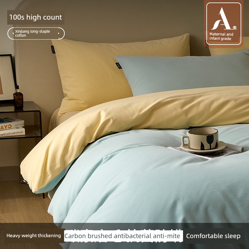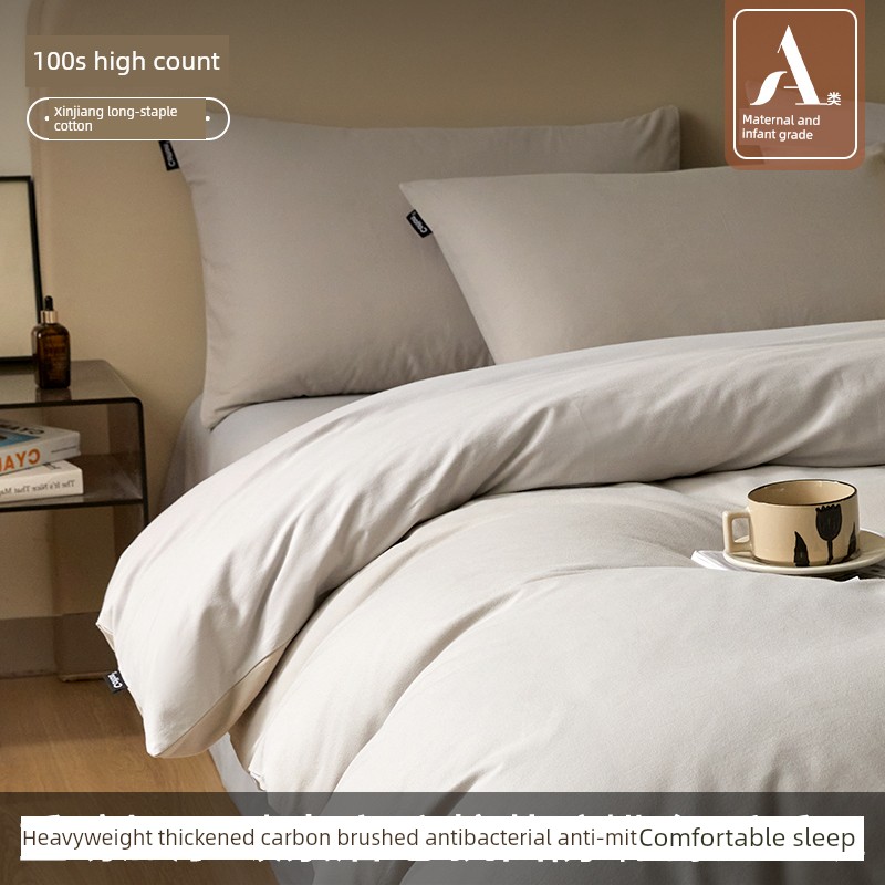 High-End Thickened 100S Pure Cotton Brushed Four-Piece Set 2025 New Model Pure Cotton Bed Sheet Duvet Cover Autumn and Winter Bedding Set 3-4