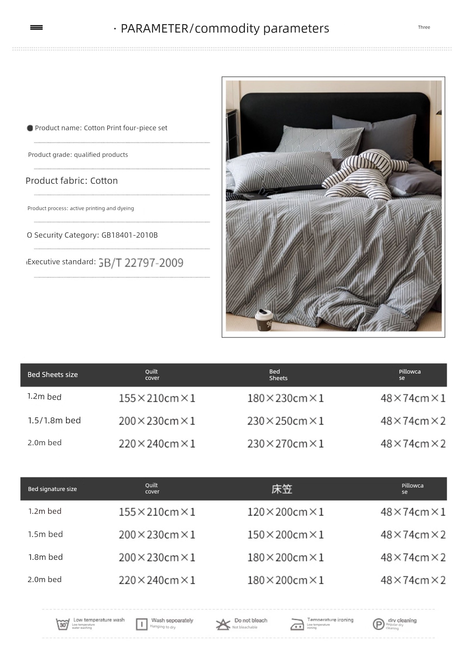 1.2m Bed [Three-Piece Bed Sheet Set] - Suitable for 150X200Cm Quilt Core