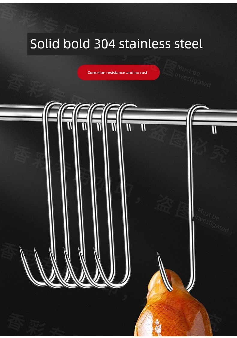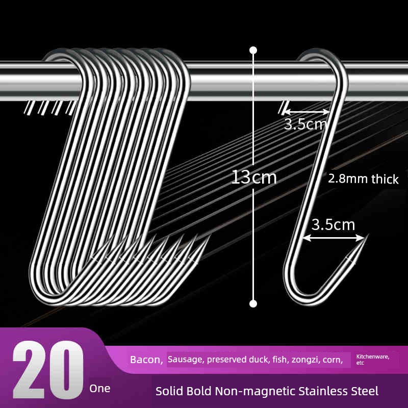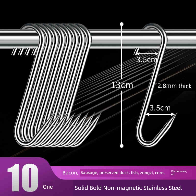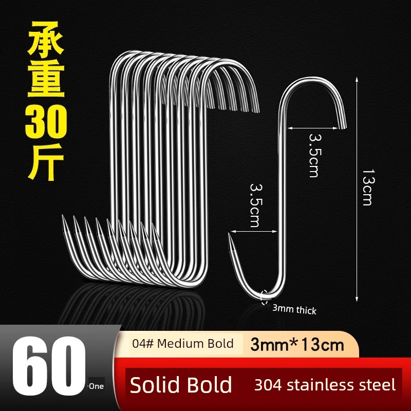 Bacon Hook S-Type Stainless Steel Drying Pork Hook Roast Duck Sausage Special Solid Thick Large Pointed Hook