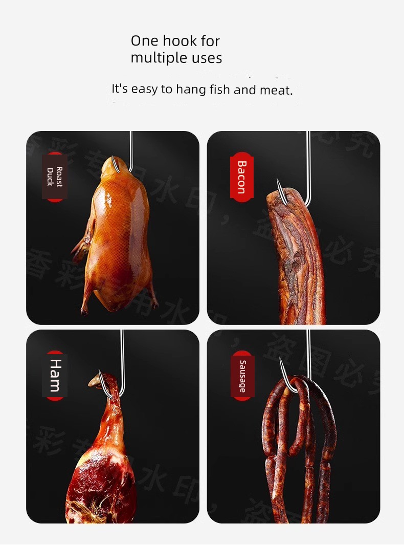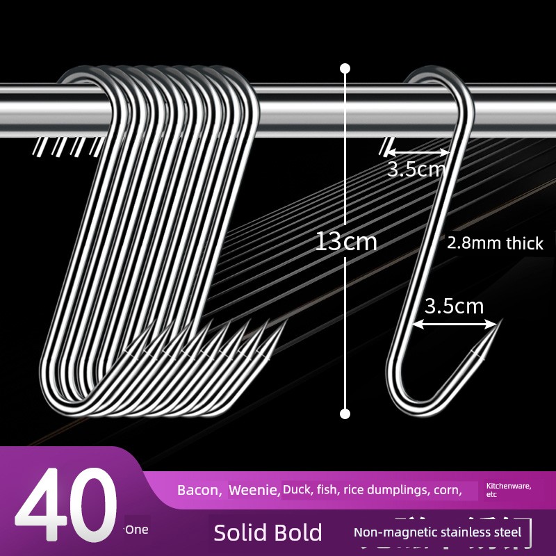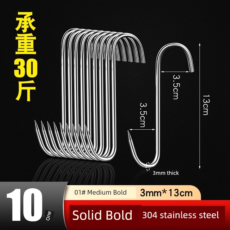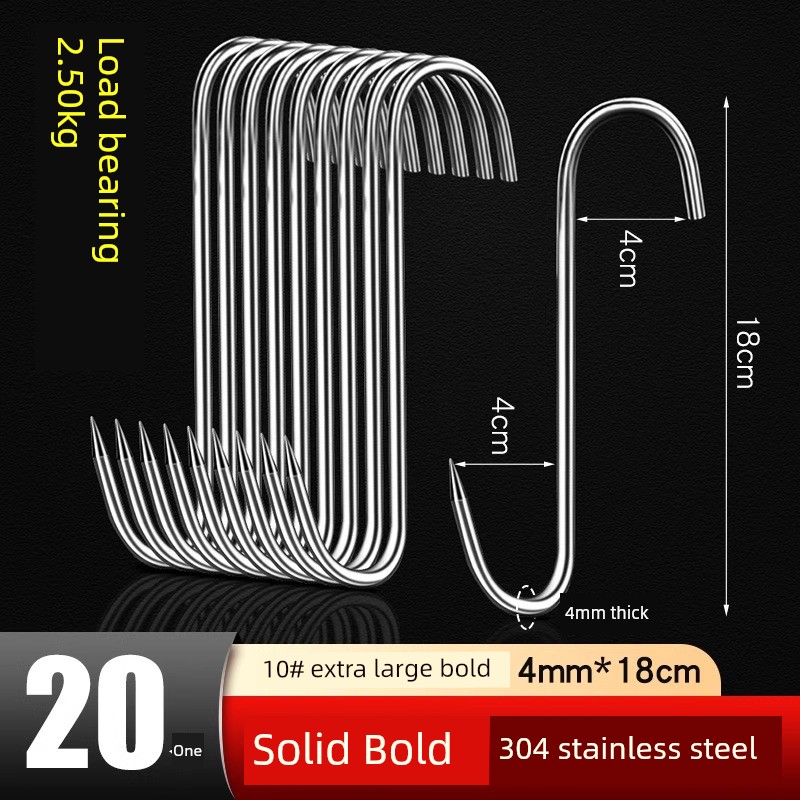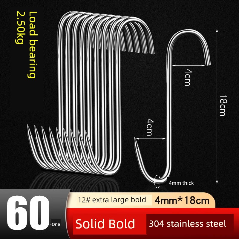 Bacon Hook S-Type Stainless Steel Drying Pork Hook Roast Duck Sausage Special Solid Thick Large Pointed Hook
