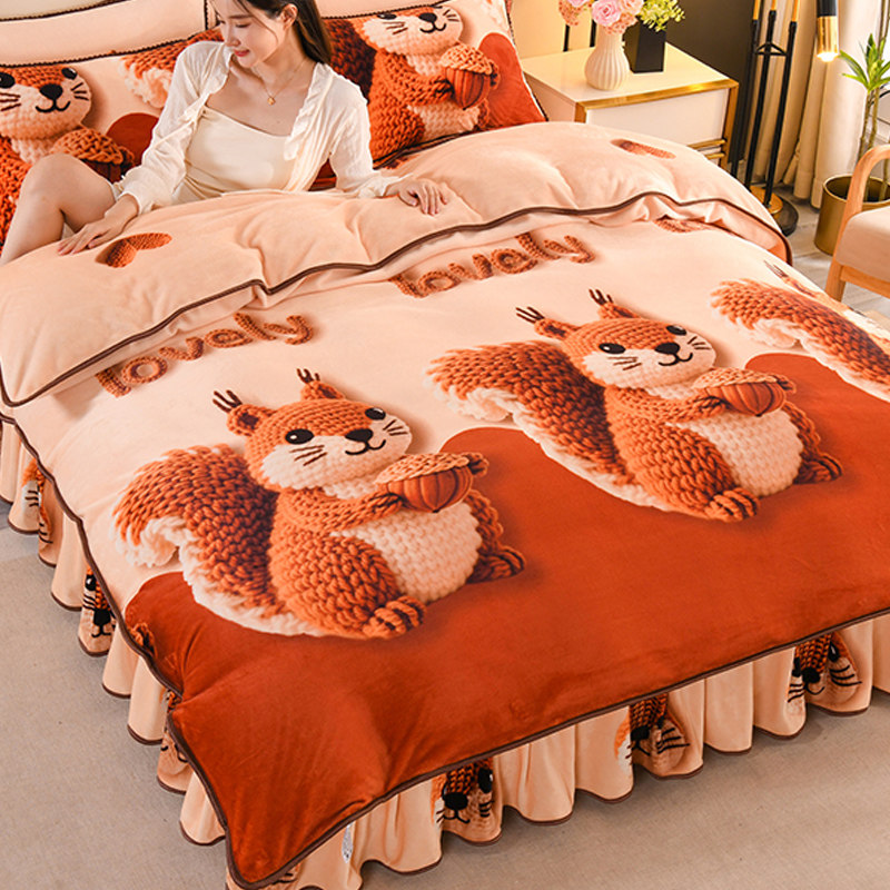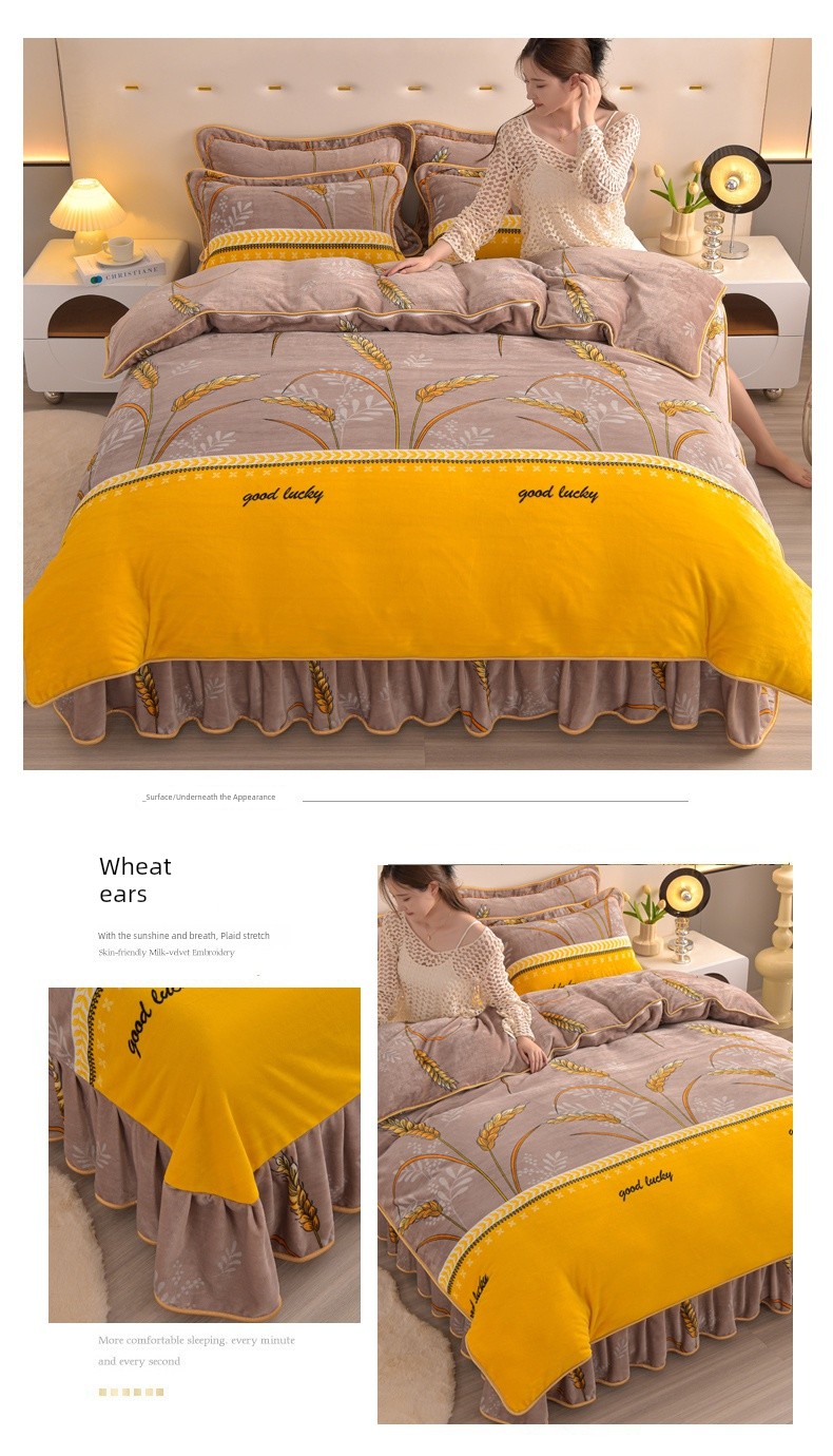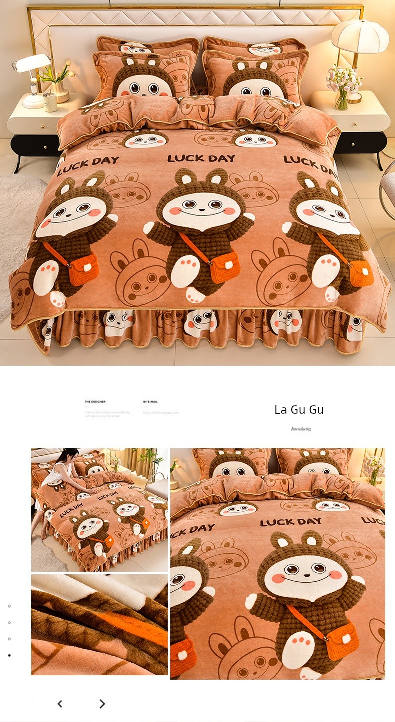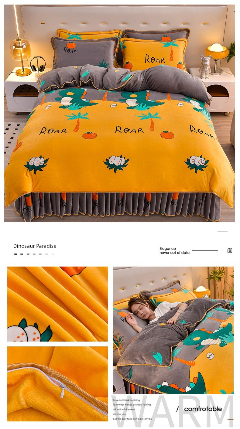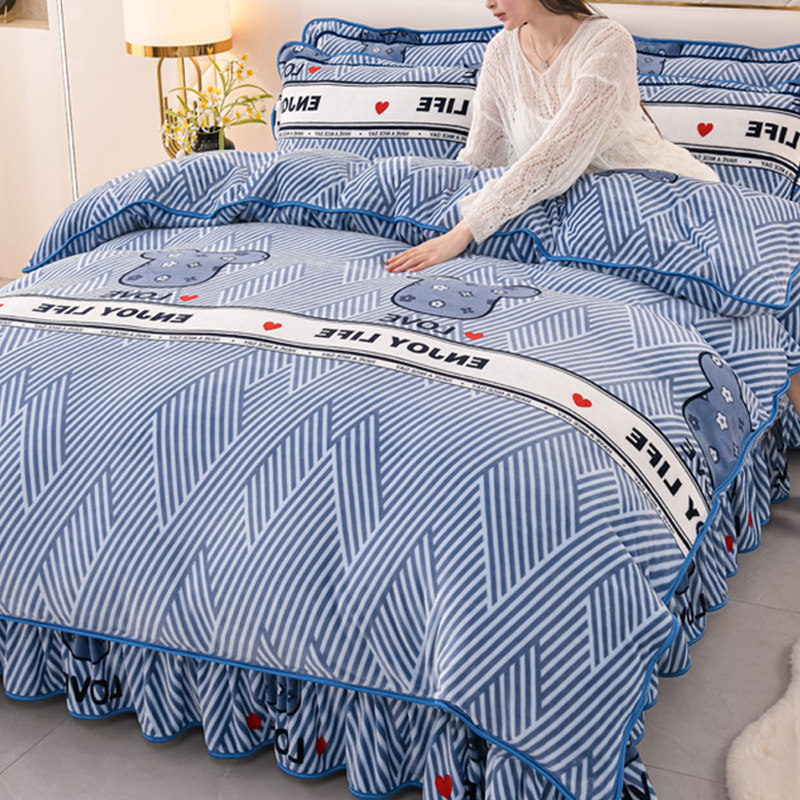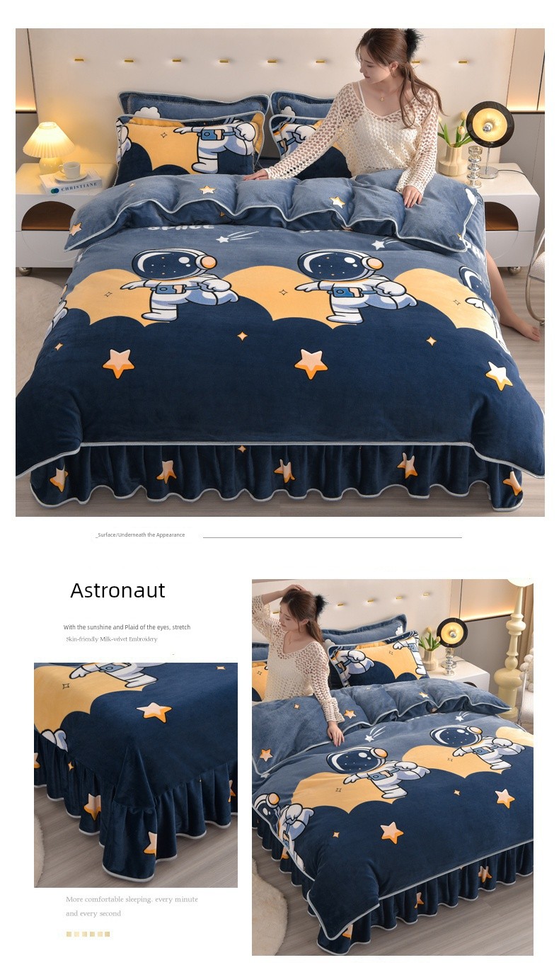 Winter Thickened Double-Sided Coral Fleece Duvet Cover Single Piece 150X200X230 Milk Velvet Flannel Four-Piece Set