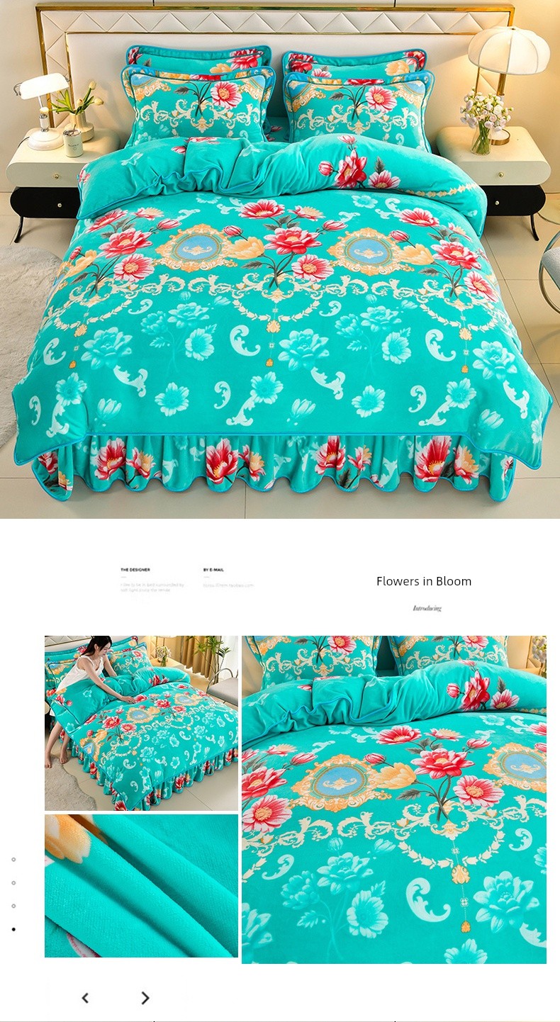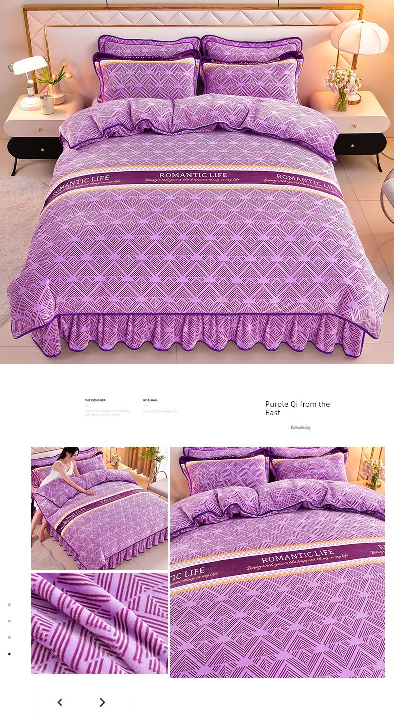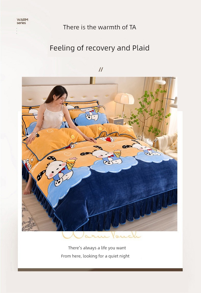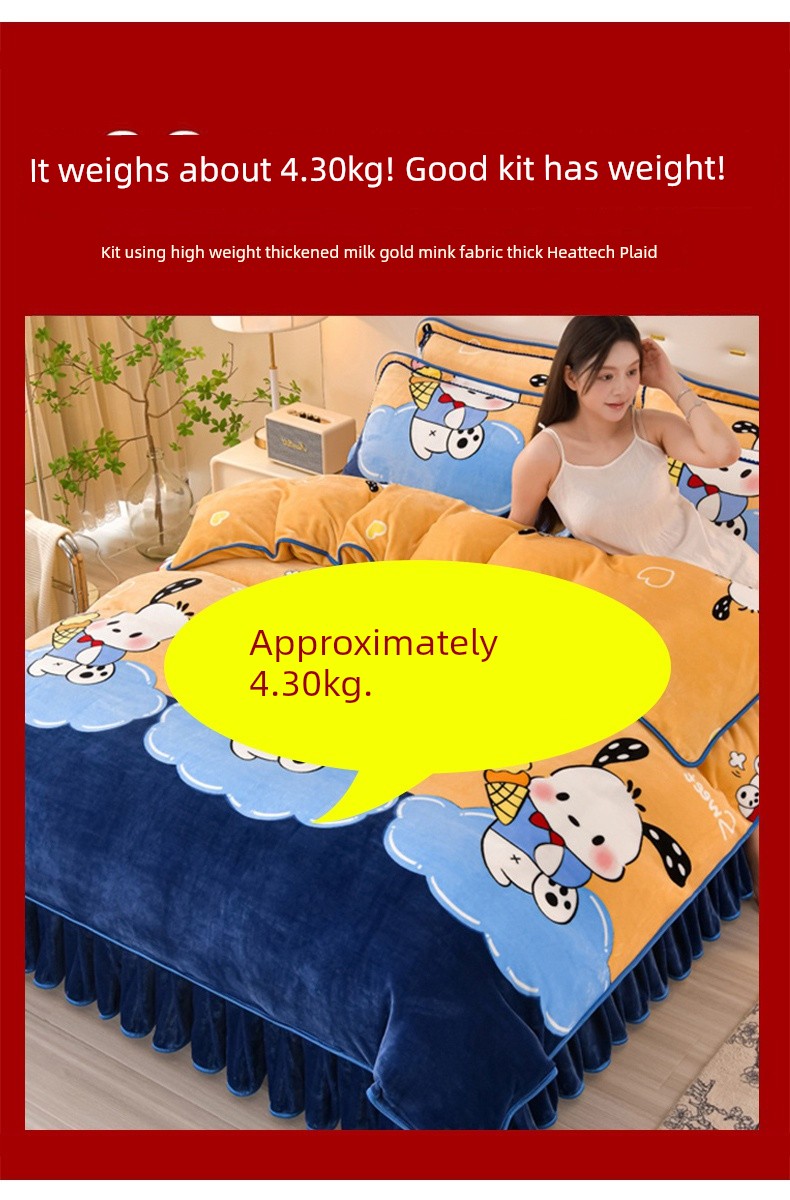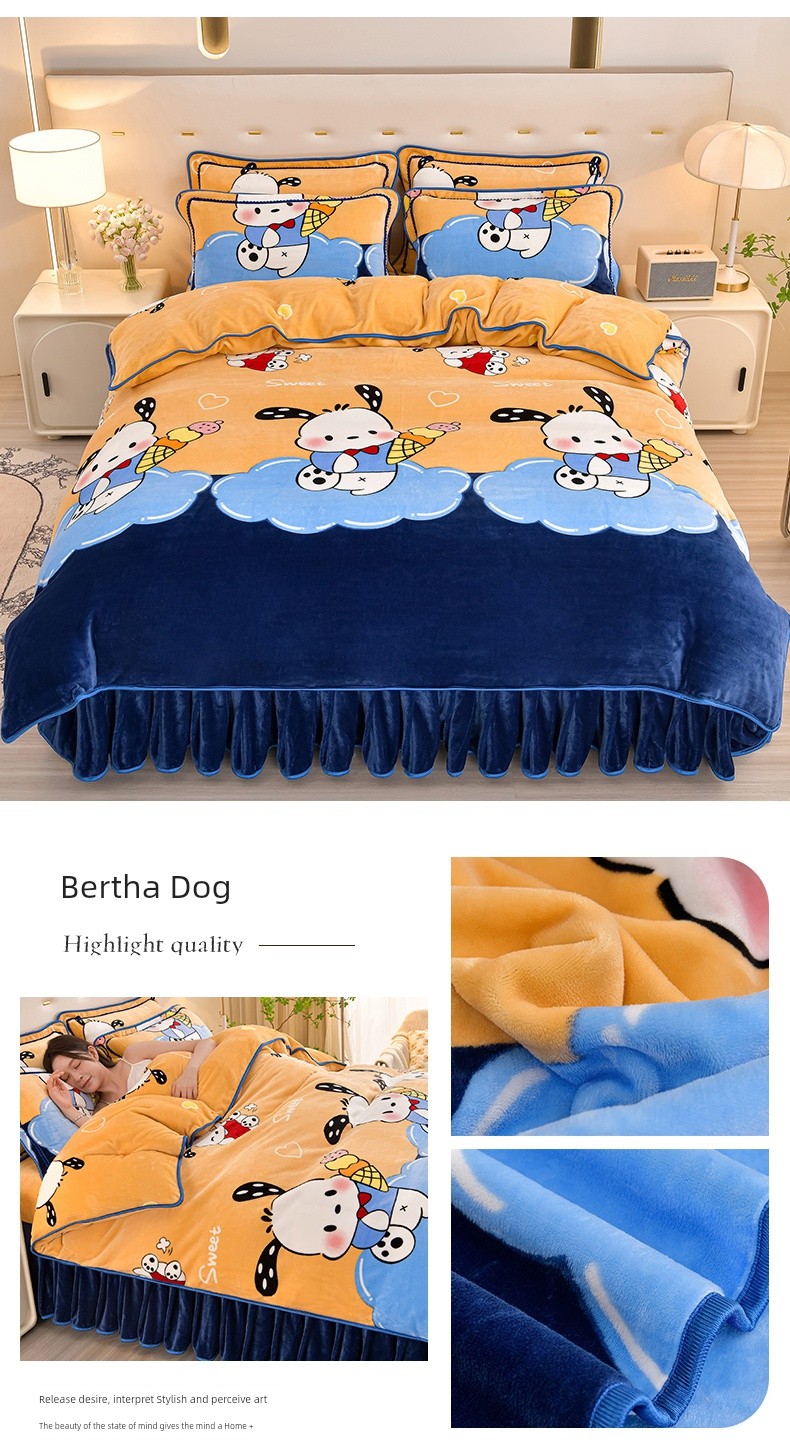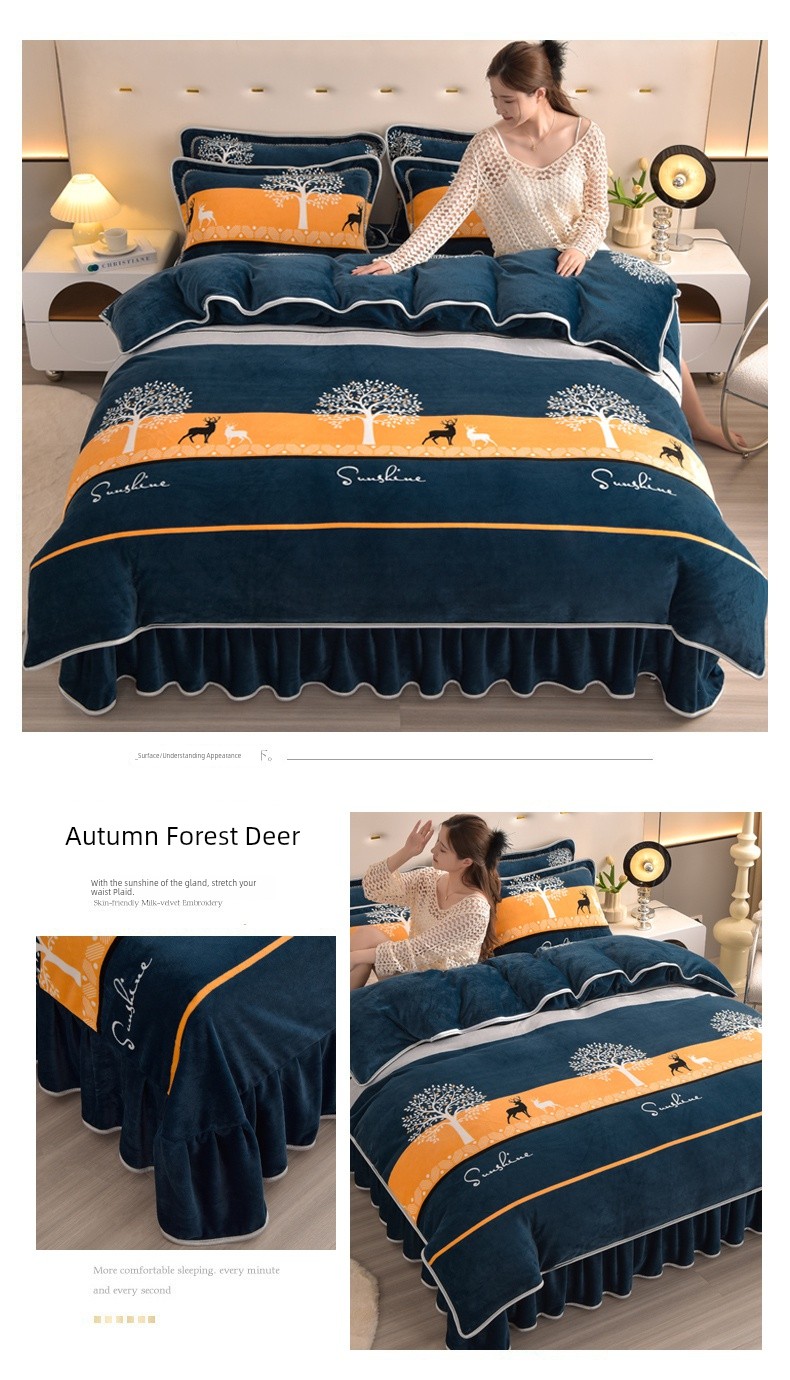 Winter Thickened Double-Sided Coral Fleece Duvet Cover Single Piece 150X200X230 Milk Velvet Flannel Four-Piece Set