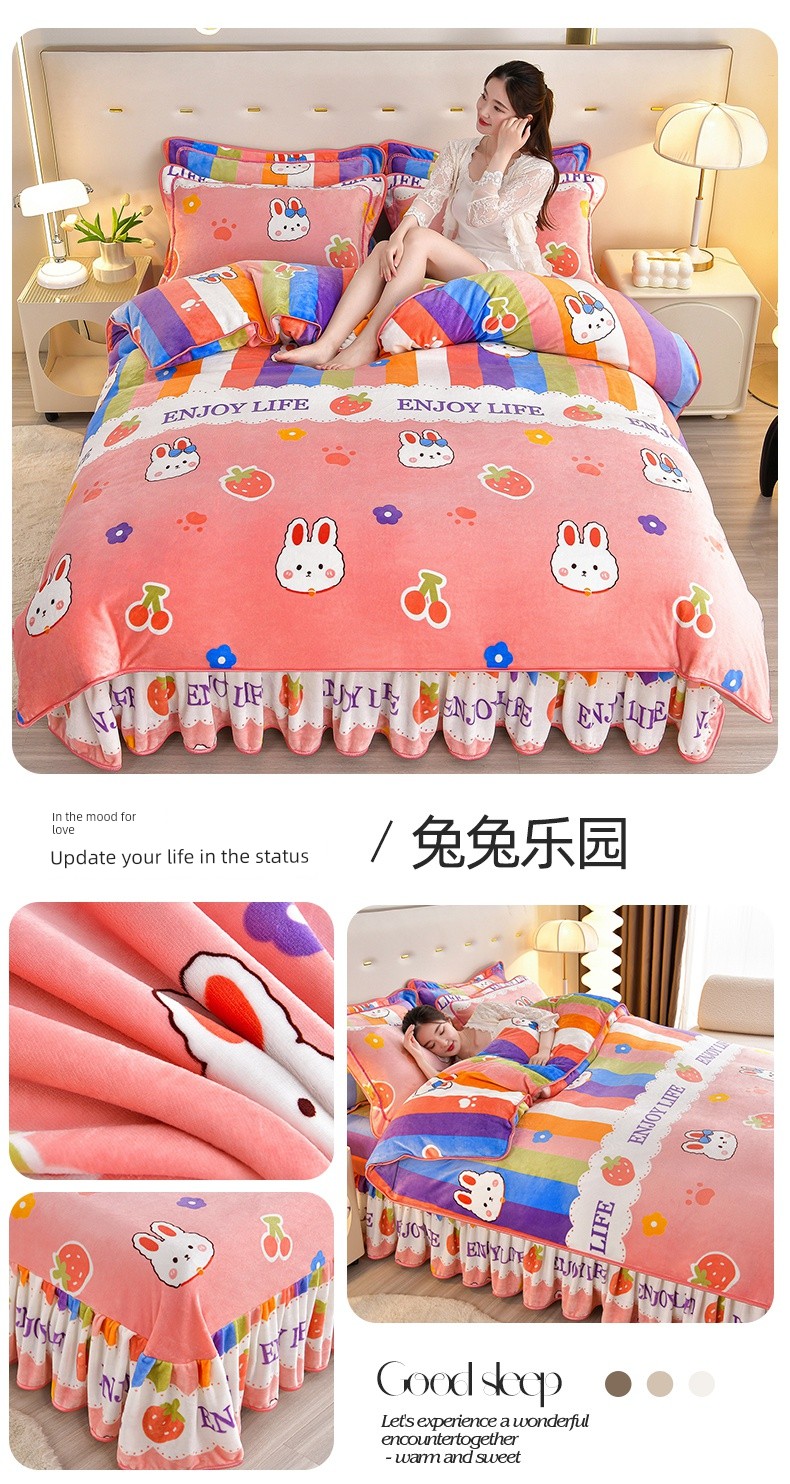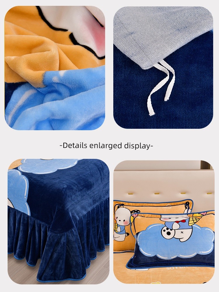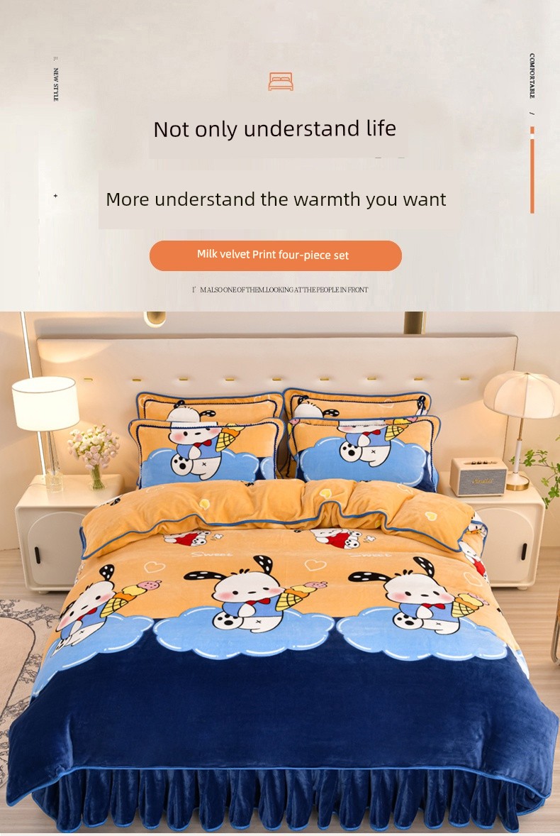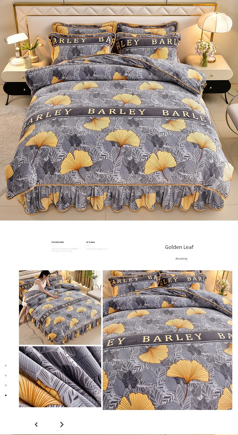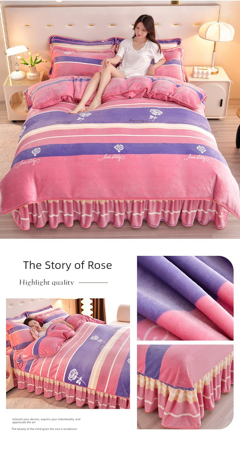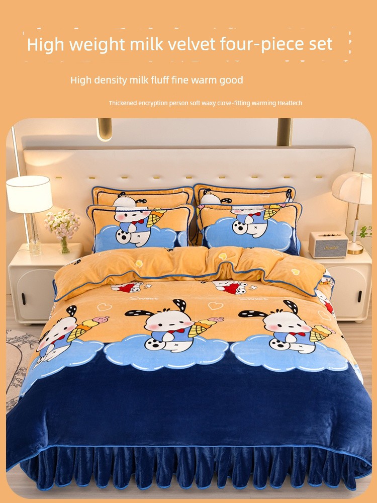 Winter Thickened Double-Sided Coral Fleece Duvet Cover Single Piece 150X200X230 Milk Velvet Flannel Four-Piece Set