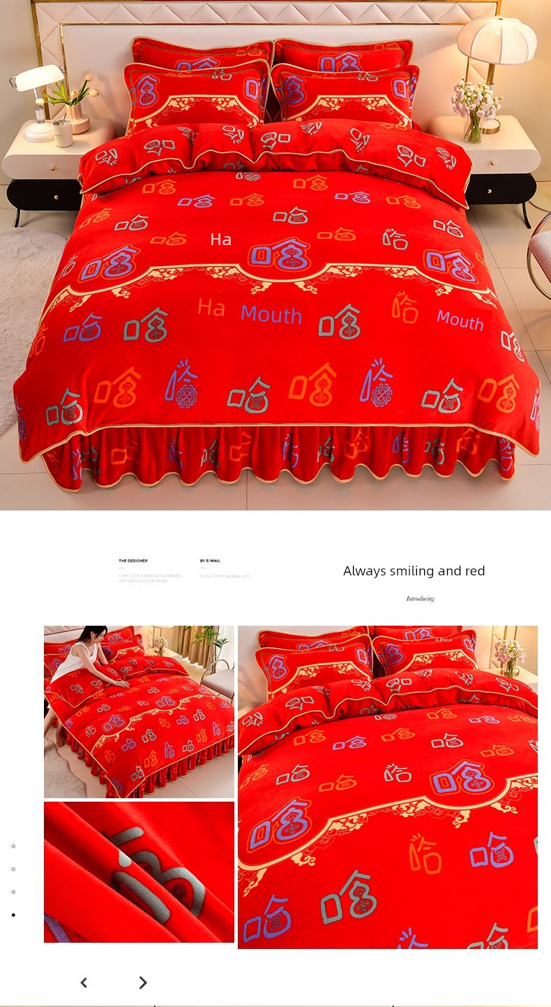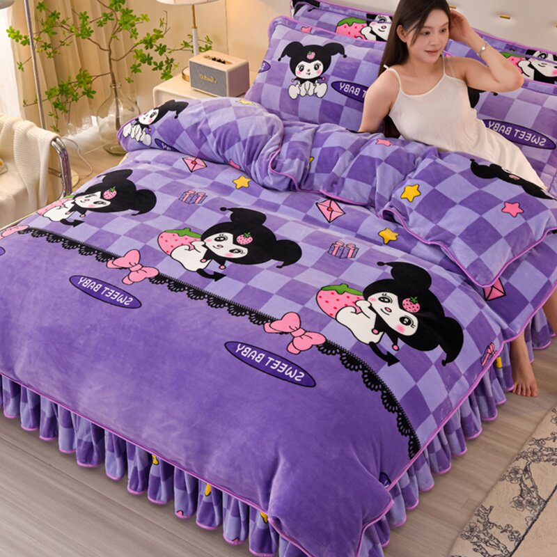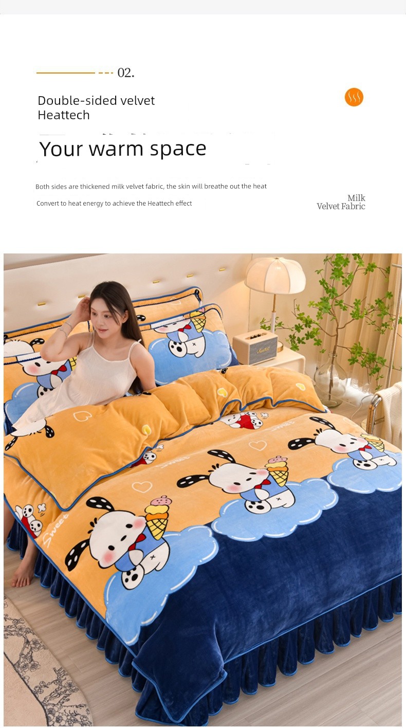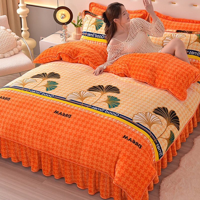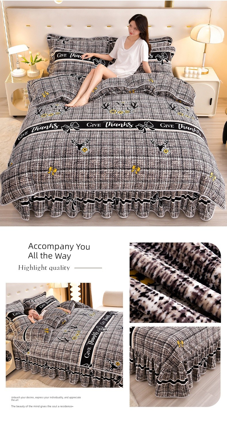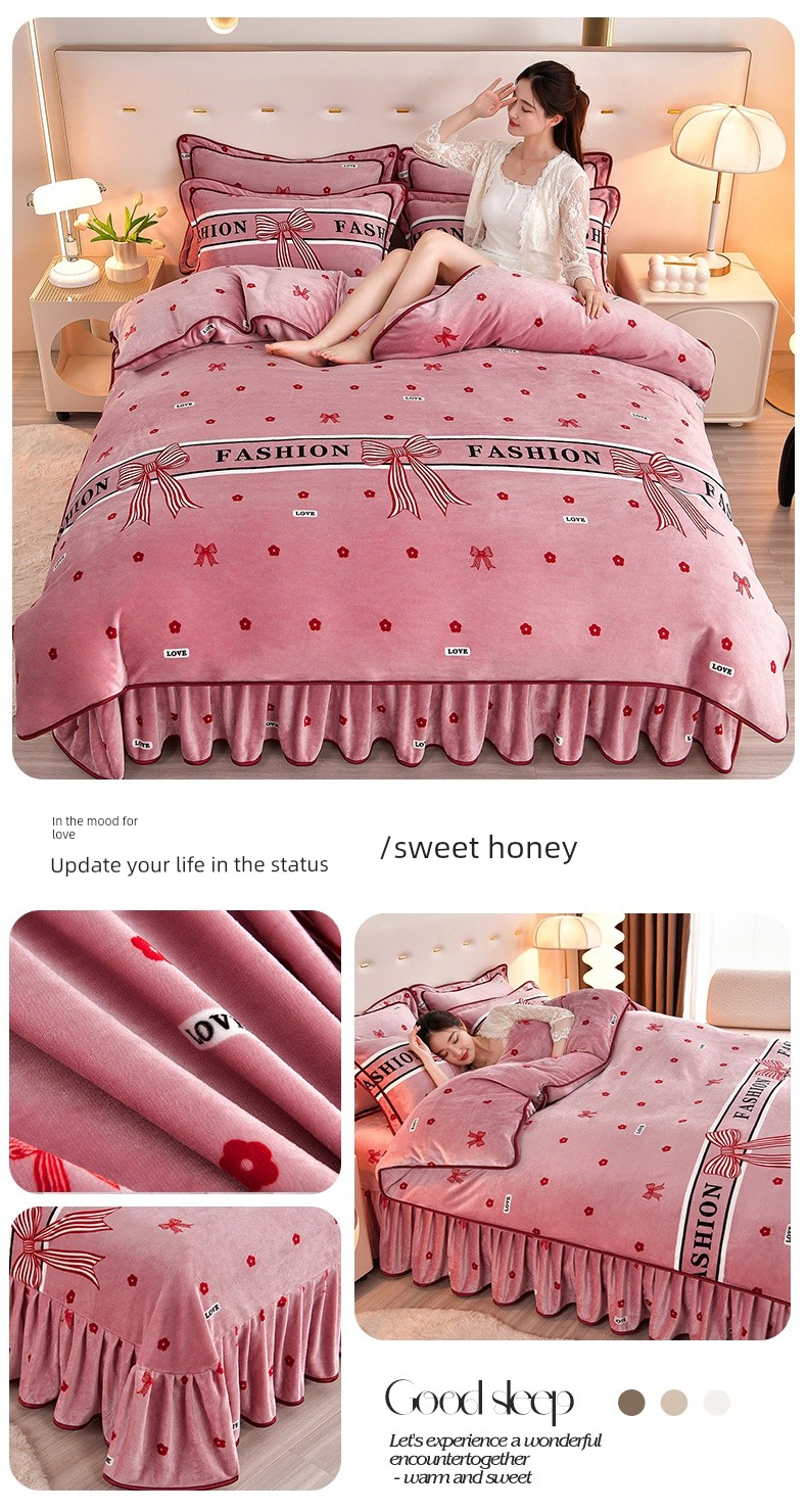 Winter Thickened Double-Sided Coral Fleece Duvet Cover Single Piece 150X200X230 Milk Velvet Flannel Four-Piece Set
