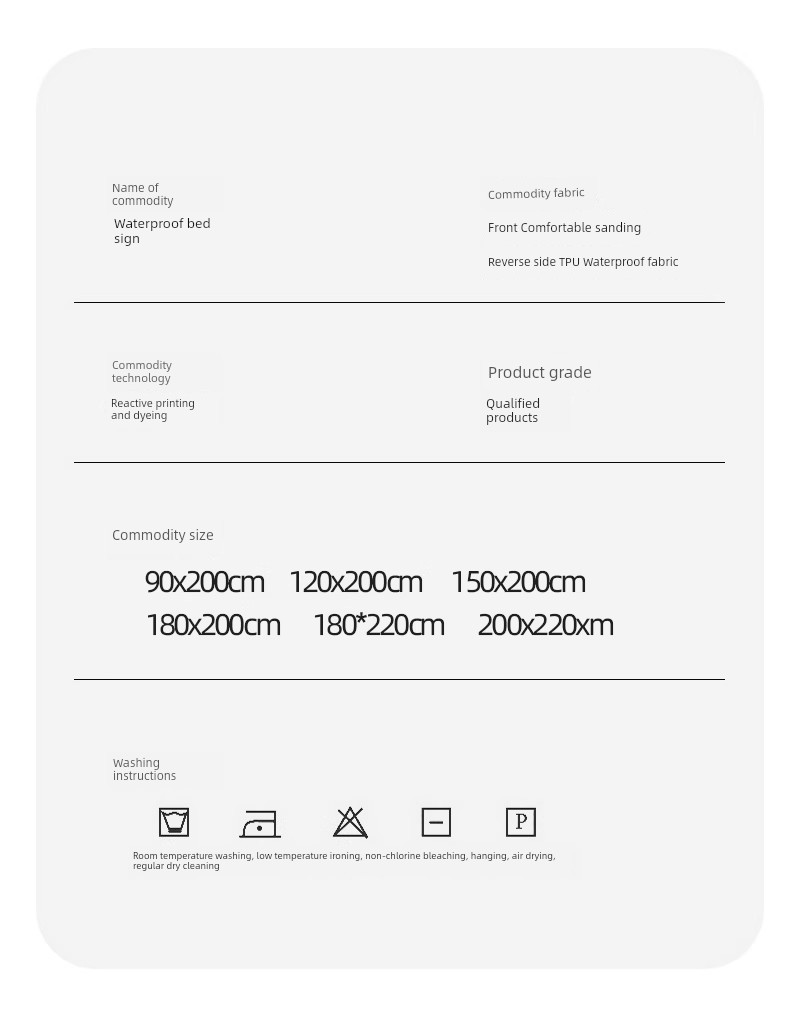 180x220cm防水床笠+枕套一对【建议拍两套方便换洗】