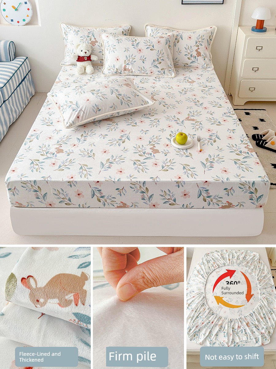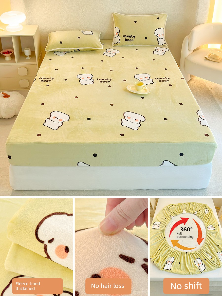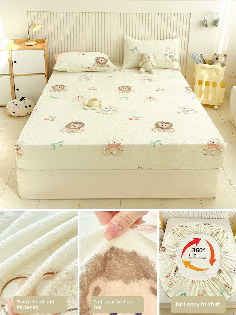 Bedspread Cover Fall and Winter Milk Coral Fleece Winter Fleece-lined 2025 New Arrival Mattress Protective Cover Bedspread Mattress Cover Dirt-Proof Cover