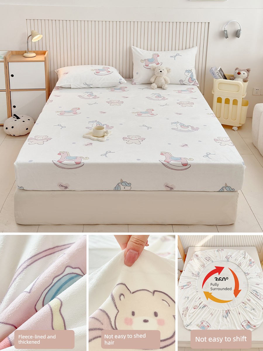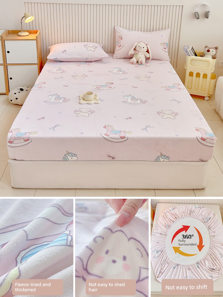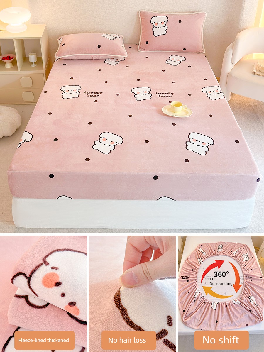 Bedspread Cover Fall and Winter Milk Coral Fleece Winter Fleece-lined 2025 New Arrival Mattress Protective Cover Bedspread Mattress Cover Dirt-Proof Cover