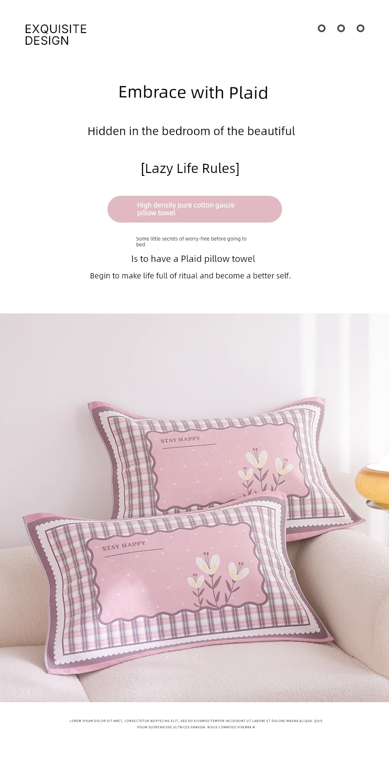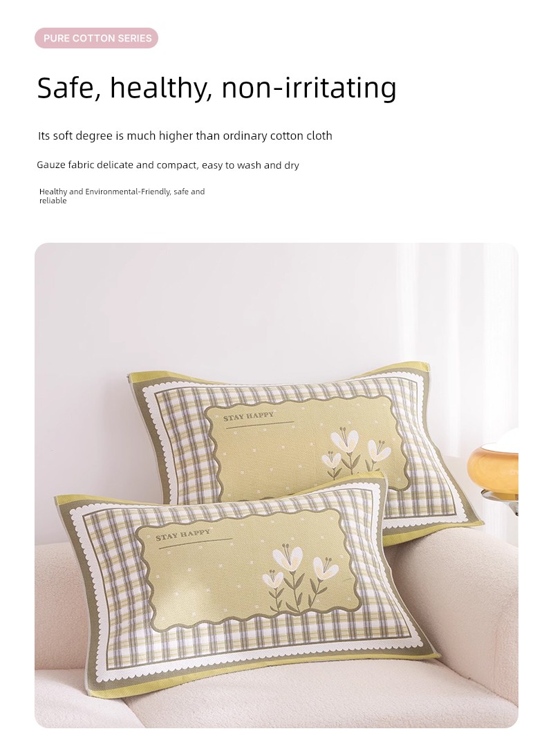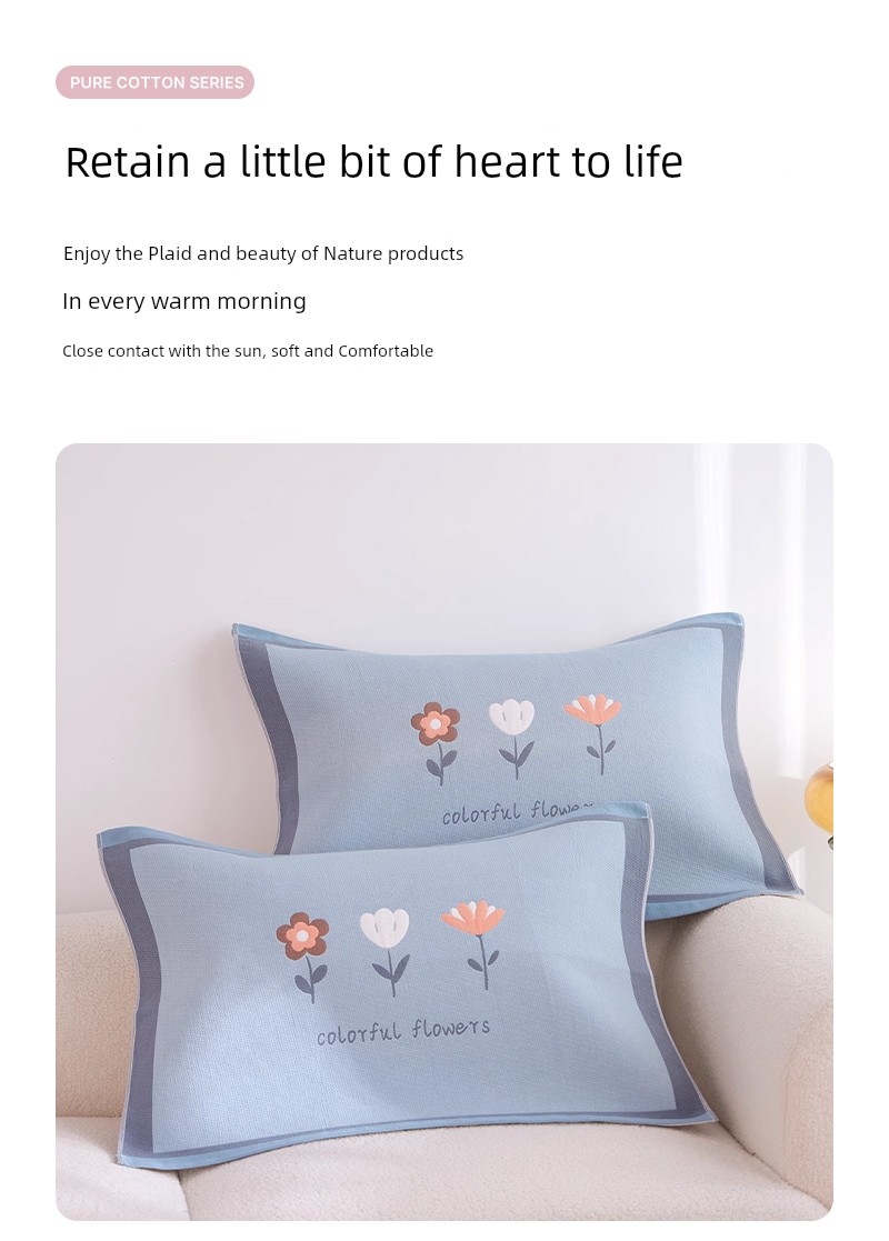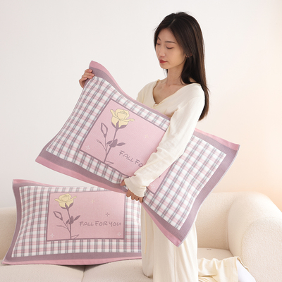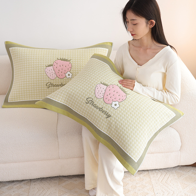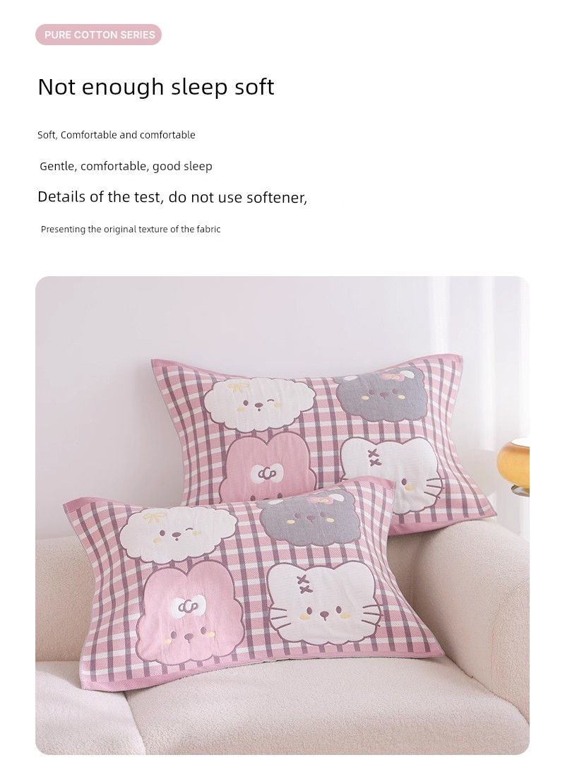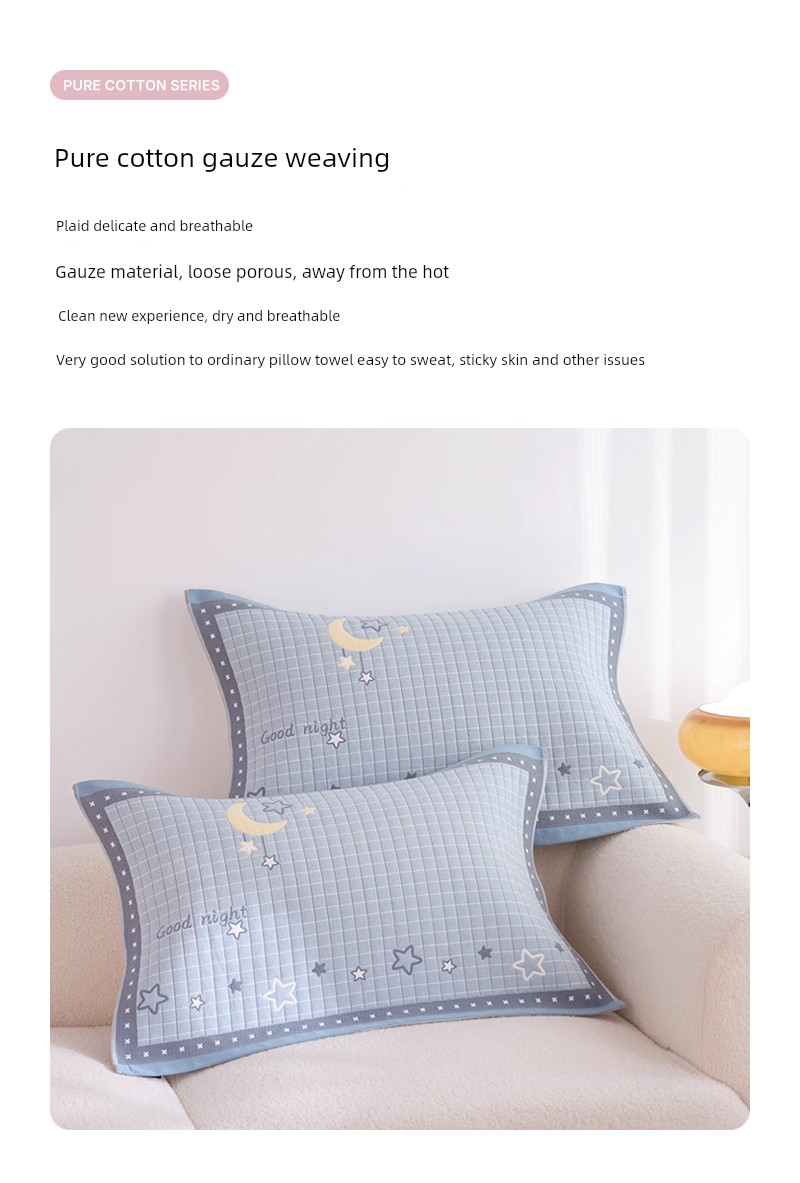 High Density Pure Cotton Gauze Pillow Cover Pair All Year Round Neutral Cartoon Non-Slip Breathable Adult Home Use All-Cotton Pillow Cover Towel