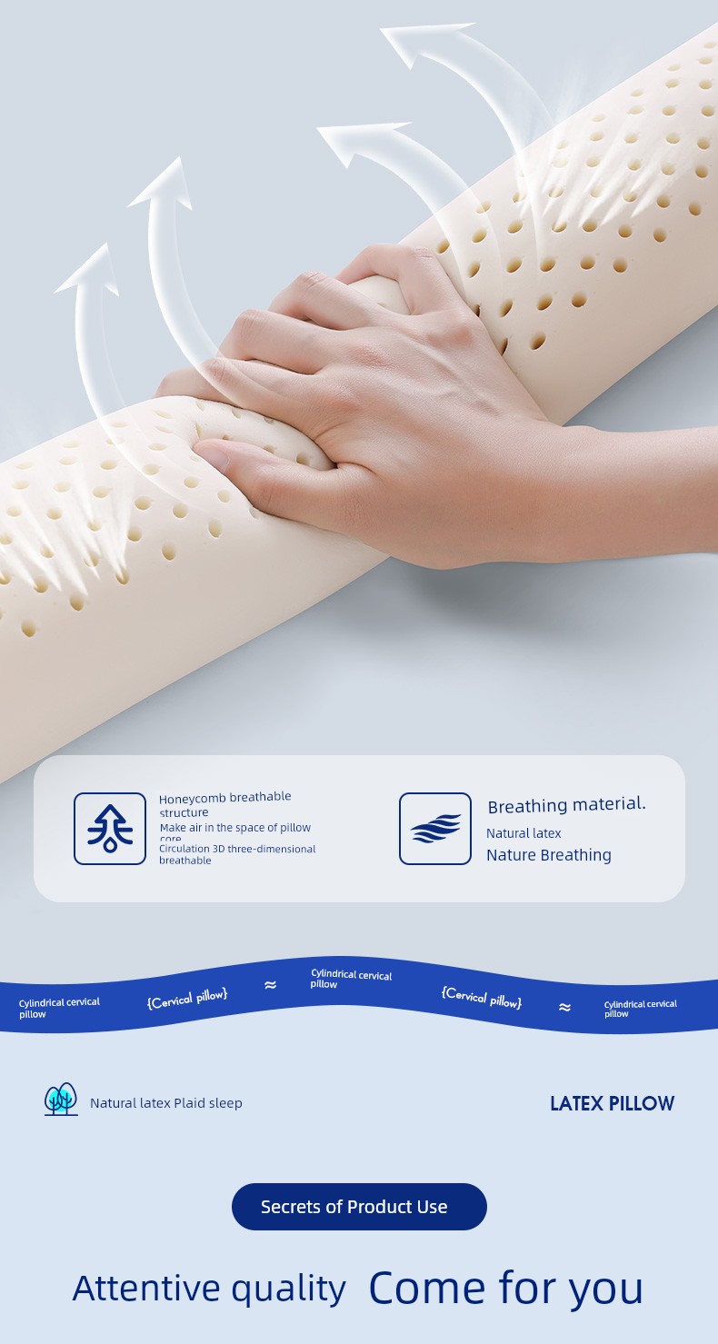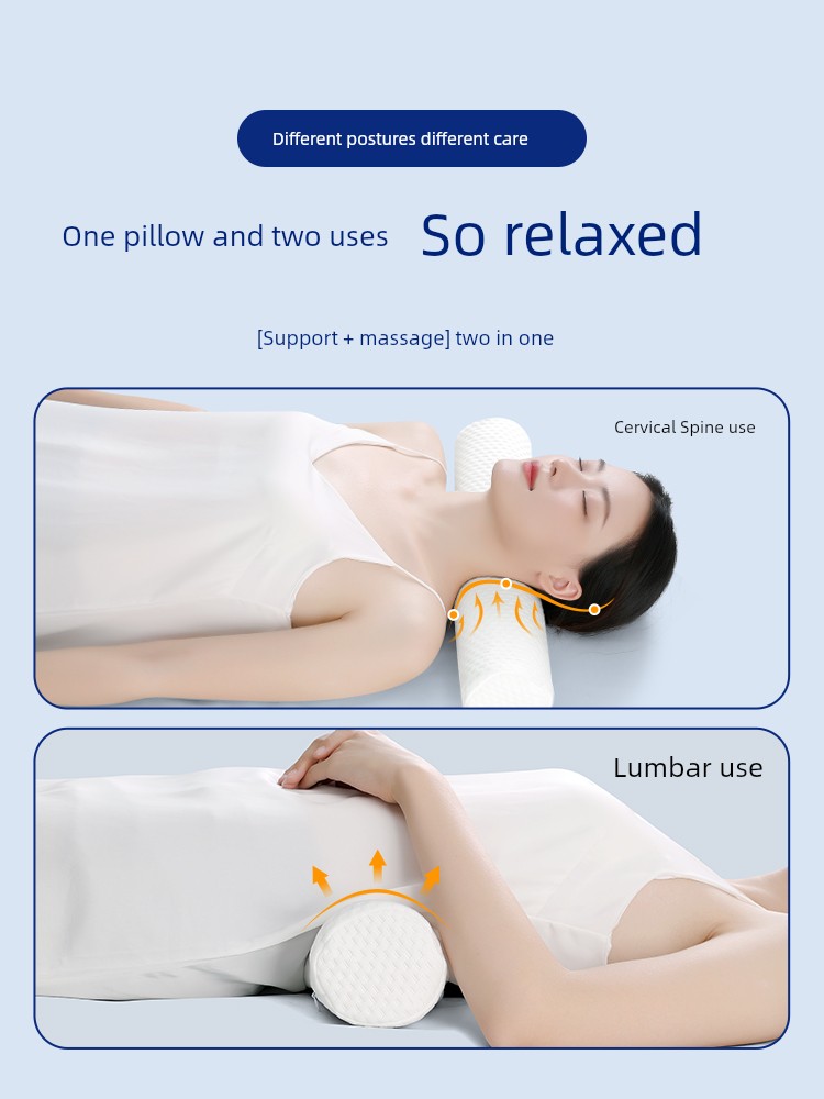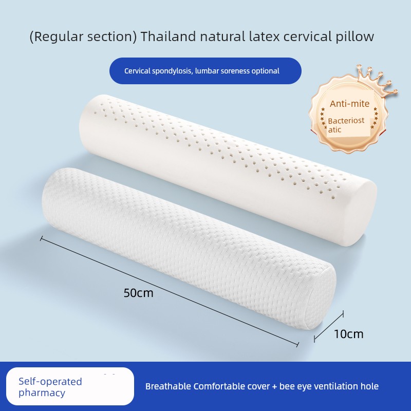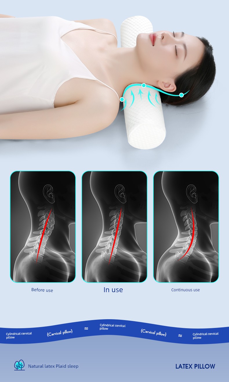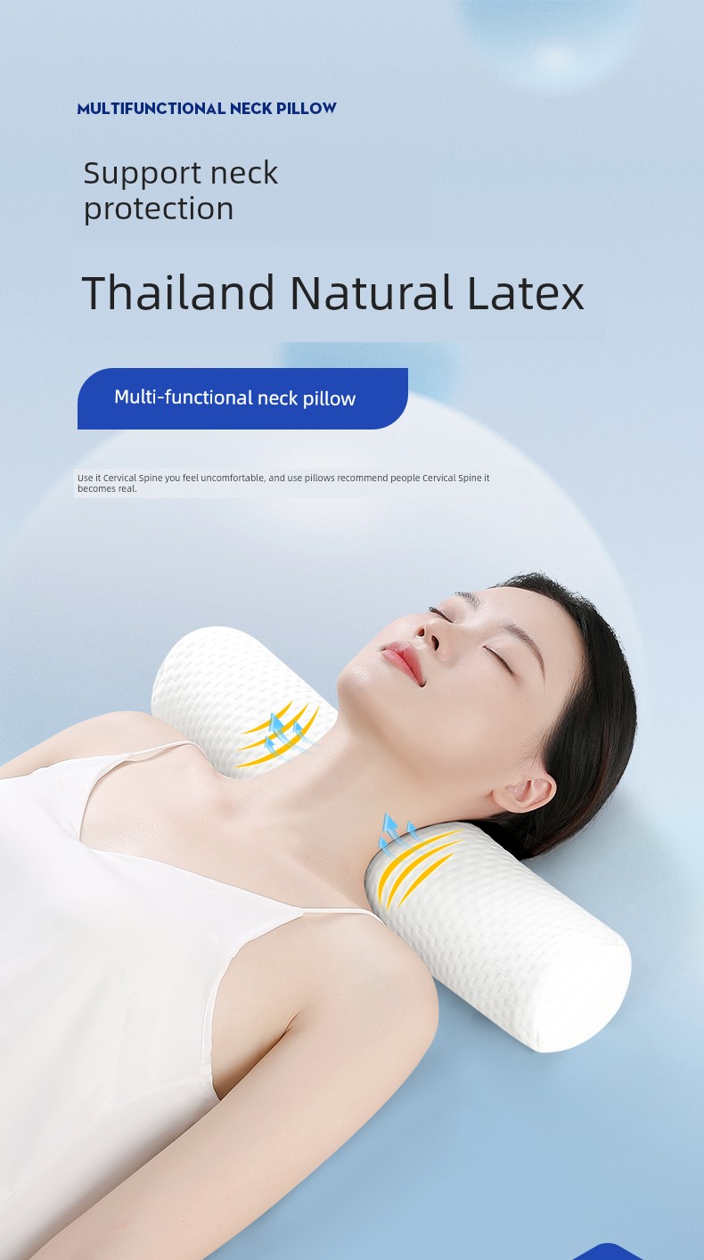 Thailand Latex Cervical Spine Pillow Reverse Bow Straightening Neck Waist Support Improve Sleeping Cylindrical Pillow Student Dormitory Sleep