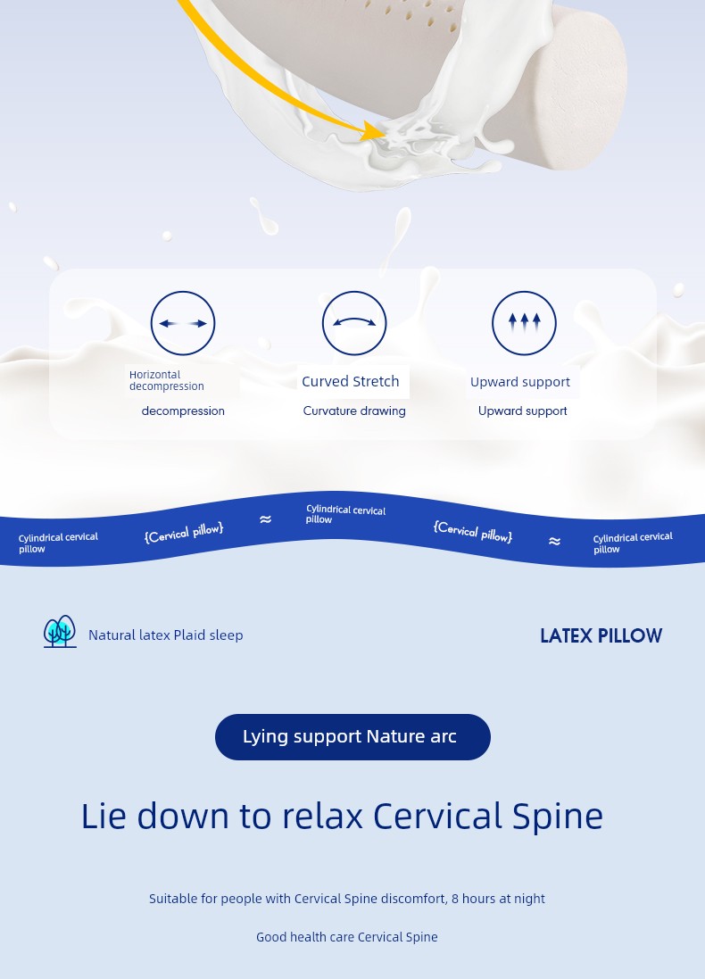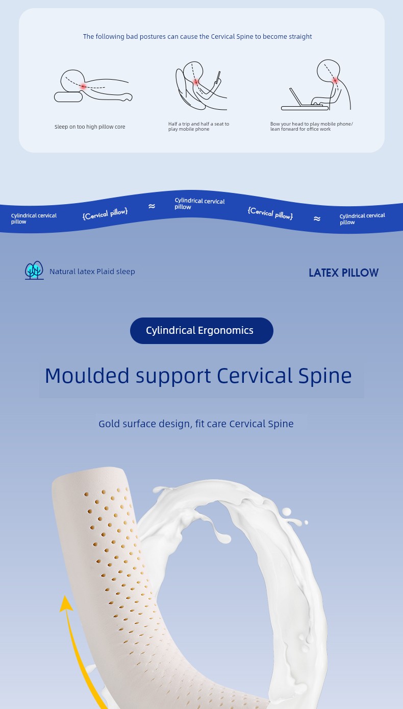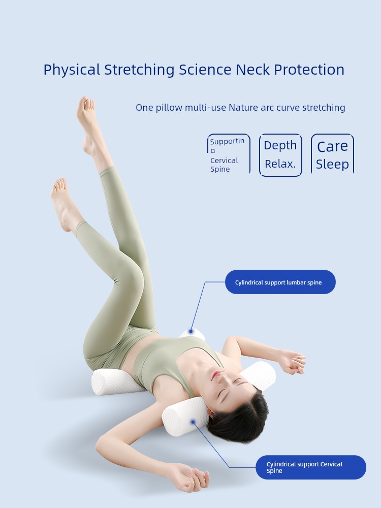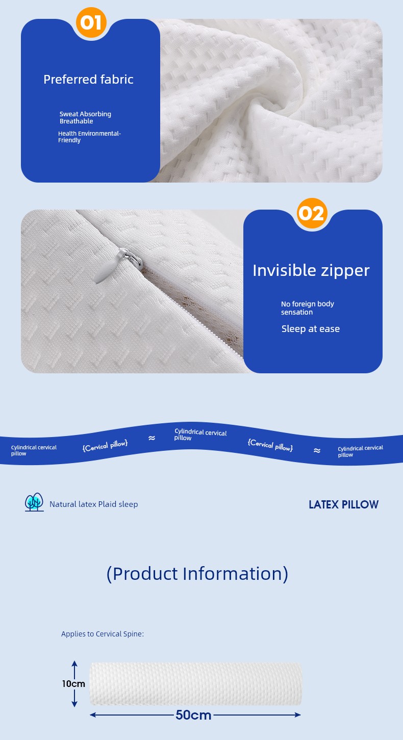 Thailand Latex Cervical Spine Pillow Reverse Bow Straightening Neck Waist Support Improve Sleeping Cylindrical Pillow Student Dormitory Sleep