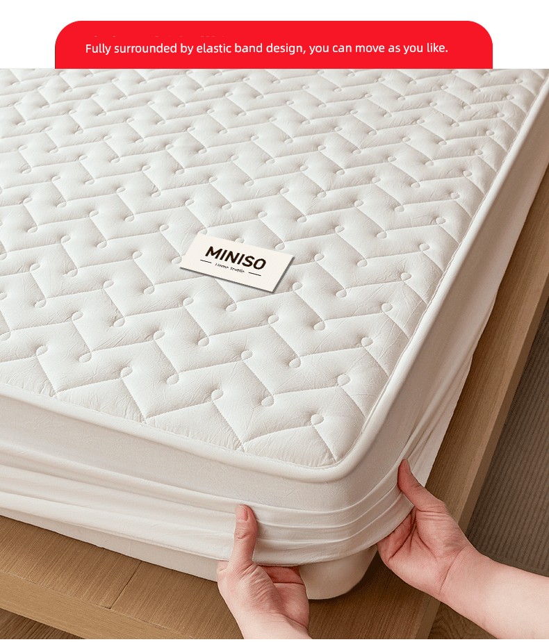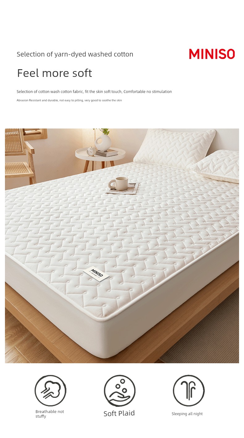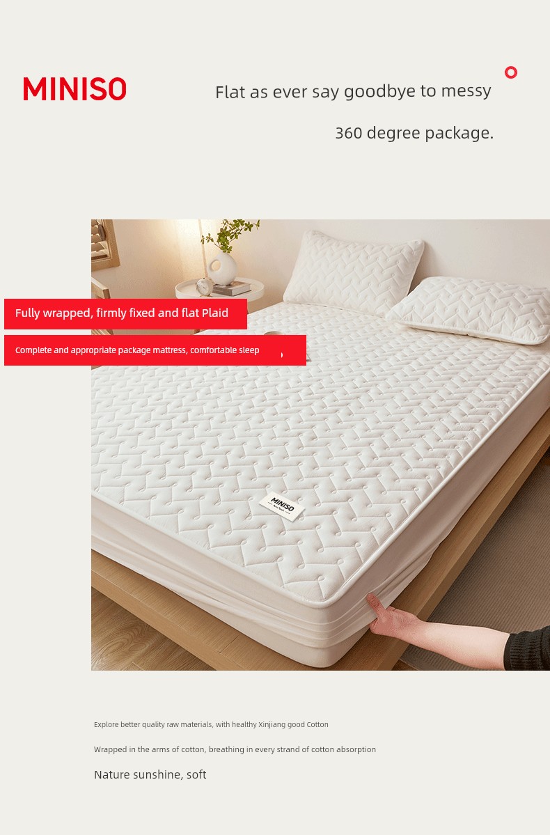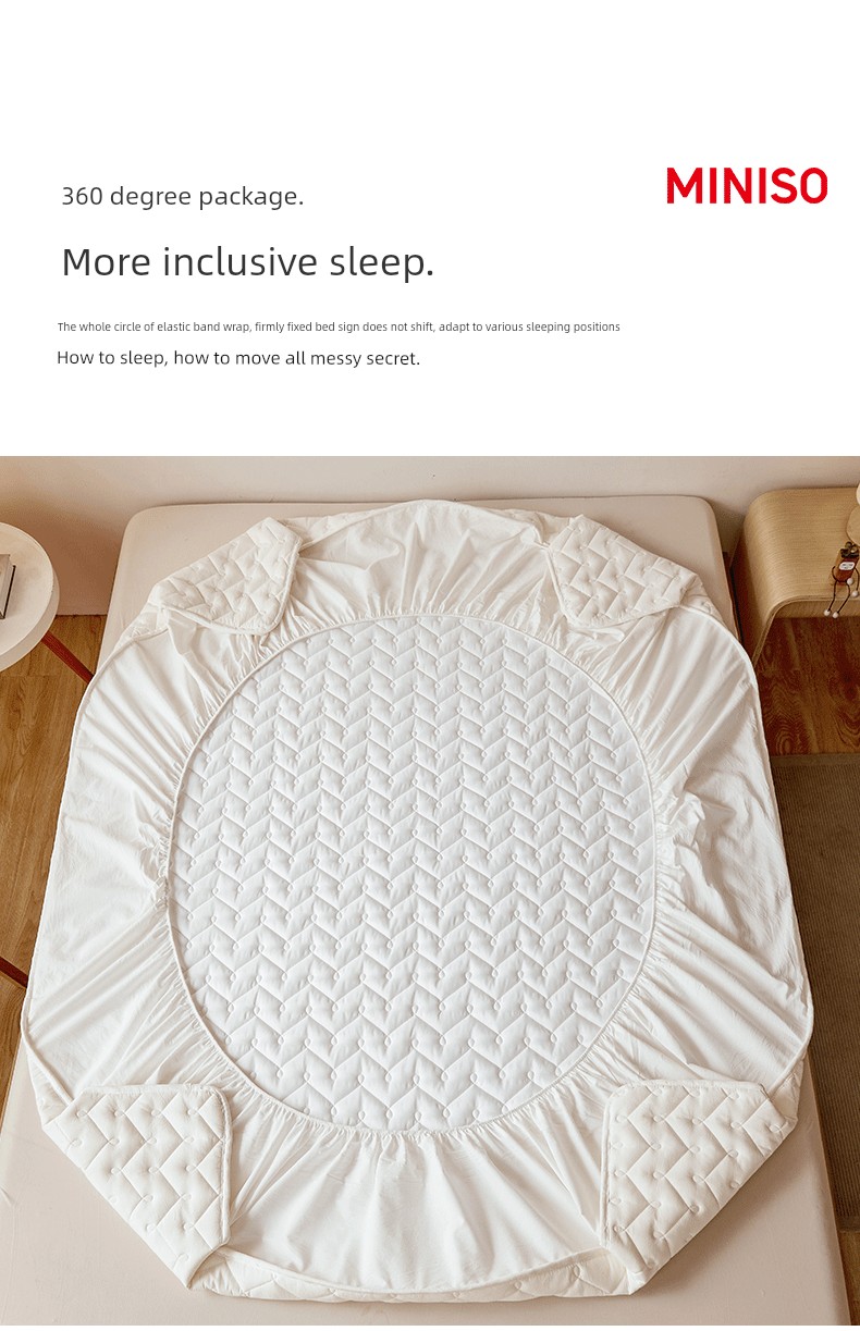 Miniso Pure Cotton Fitted Sheet 100% Cotton Quilted Mattress Protector Sheet Set 2025 New Model for All Seasons 3