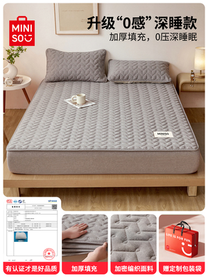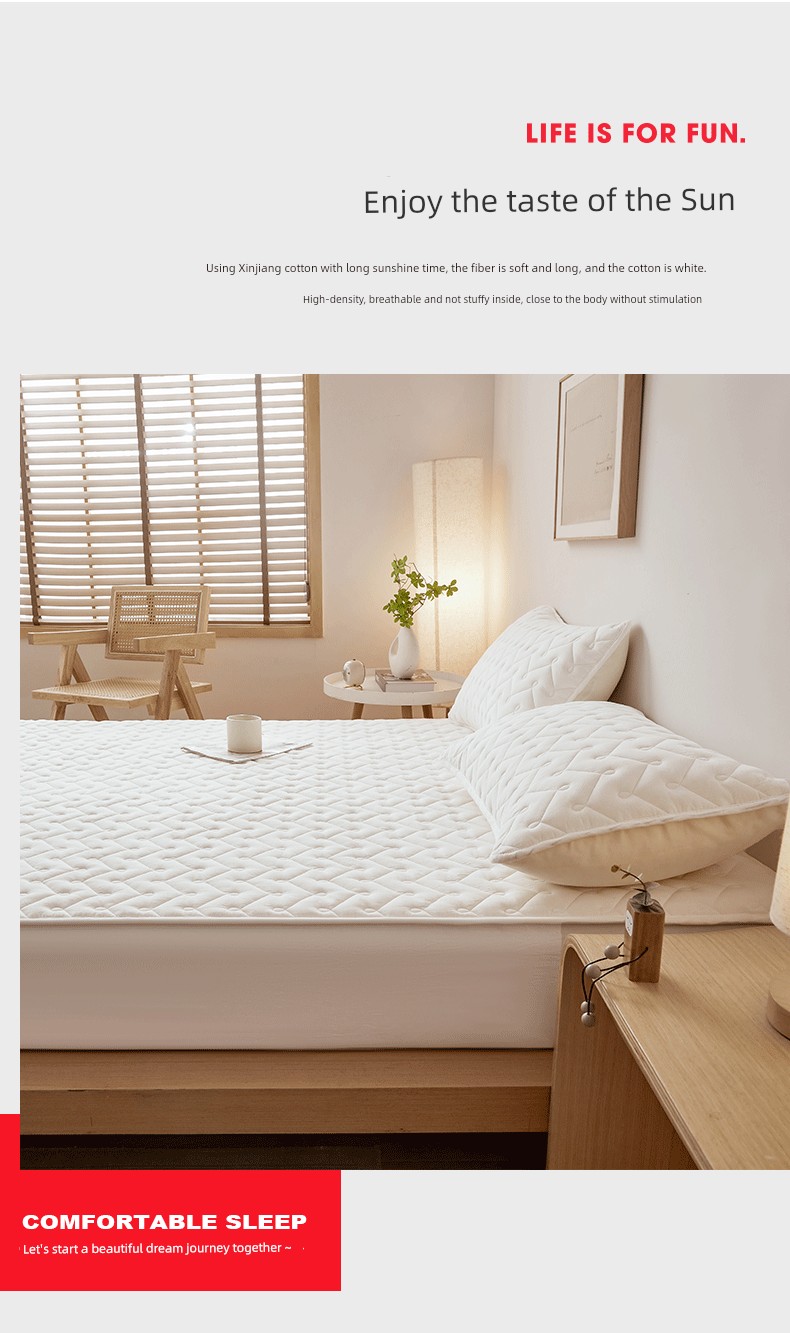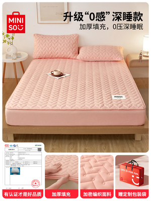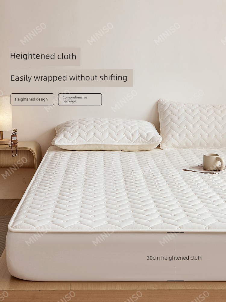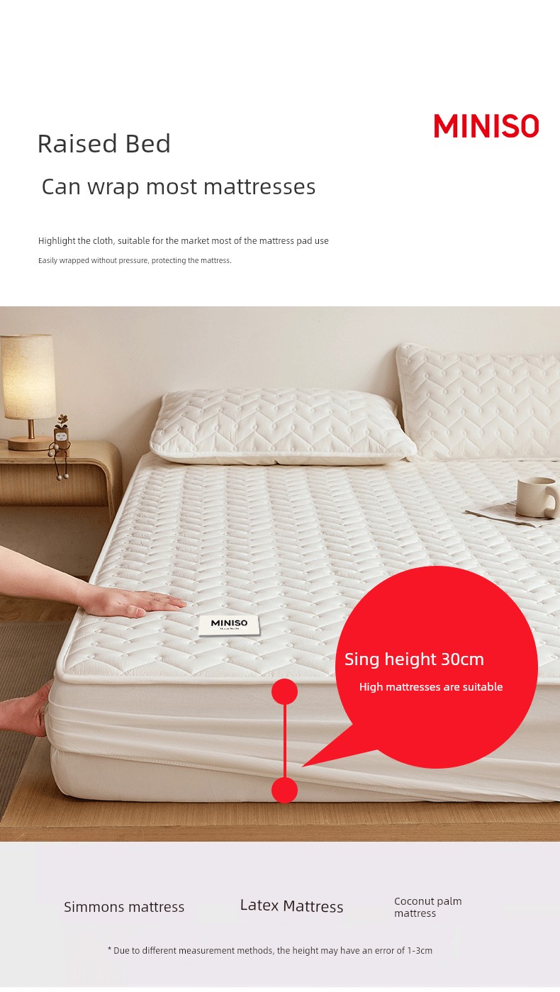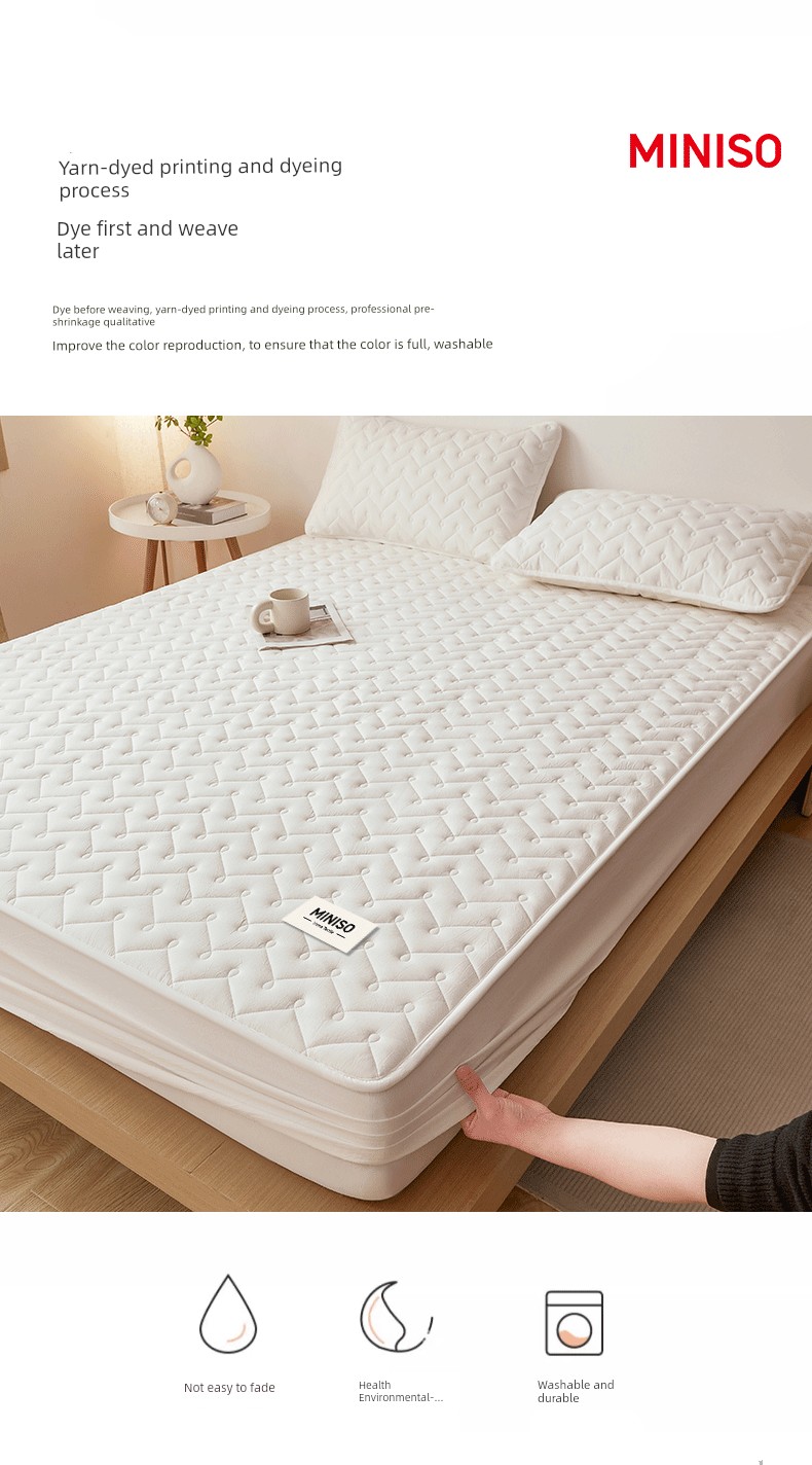 Miniso Pure Cotton Fitted Sheet 100% Cotton Quilted Mattress Protector Sheet Set 2025 New Model for All Seasons 3