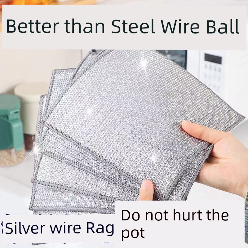 [Upgrade Thickened] Steel Wire Rag Silver Wire Non-Stick Washing Pot Silver Wire Rag Steel Wire Dishcloth Kitchen