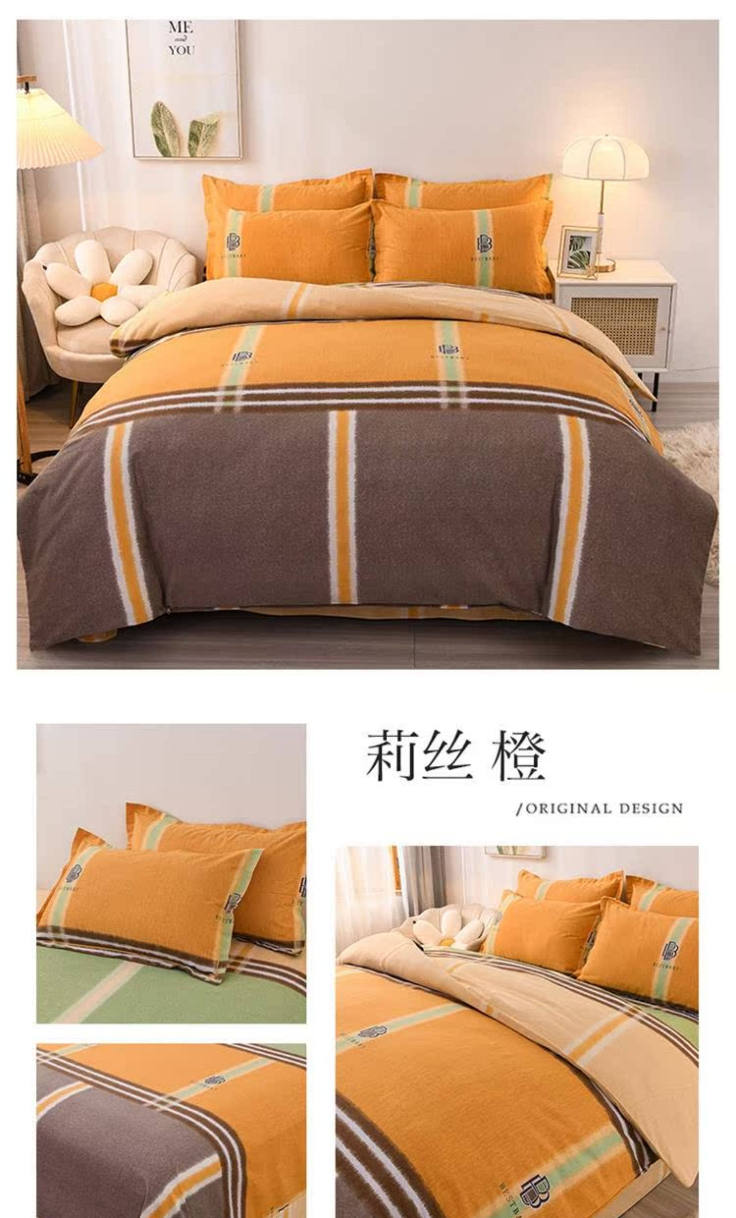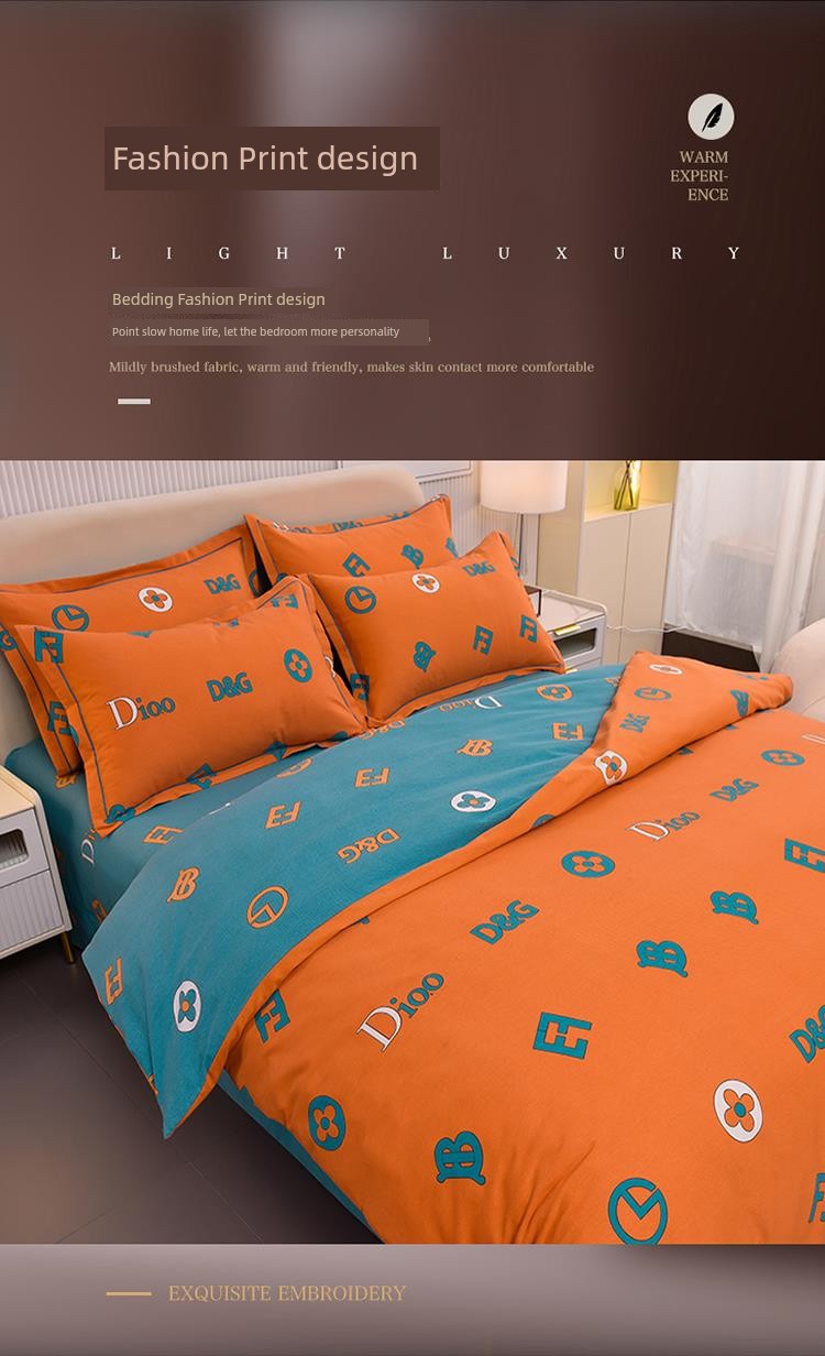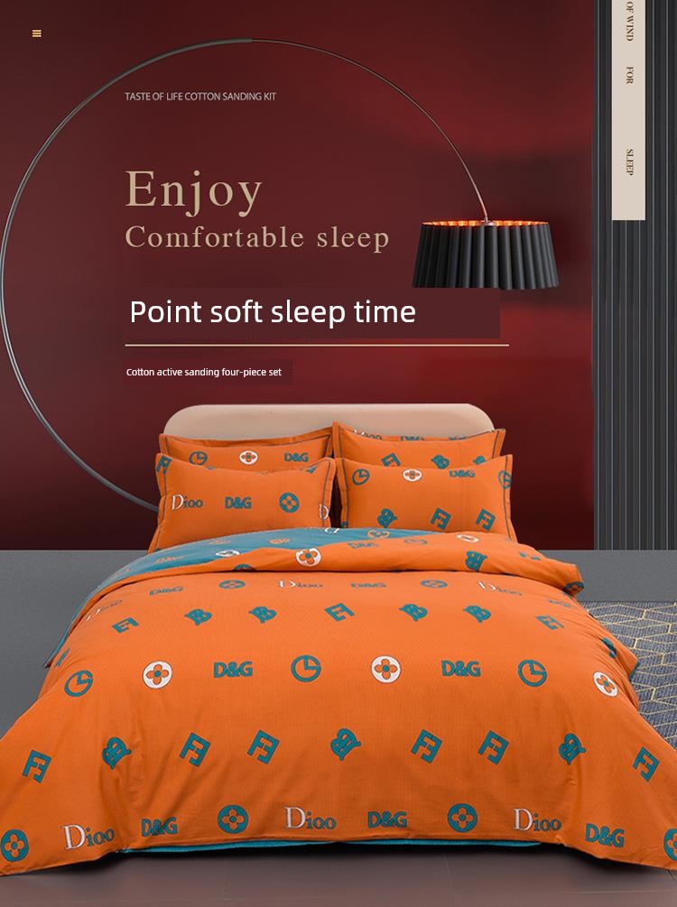 Simple and High-End Thickened Pure Cotton Brushed Four-Piece Cotton 2025 New Arrival Bedding Bed Sheets Quilt Cover Three-Piece Set