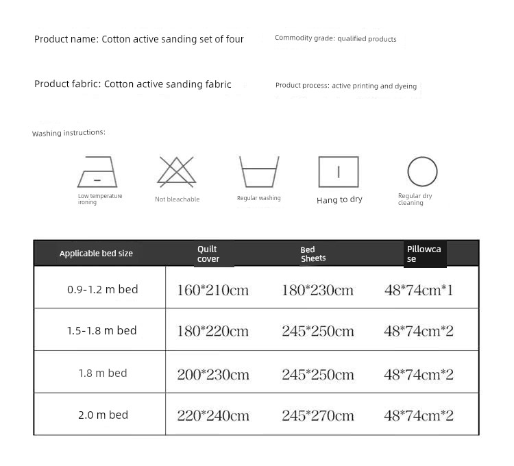 2.0m Bed Four-Piece Set/Suitable for 220X240Cm Quilt Core