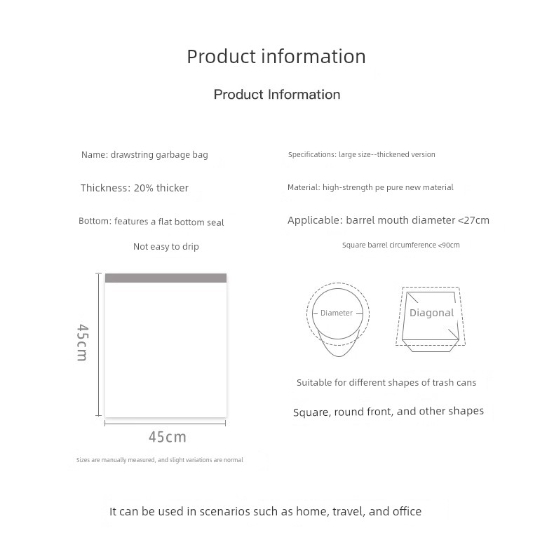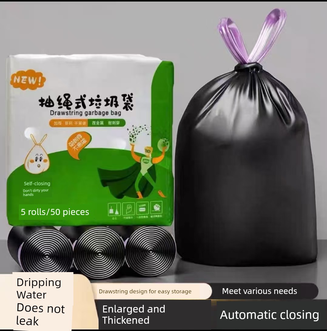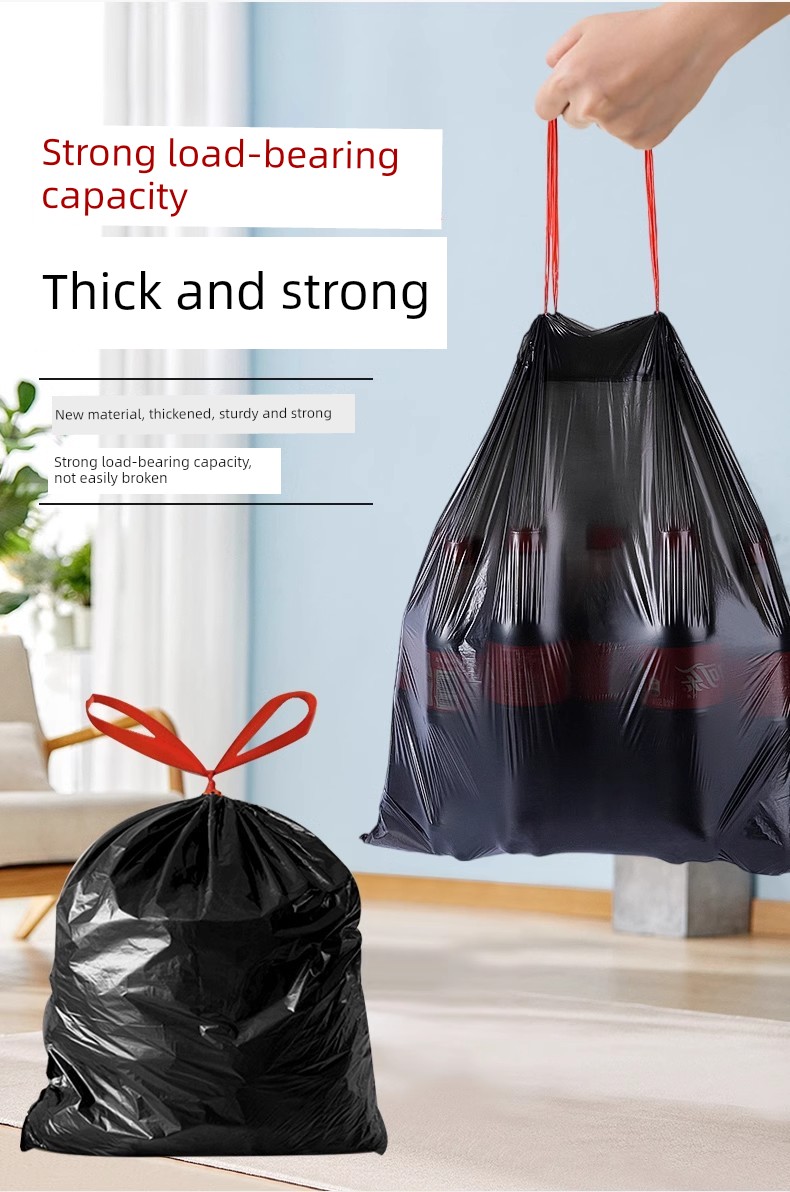 Extra Thick Portable Drawstring Trash Bags for Home Use, Thickened and Economical Wholesale Pack, Large Black Trash Bags for Kitchen