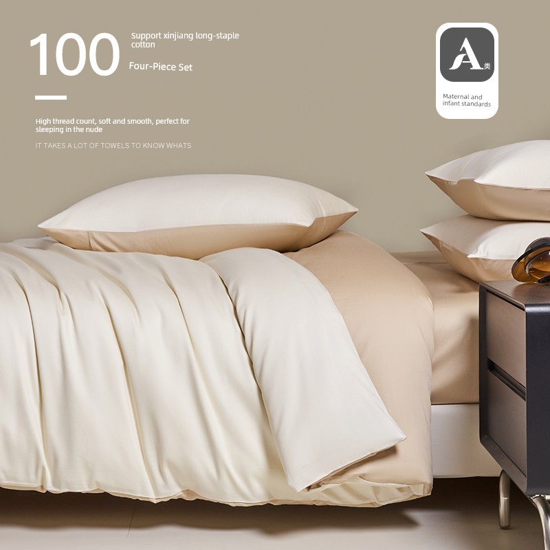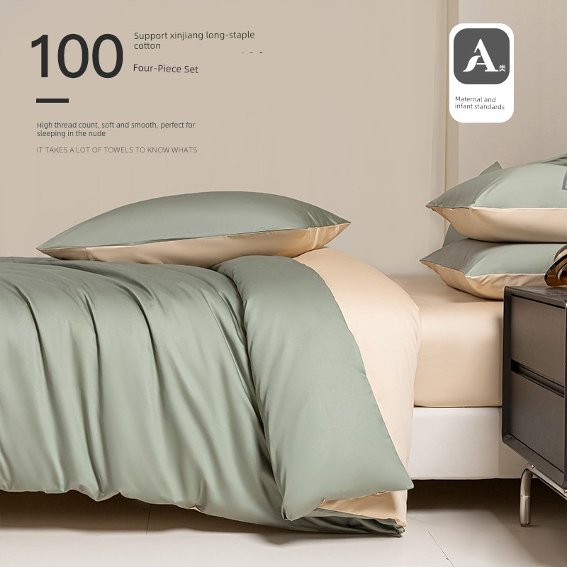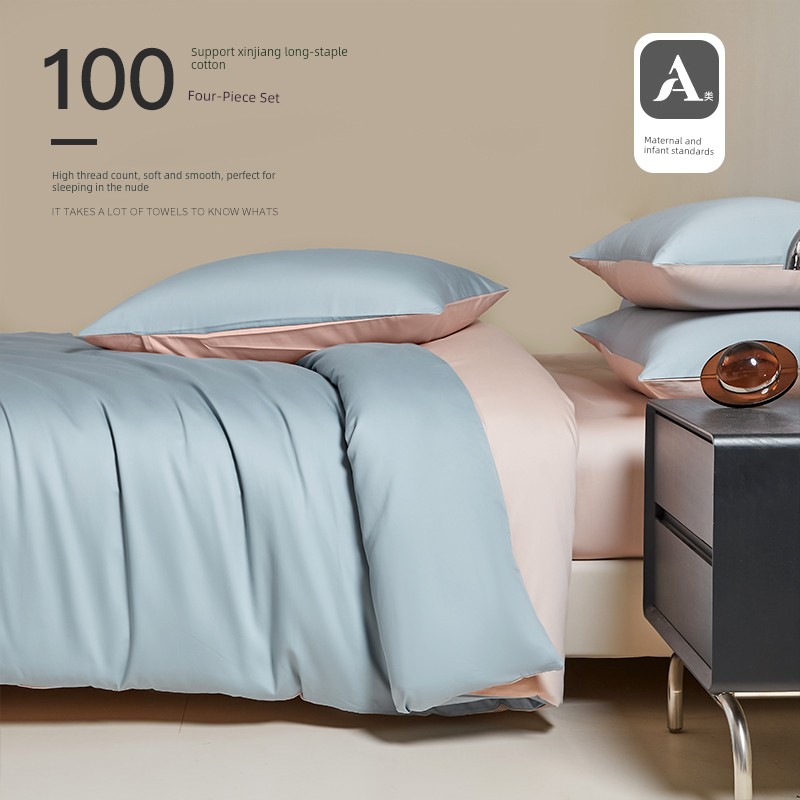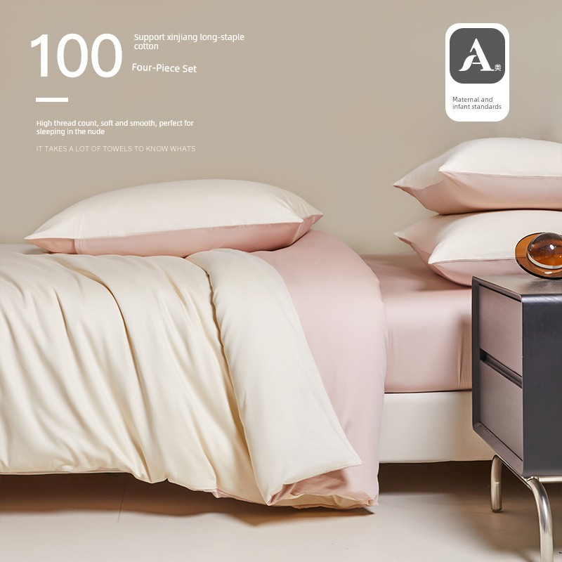 Class a 100-Count Xinjiang Long-Staple Cotton All-Cotton Anti-Mite Four-Piece Set Pure Cotton Bed Sheet Fitted Sheet Duvet Cover Bedding Set Three
