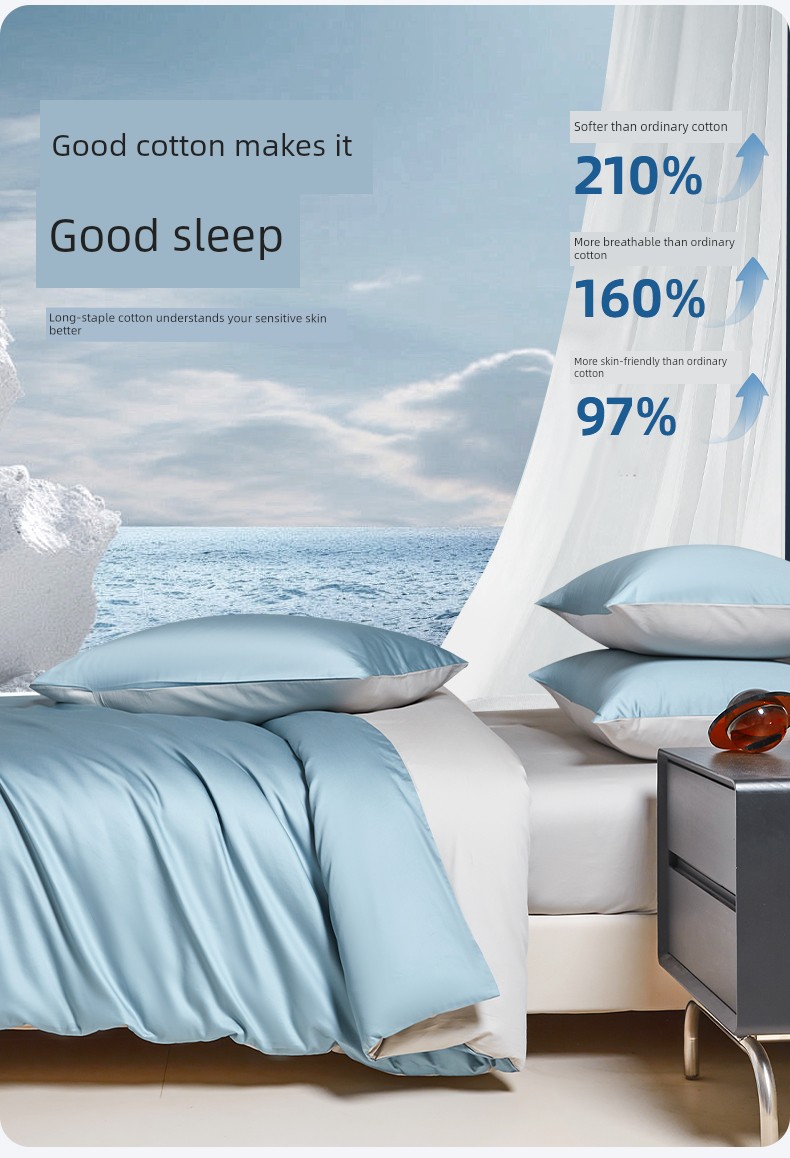 Four Seasons Satin: Sky Blue + Milkshake White [Category a Maternal and Infant Grade❤【2025 New Arrival】Premium Xinjiang Long-Staple Cotton