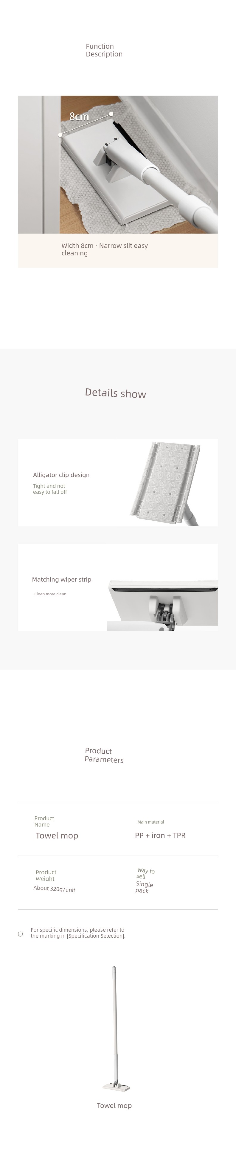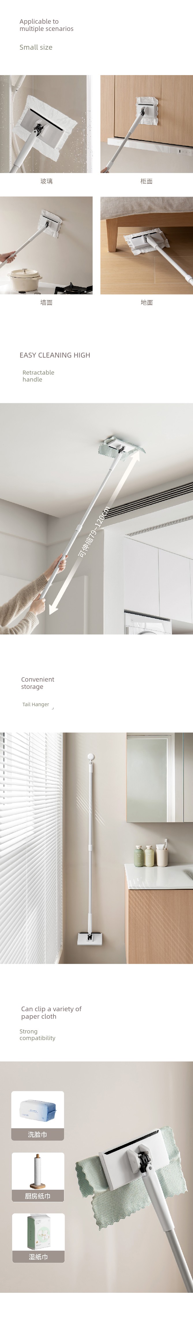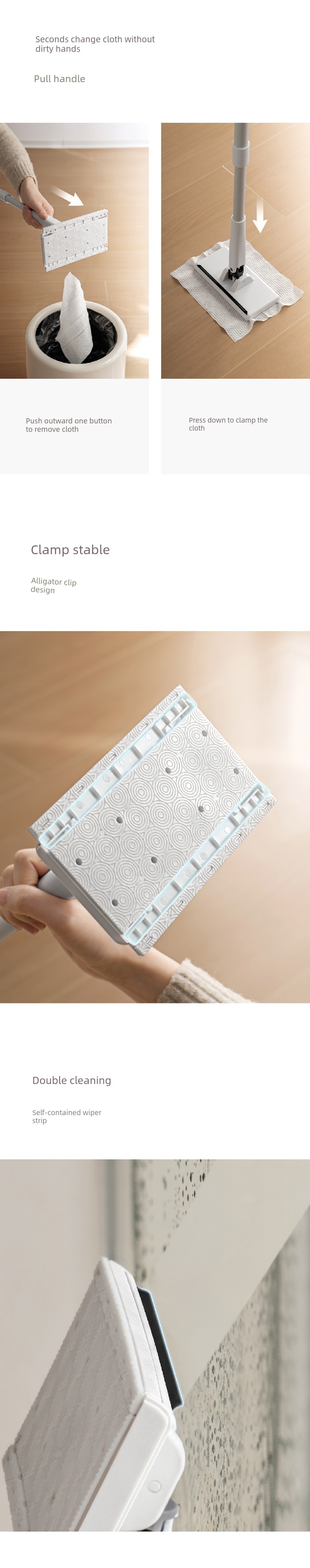 Wiper Broom + Face Towel Mop + Mop Clip
