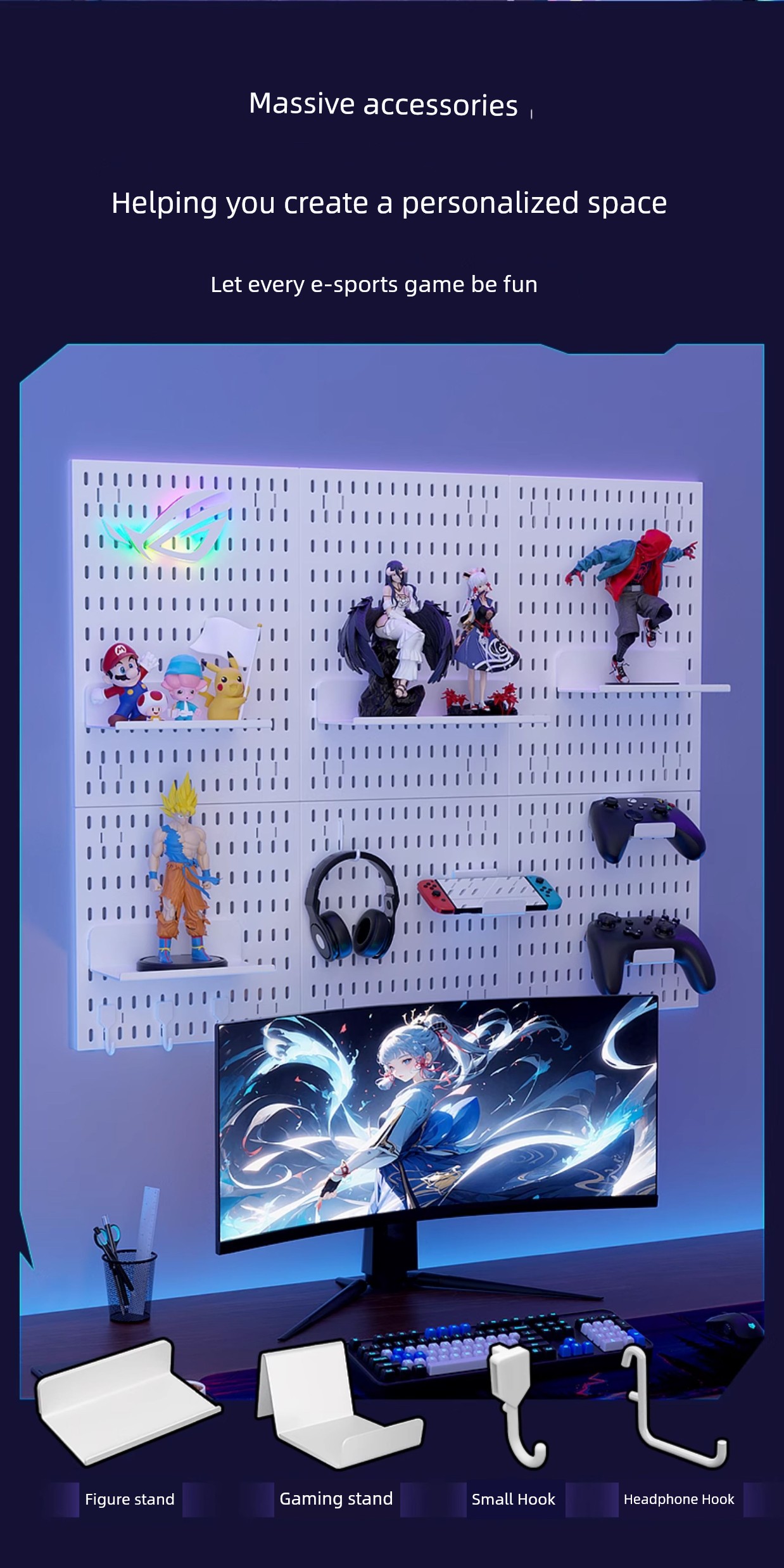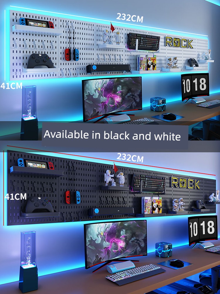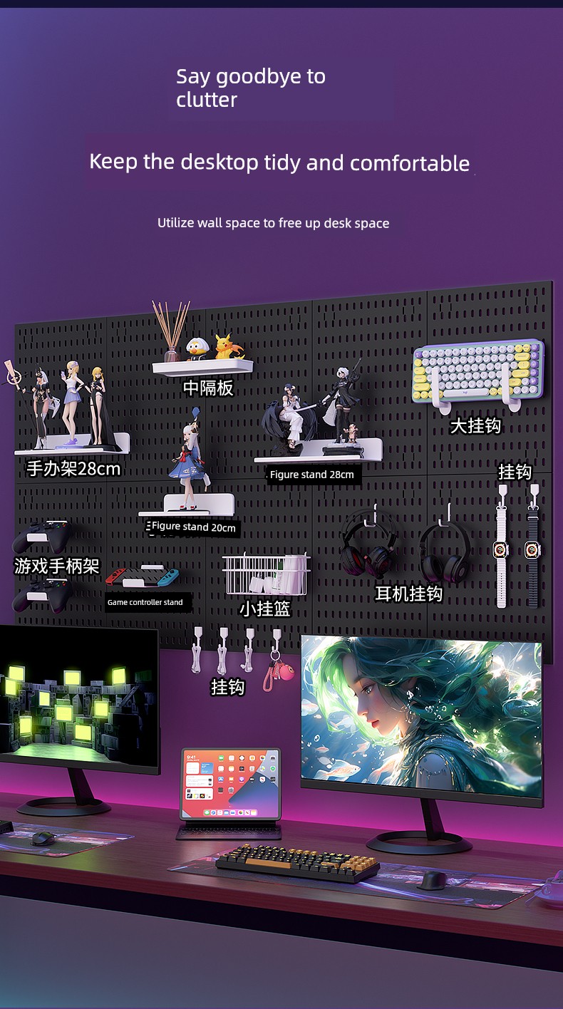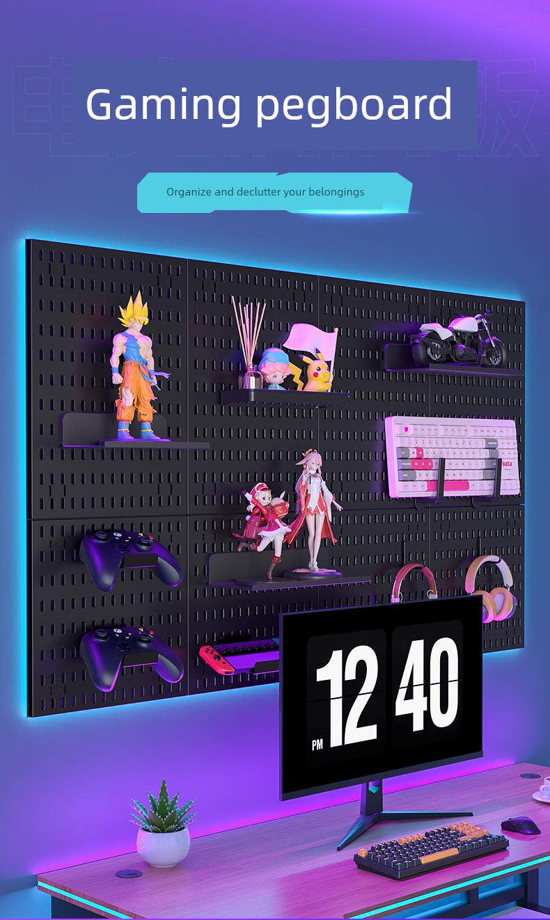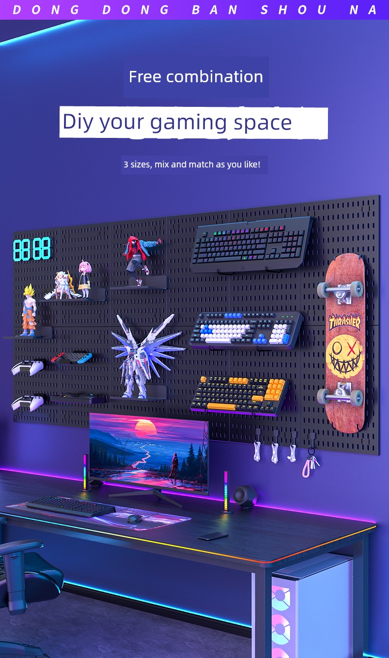 Gaming Room Pegboard Black Wall-Mounted Handle and Headphone Stand Keyboard Display Rack Wall Decoration Storage Shelf