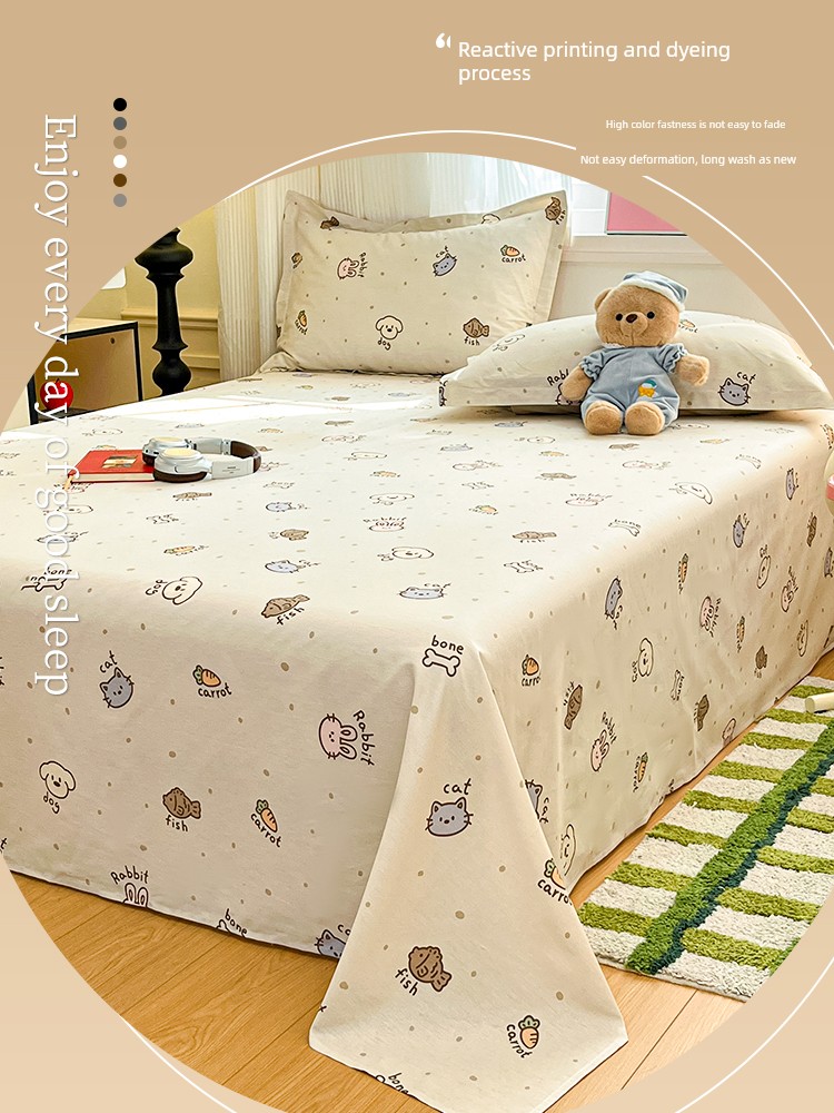 Thickened Children's Pure Cotton Bed Sheet, Single Piece, 100% Cotton Sheet, 1.5m Student Dormitory Single Bed, Individual, 2025 New Model