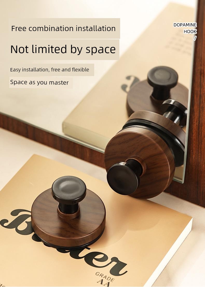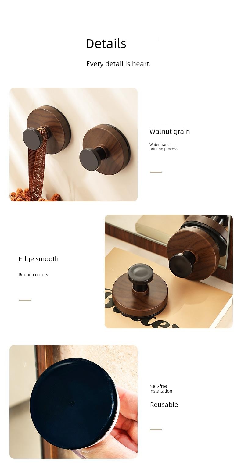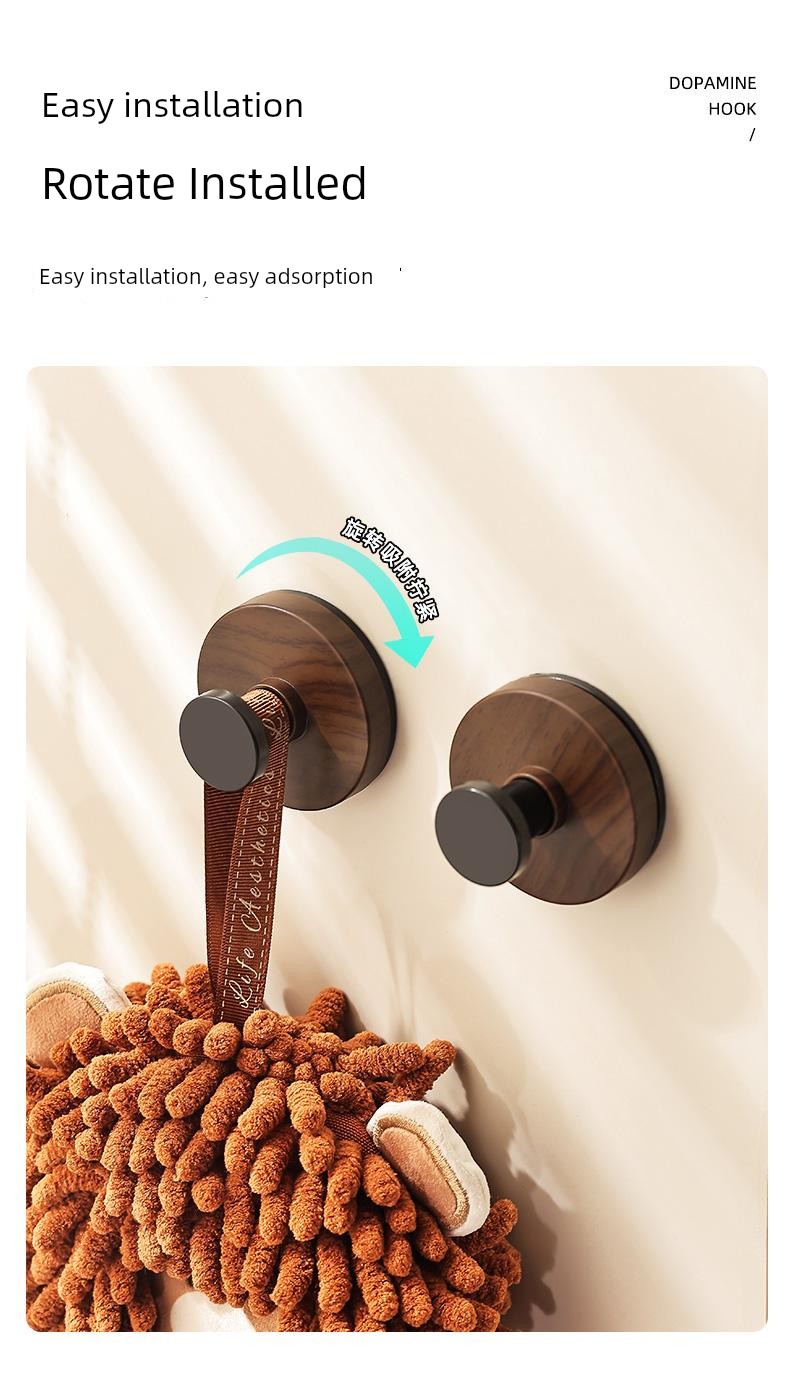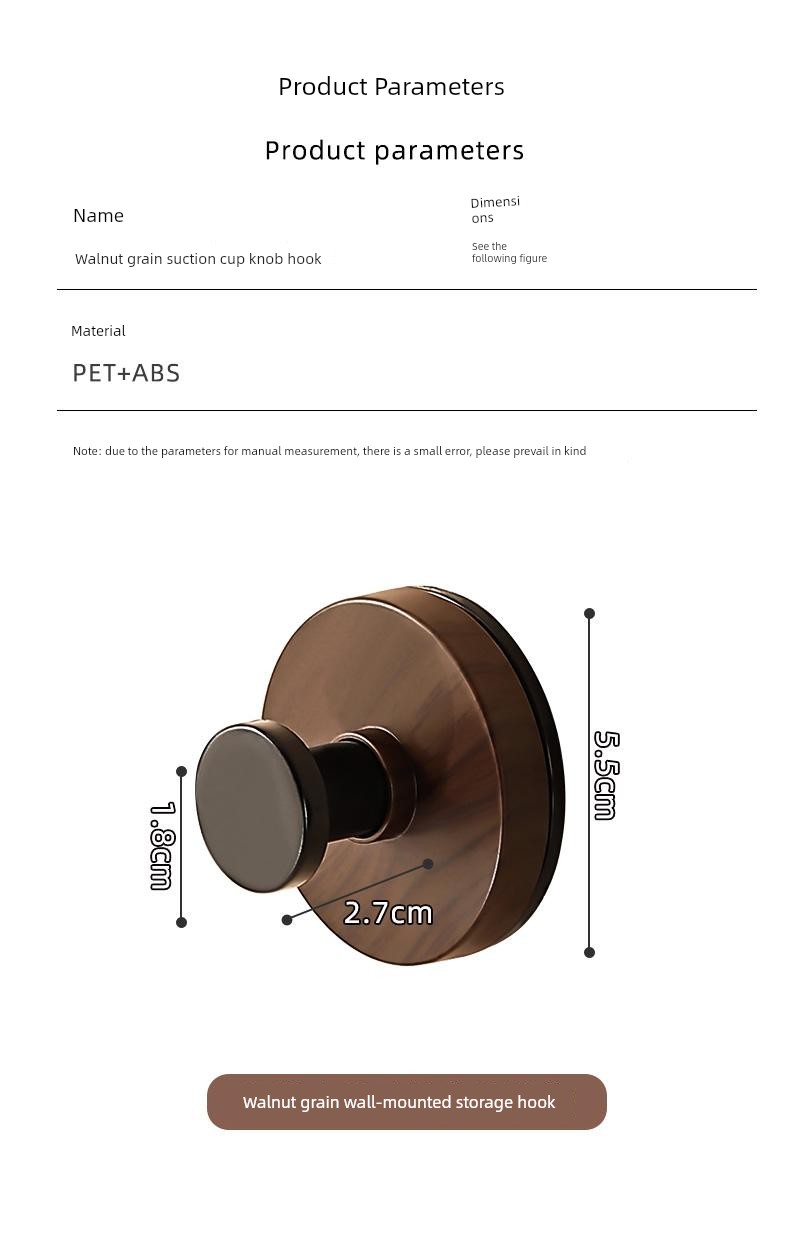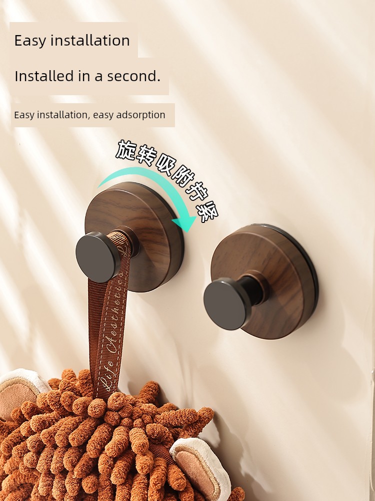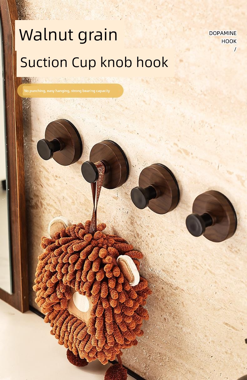 The Pattern of Walnut Suction Cup Knob Hook behind the Door Bathroom Kitchen Wall-Mounted Shelves Punch-Free Clothes Hanger Hanger